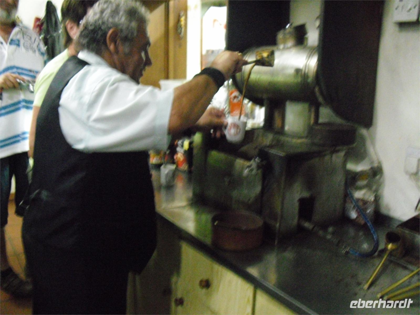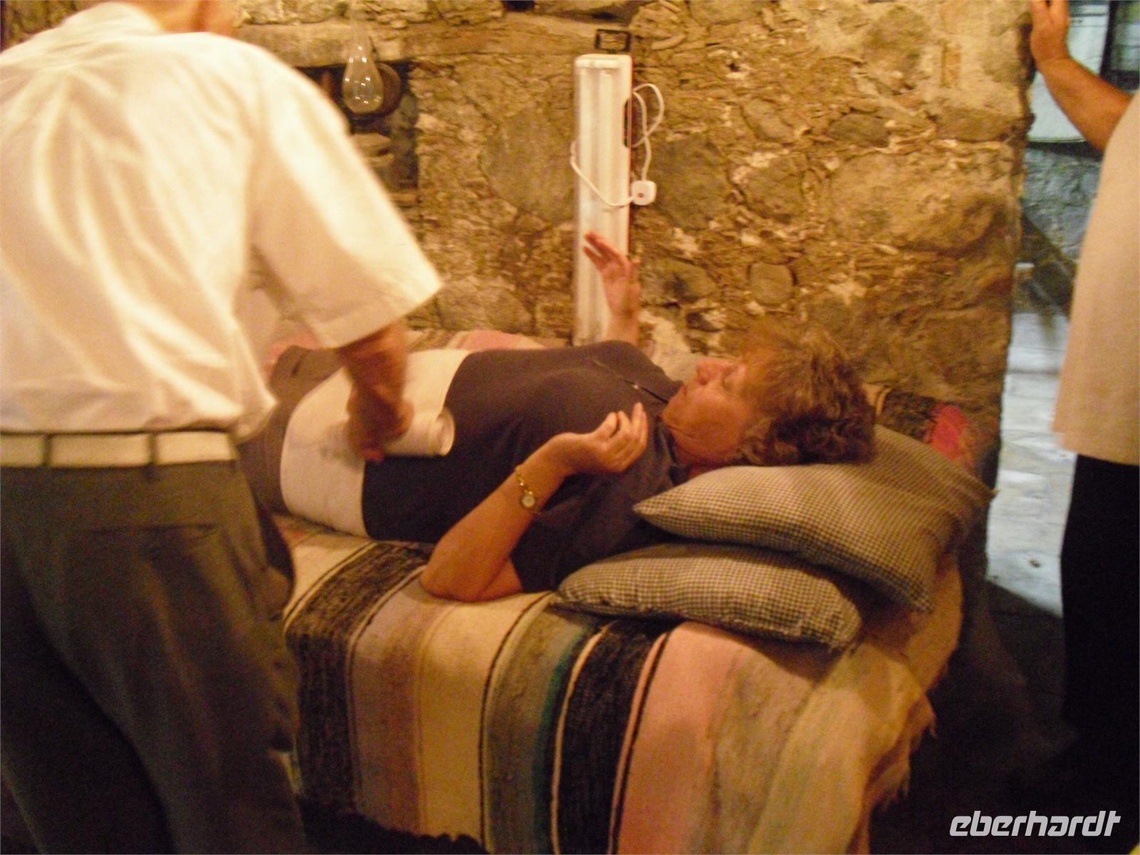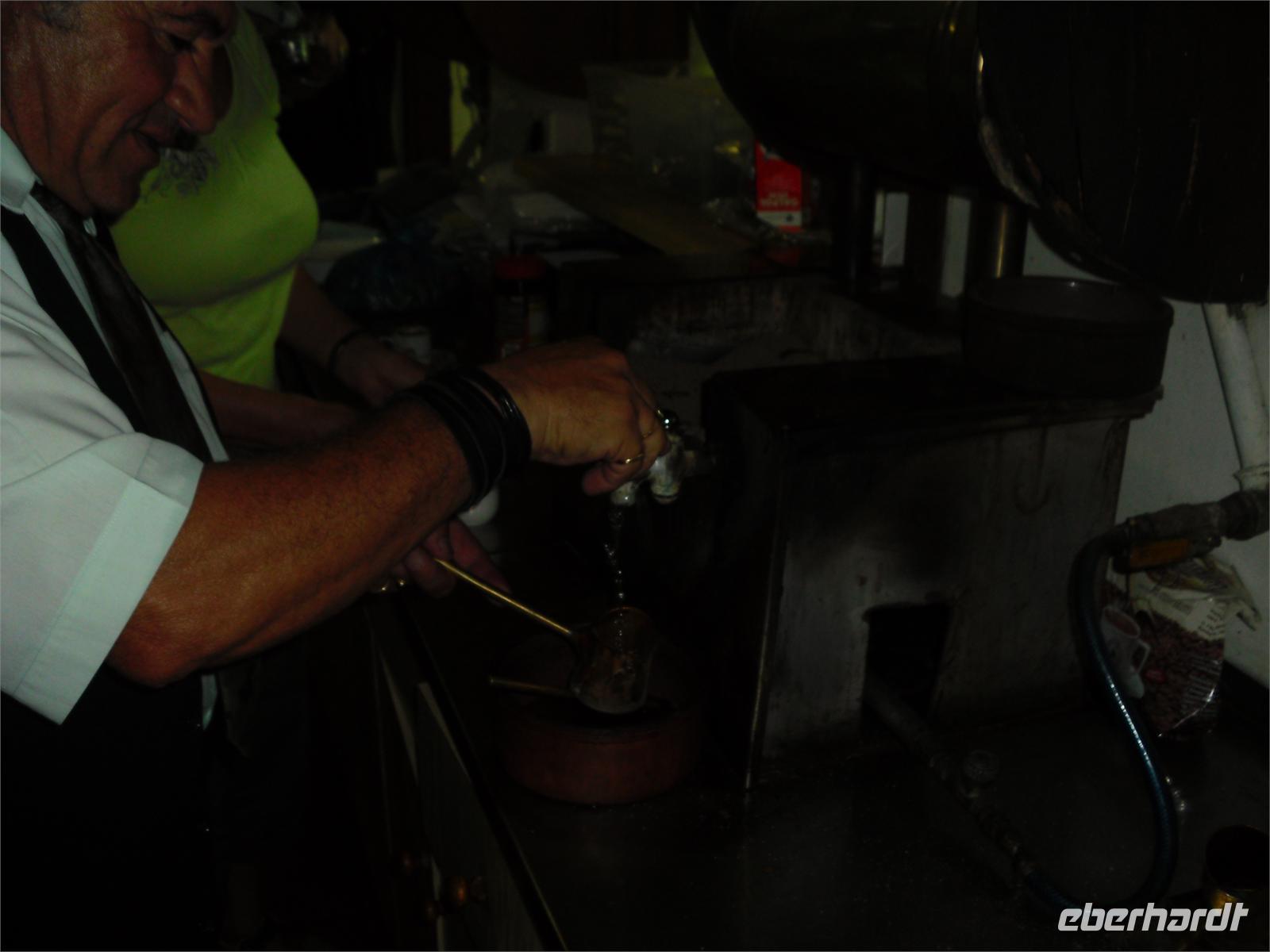 Den heutigen Tag konnte jeder Gast bis nachmittags individuell gestalten. Einige von uns gingen wandern und andere genossen die idyllische Ruhe am Pool. Gegen 16Uhr trafen wir uns alle wieder und Antonis zeigte uns Agros bei einem Spaziergang. Als erstes ging es zu Niki, sie stellt Marmelade und kandierte Früchte her. Antonis ließ jeden von allem kosten und wieder einmal wurde uns bewusst wie viele Menschen Antonis auf der Insel doch kennt. J Im Anschluss lernten wir die einzige Rosenmanufaktur auf der Insel kennen. Hier konnten wir sehen, wie aus gepflückten Rosenblättern Rosenwasser, -likör, -cremé oder ähnliches hergestellt wird. Jeder kaufte noch ein wenig für zu Hause ein bevor wir weitergingen. Unsere letzte Station war die Dorffleischerei. Alle Stationen waren natürlich mit einer Verkostung verbunden. Im Anschluss liefen wir in eine schöne gemütliche Taverne. Bei einem typischen Meze-Essen und lokalem Wein ließen wir es uns gut gehen. Da sich meine Gäste schon Gedanken machten wie Sie nach diesem leckeren Essen wieder hinauf zum Hotel laufen, verriet Ihnen Antonis, dass uns der Oldtimer Bedford-Bus abholte. Der Kellner prostete uns immer wieder zu und zeigte uns zum Abschluss noch wie er einen Mocca zubereitet. Es war sehr schöner Abend mit viel Spaß.