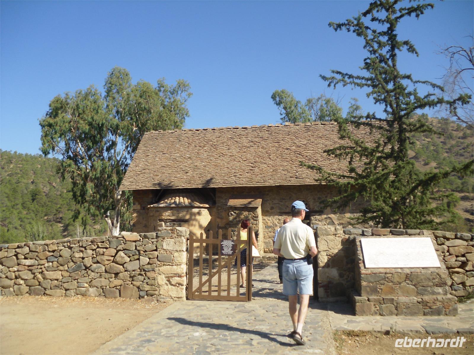 Hier besuchten wir die beeindruckenden Scheunendachkirchen. Diese Kirchen waren für uns etwas ganz besonderes, denn von außen wirken sie sehr unscheinbar. Doch von innen strahlen sie mit ihren faszinierenden Fresken hervor, welche sehr gut erhalten und teilweise bis zu 900 Jahre alt sind. Unser Reiseleiter Antonis erzählte uns nicht nur die Geschichte von Jesus Christus, sondern gab uns für die Zukunft noch Hinweise wie wir ab sofort das 12. vom dem 15.Jahrhundert unterscheiden konnten. Nach diesen Impressionen ging es weiter nach Kakopetria. Die Häuser stammen teilweise aus dem 19. Jahrhundert und stehen heute unter Denkmalschutz. Das Dorf lernten wir bei einem Spaziergang kennen und kehrten in eine kleine Taverne ein. Von hier aus konnten wir das typisch zypriotische Leben im Gebirge beobachten. An fast jedem Haus sahen wir die zypriotischen Frauen ihre eigene Marmelade und Kekse verkaufen.