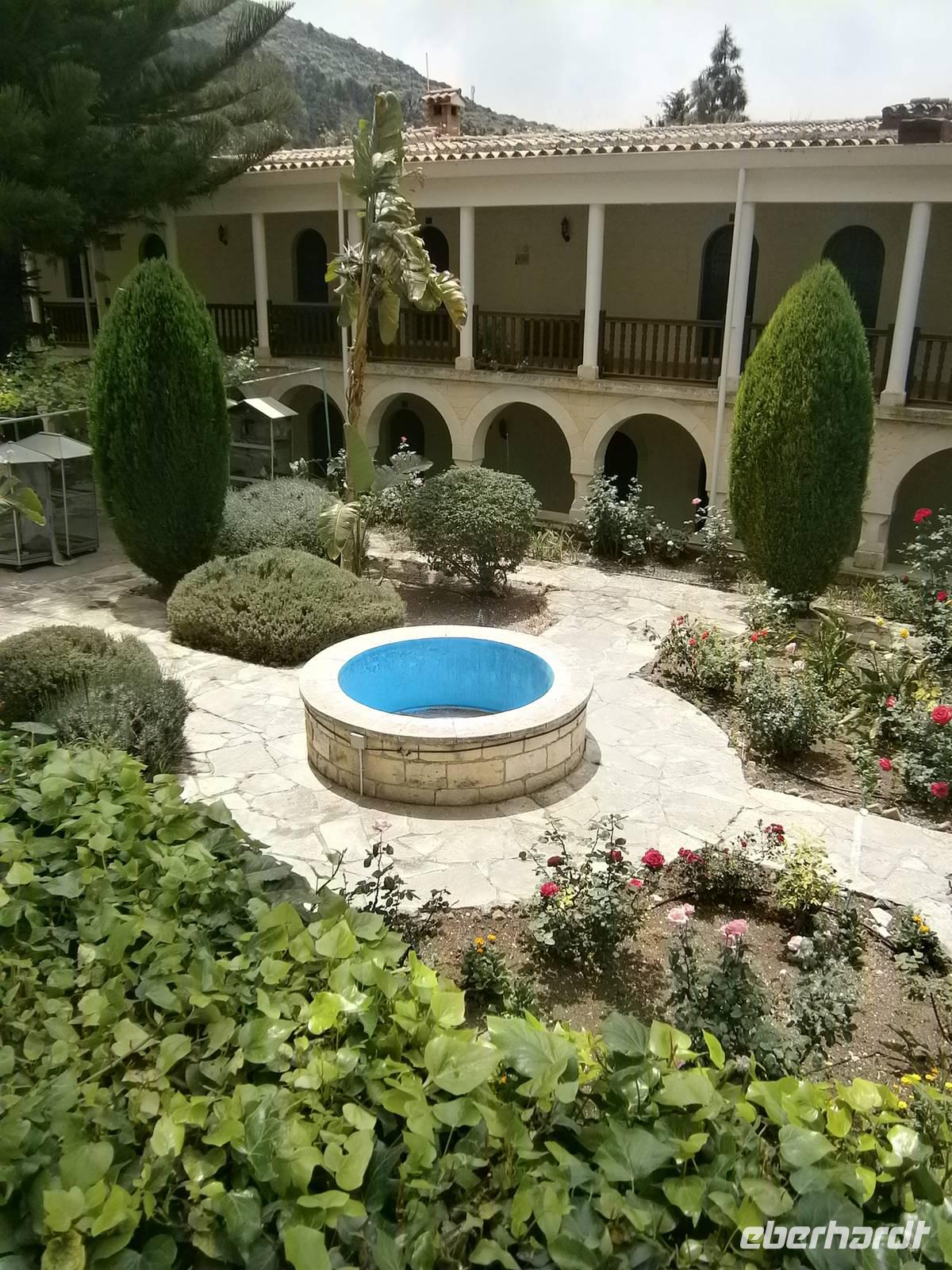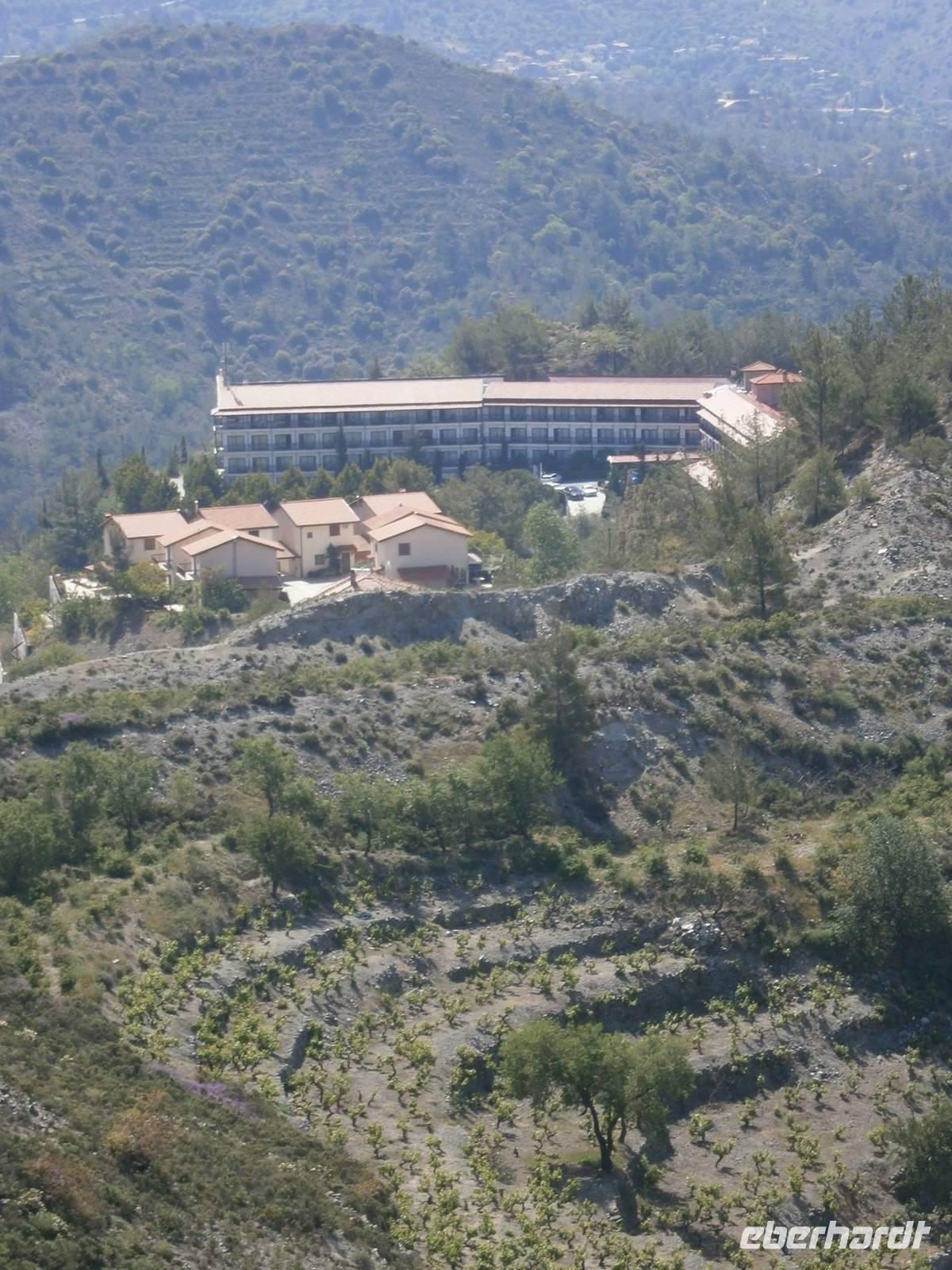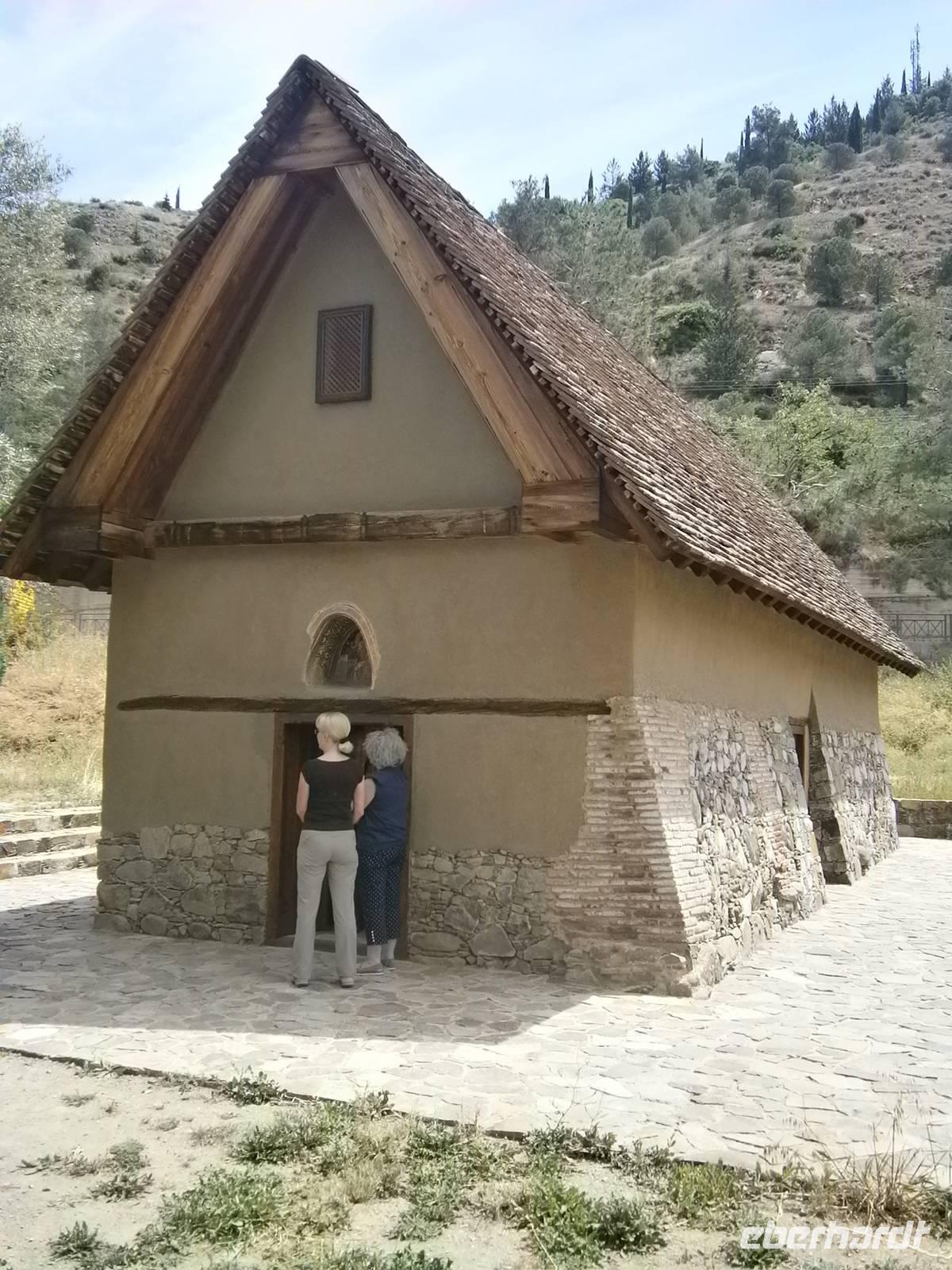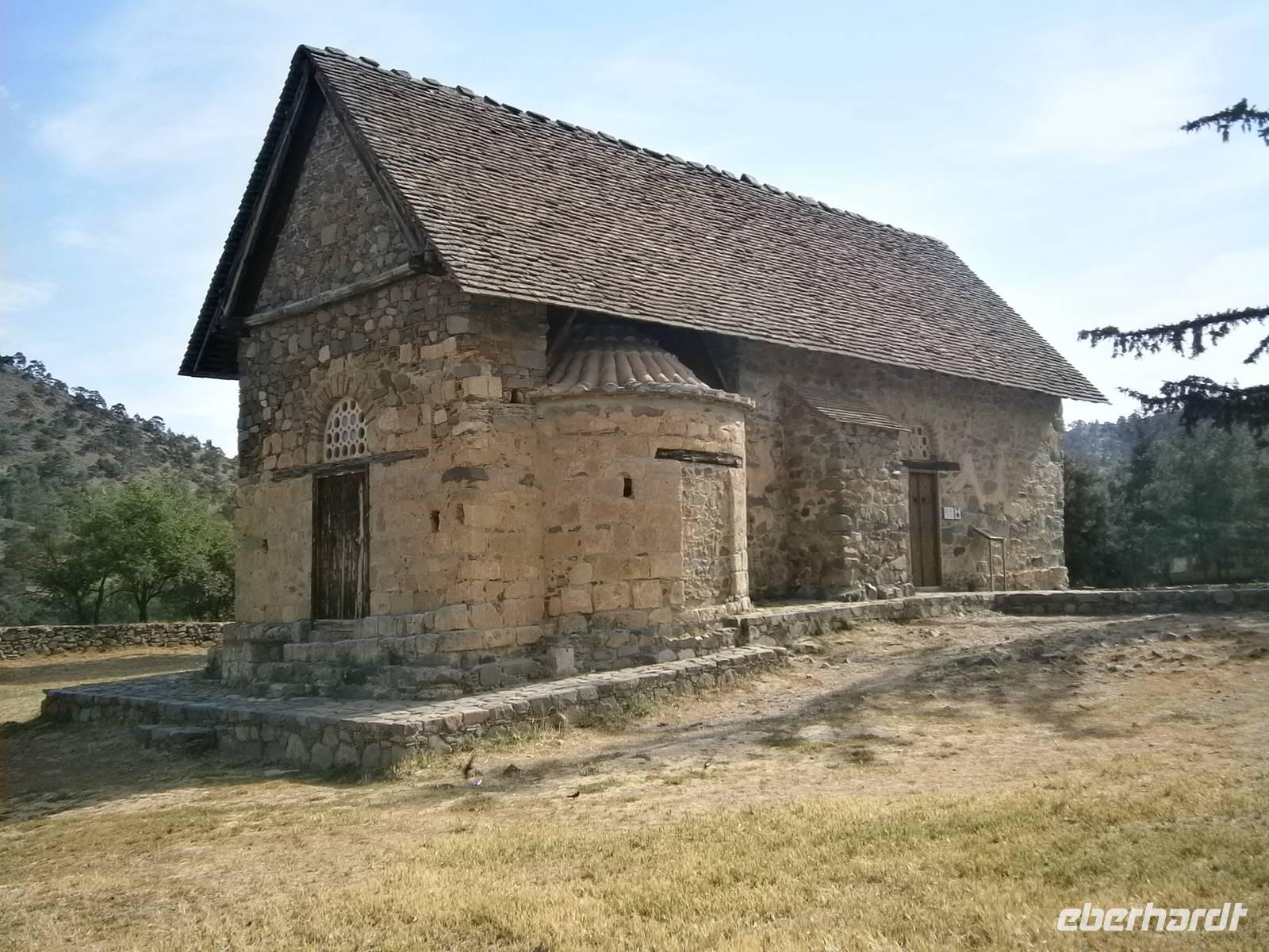 An diesem Tag sagten wir Auf Wiedersehen zur Hauptstadt und es ging mit dem Bus Richtung Troodos-Gebirge. Auf dem Programm stand die Besichtigung von 3 Scheunendachkirchen, von denen 2 seit 1985 zum Weltkulturerbe gehören. Äußerlich eher wie eine Scheune aussehend, waren sie innen jedoch mit aufwendigen Wandmalereien, zum Teil aus mehreren Jahrhunderten stammend, versehen. Mit einem Spaziergang durch das hübsche Dorf Kakopetria (kako = schwarz, petria = Stein) und anschließenden Mittagessen wurde der Tag der Scheunendachkirchen abgeschlossen. Bei der Busfahrt zu unserem nächsten Quartier in Agros konnten wir uns von der Schönheit der Berglandschaft und den wunderschönen Bergdörfern überzeugen. Mit Ankunft im Hotel mussten wir uns dann von unserem Busfahrer Solonas verabschieden, der uns bis dahin sehr sicher über Zyperns Straßen gefahren hat. Im sehr ruhig gelegenen Hotel Rodon wurden wir schon mit einem kleinen Begrüßungsschluck erwartet und auch der Bezug der Zimmer verlief zügig. Zwar musste der Haustechniker in den meisten Zimmern erst mal den Zimmersafe öffnen oder die Minibar reparieren, aber auch das war schnell und in aller Stille erledigt. Alle Gäste trafen sich dann um 19:00 Uhr zum gemeinsamen Abendessen. Kirchen anschauen macht müde und daher hat sich nur ein sehr kleiner Kreis noch zu einem gemütlichen Plausch in der Hotelbar getroffen.
