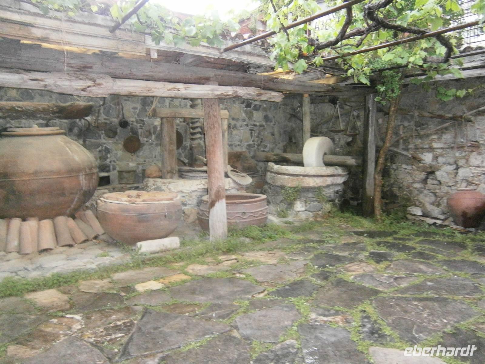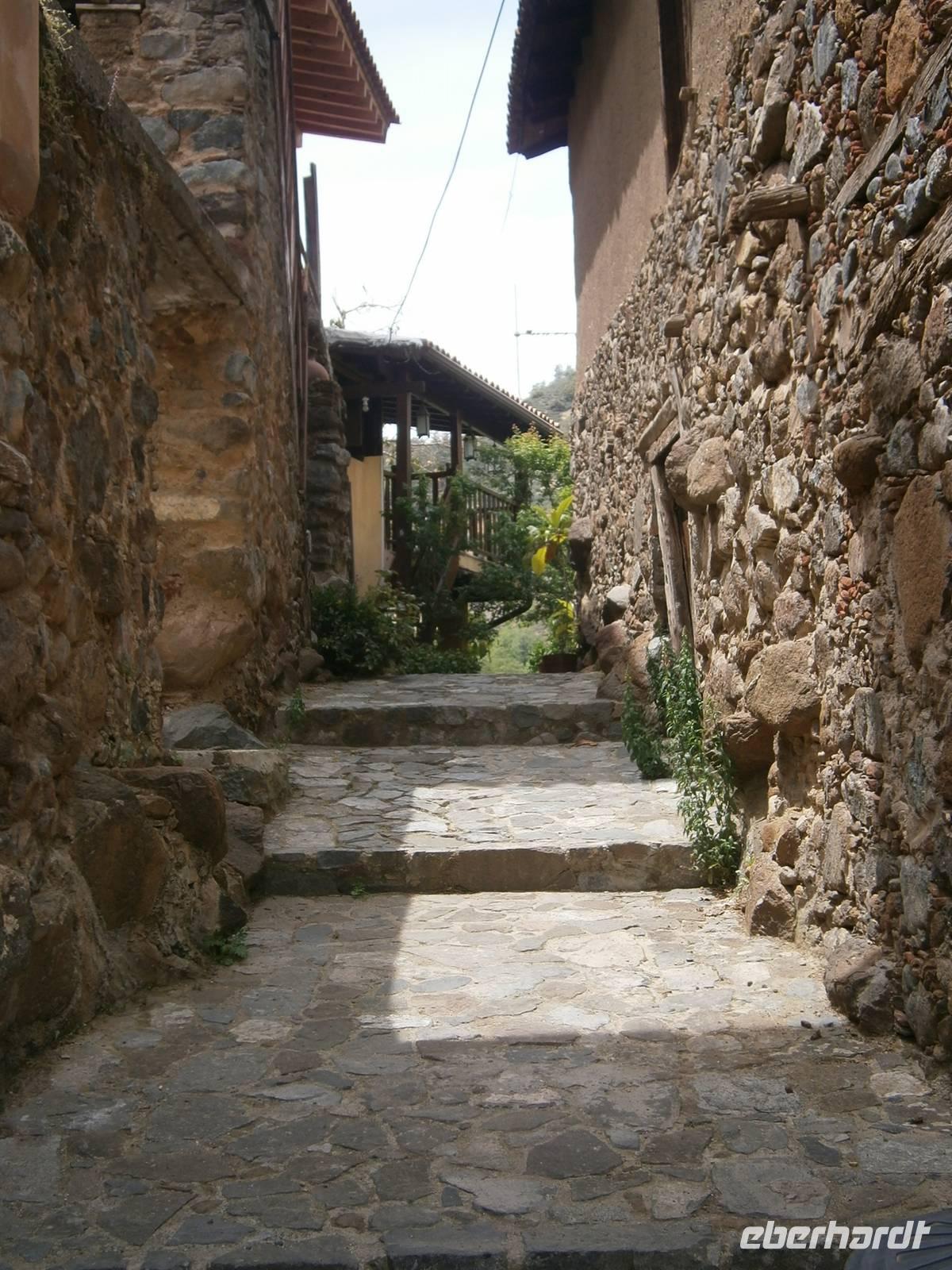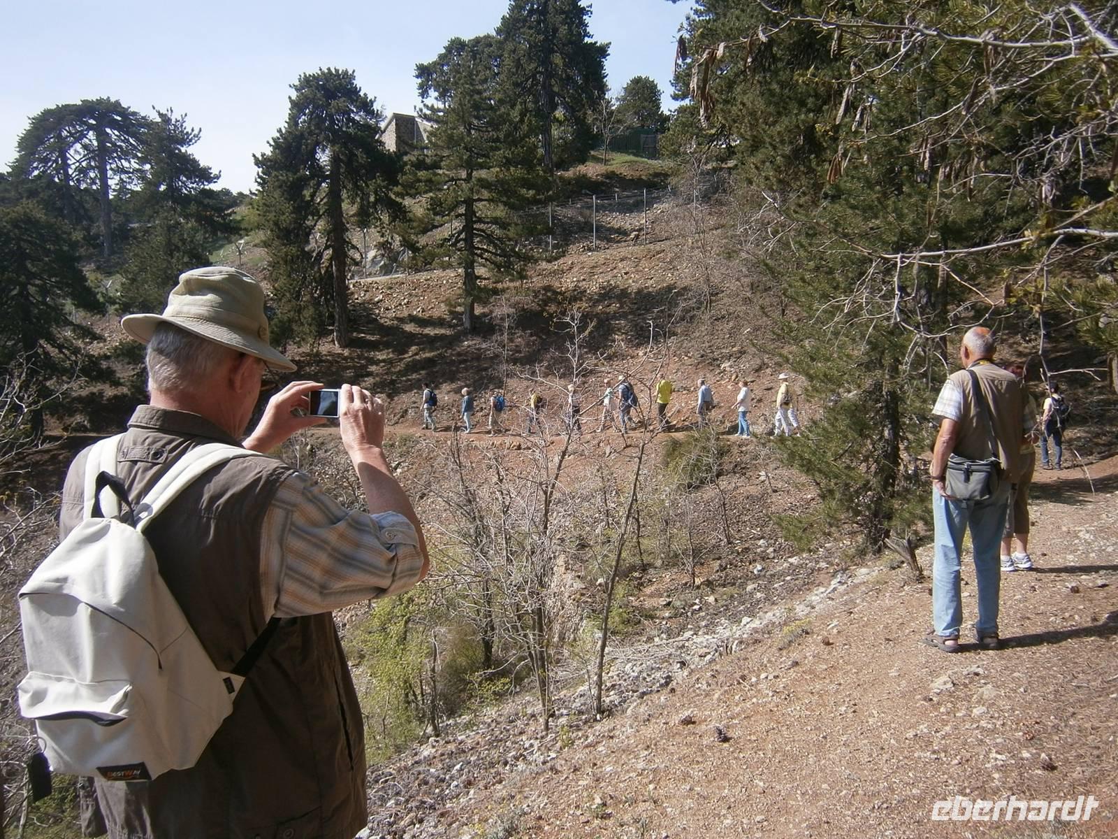 Am Anfang stand der Besuch der Scheunendachkirche in Pelendri, welche auch zum UNESCO-Weltkulturerbe gehört. Während unseres Aufenthaltes in Pelendri ging der Gottesdienst zu Ende - jede Kirche in Deutschland würde vor Neid erblassen über die Anzahl der Kirchgänger, es herrschte erst mal ein gewisses Verkehrschaos. Weiter ging die Fahrt zum Kalidonia Wasserfall, der mit einer Wanderung von 1,5km über Stock und Stein erreicht wurde. Der Rückweg war dann deutlich ebener. Abwärts ging es dann mit dem Bus nach Fioni zum Mittagessen in die Taverne Neraida bei Wirt Dimitris, auch wieder ein Mezze-Essen, aber diesmal mehr aus dem Backofen - wir haben kaum Platz genommen in der Taverne, fing es an zu hageln, etwas was selbst Georgios in seinem Leben bisher sehr selten erlebt hat. Nach dem üppigen Essen, selbstverständlich wieder mit Weiß- und Rotwein ging es weiter zum Heimatmuseum des Dorfes, welches durch Herrn Pilavakis gestiftet wurde und viele eindrucksvolle Zeitzeugen vom Leben auf dem Lande beherbergte. Weiter ging es bergauf und -ab zum Weingut Anthenodorou, auf dem wir uns bei einer Verkostung von den sehr guten Qualitäten zypriotischer Weine und Olivenöle überzeugen konnten. Mit dem gemeinsamen Abendessen ging auch dieser erlebnisreiche Tag zu Ende.
