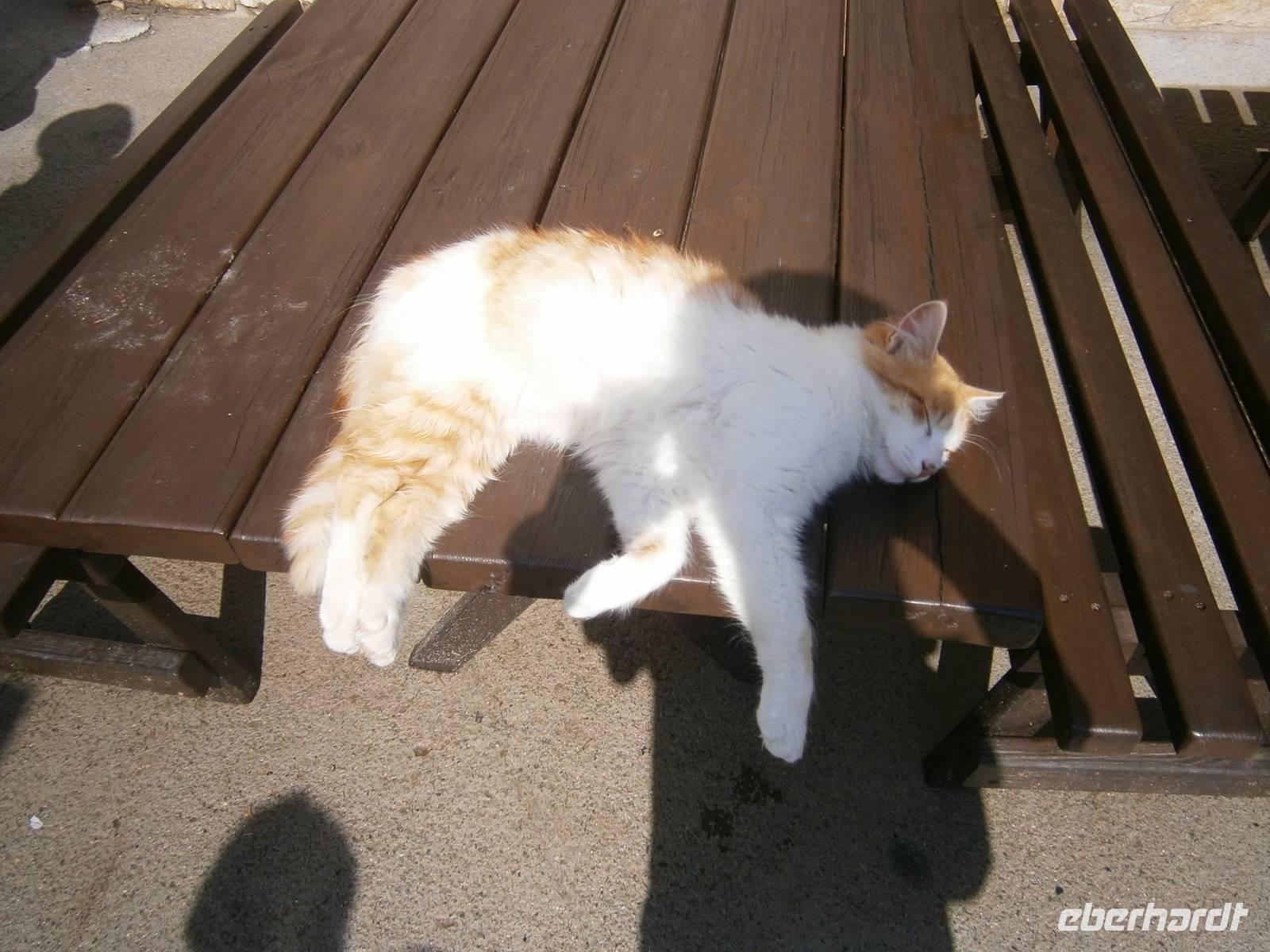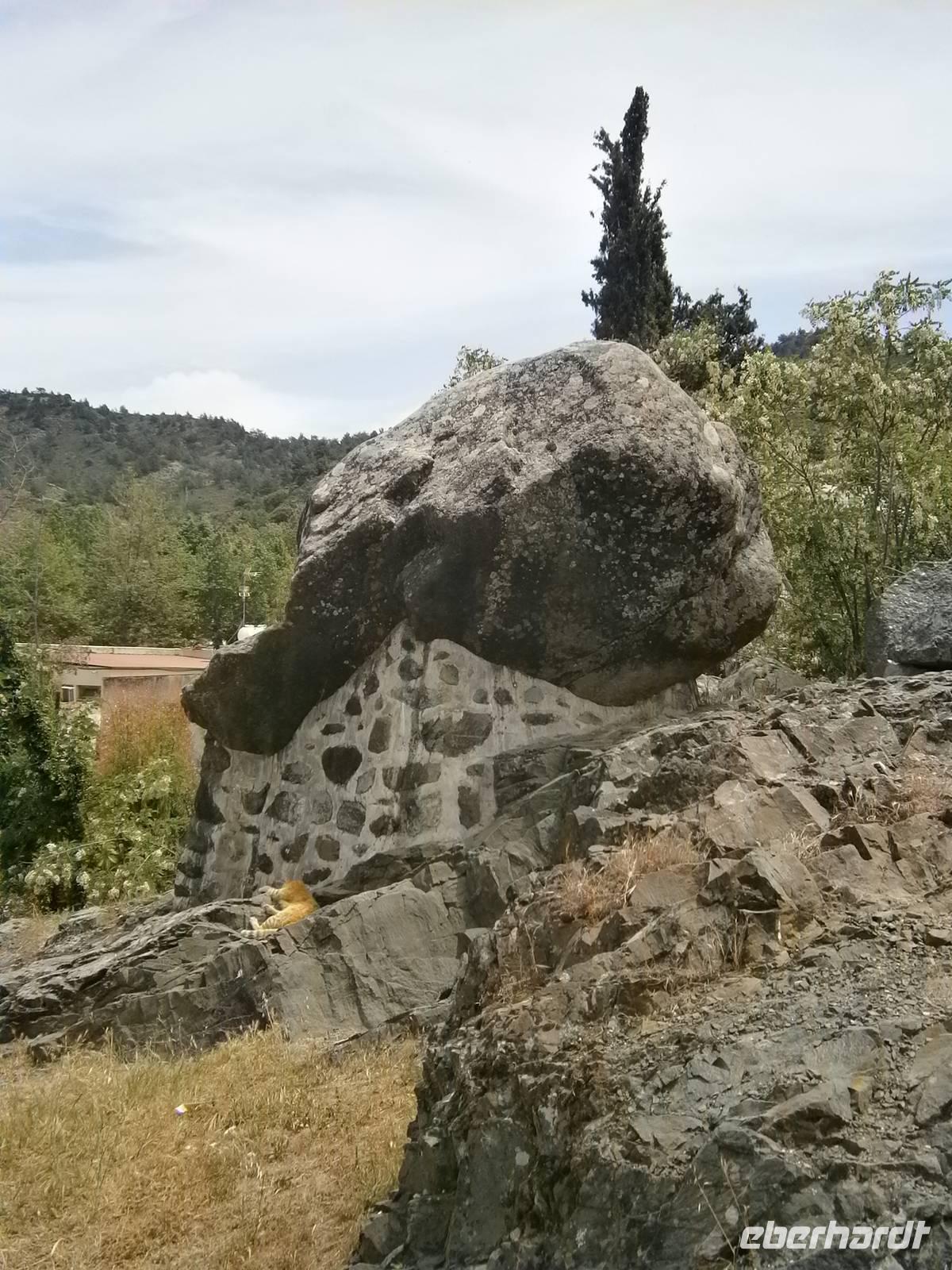 Wie immer wurden die Busfahrten von Georgios auch dazu genutzt, uns die Sprachkunde des Landes zu vermitteln. In Zypern bringt man seinem Kinde als erstes Wort nicht etwa Mama, Papa, Oma oder Opa bei, sondern „siga, siga" = langsam, langsam. Nun gut, bei 45° im Sommer ist auch siga, siga das richtige Tempo.