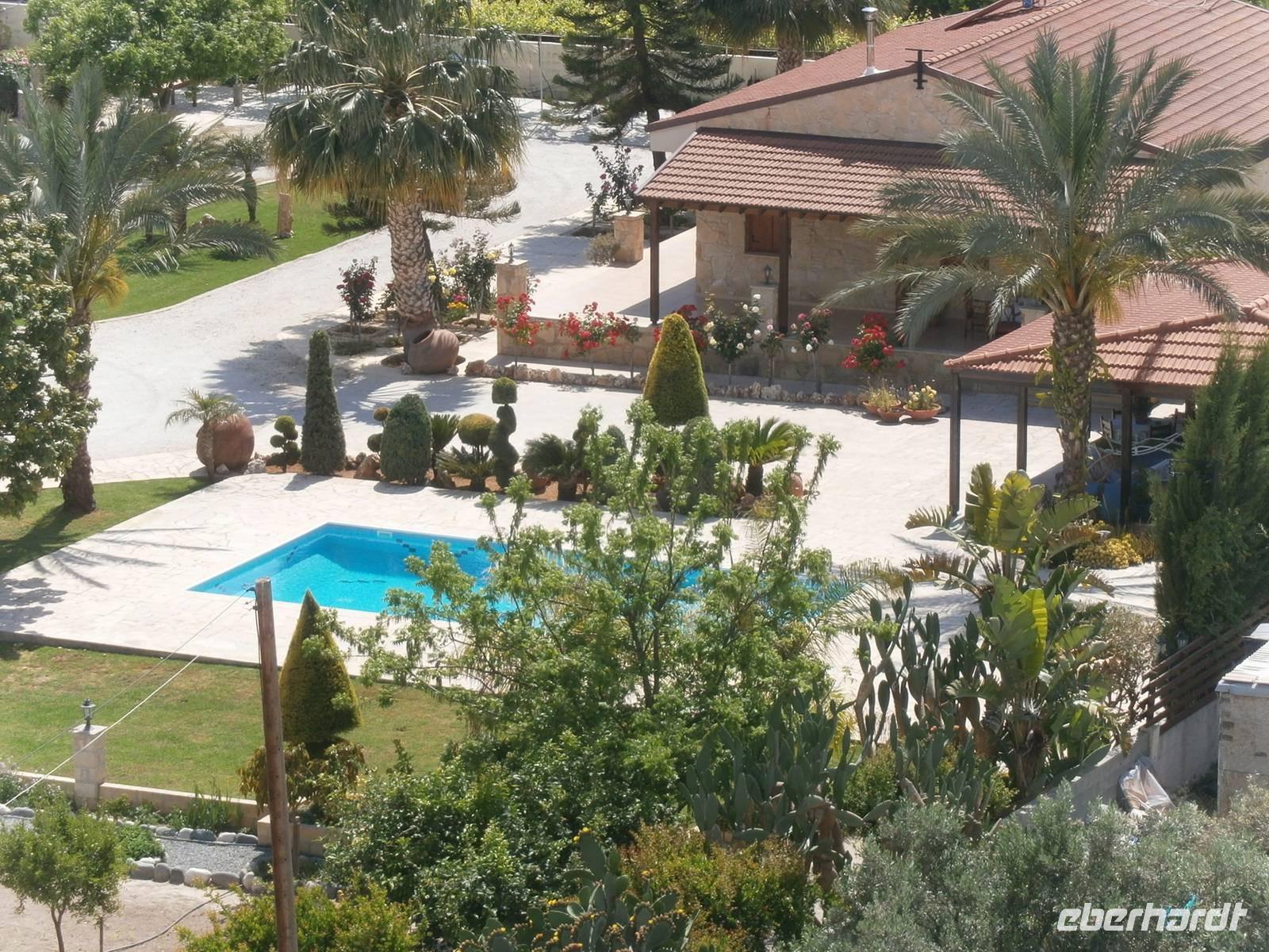 Heute war längeres Ausschlafen gewährleistet, denn unsere geplanten Aktivitäten sollten erst um 16:00 Uhr losgehen. Aber getreu dem Motto „Wer rastet, der rostet" wollten 12 Gäste mit mir eine kleine Wanderung in den anliegenden Bergen machen. Die von einem Gast gewünschte Almhütte konnte ich zwar nicht bieten, aber eine Belohnung am „Gipfel" in flüssiger Form (prozentiger als Wasser) wurde als Ersatz dafür akzeptiert. Am Nachmittag machten sich dann alle Gäste unter Führung von Georgios auf zum Spaziergang durch Agros. Auf dem Programm standen der Besuch einer Fleischerei, der einzigen Rosenmanufaktur Zyperns und von Marmeladen-Niki mit allerlei Verkostungsmöglichkeiten. Da an diesem Wochenende auch das Rosenfestival in Agros begann, konnten wir schon unterwegs einige zypriotische Leckereien an den Ständen probieren. Bis zu unserem gemeinsamen Abendessen in einer Taverne im Dorf rasteten wir noch in einem Kaffeneon, welches eigentlich nur Männern vorbehalten ist, aber angesichts unserer netten weiblichen Gäste wurde mal ein Auge zugedrückt. Der über heißen Sand gemachten türkischen Kaffee mundete dann allen Gästen. Anschließend ließen wir uns das Mezze-Abendessen in der Taverne Kilada bei Wirt Nikos mit reichlich Speisen, Wein und Zivania schmecken. Große Erleichterung herrschte beim Verlassen der Taverne, dass wir den Rückweg nicht zu Fuß, sondern bequem mit dem Bus antreten konnten.