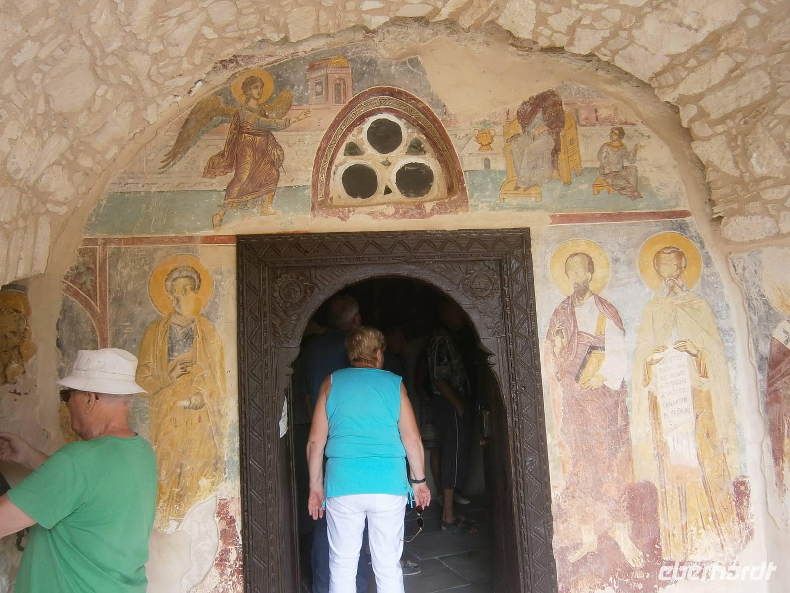 Nach einem kurzen Hafenrundgang ging es weiter zum Felsenkloster des Hl. Neophytos, welches durch den Einsiedler Neophytos gegründet wurde, der eigenhändig eine kleine Kapelle und Zelle in den Fels geschlagen hat. Anschließend konnte noch die Basilika der heute noch aktiven Klosteranlage besichtigt (aus dem 15 Jhd.) werden.