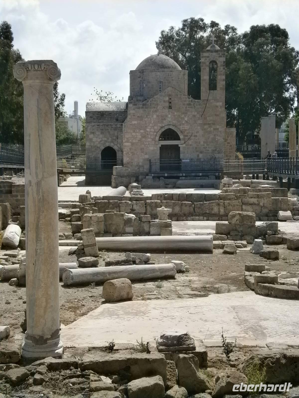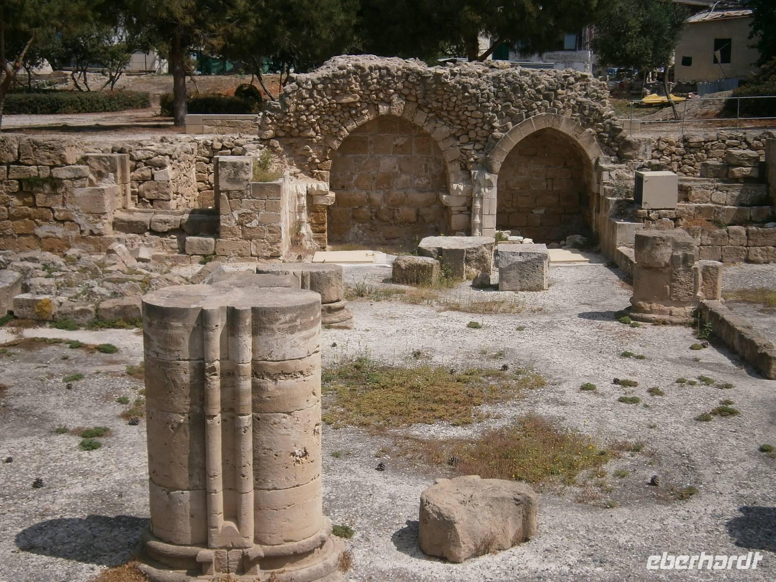 Freizeit. Mit dem größten Teil der Gäste bin ich mit dem öffentlichen Bus nach Pafos zum Bummeln mit kulturellem Anteil gefahren. In der Nähe des Hafens besuchten wir den Chrysopolitissa-Komplex mit byzantinischer Kreuzkuppelkirche, den Überresten einer aus dem 4. Jhd. stammenden frühchristlichen Basilika, der Paulus-Säule, den Resten einer fränkischen Kirche aus dem 13. Jhd. und einem gut erhaltenen fränkischen Badehaus. Mit einem kleinen Spaziergang erreichten wir anschließend die Agia-Solomoni-Katakomben mit Wunschbaum und angeblich Augenleiden heilenden Wasser - das Wasser mussten wir aber suchen, daher wird es wohl nichts mit Klarsicht in Zukunft. Danach ging jeder Gast seinen individuellen Interessen nach und wir trafen uns dann zur gemeinsamen Rückfahrt. Dabei kam es zur kurzen Aufregung, da einer unserer 80-Jährigen nicht ausgestiegen ist, aber clever hat er den nächsten Bus zurück genommen und war 20min später auch im Hotel. Bei schönstem Wetter war dann Badespaß am Pool oder Meer angesagt. Zum Service von Eberhardt Travel gehört es natürlich auch, die schönsten Sonnenuntergänge im Meer zu bestellen - reichlich Knipserei war der Dank dafür.