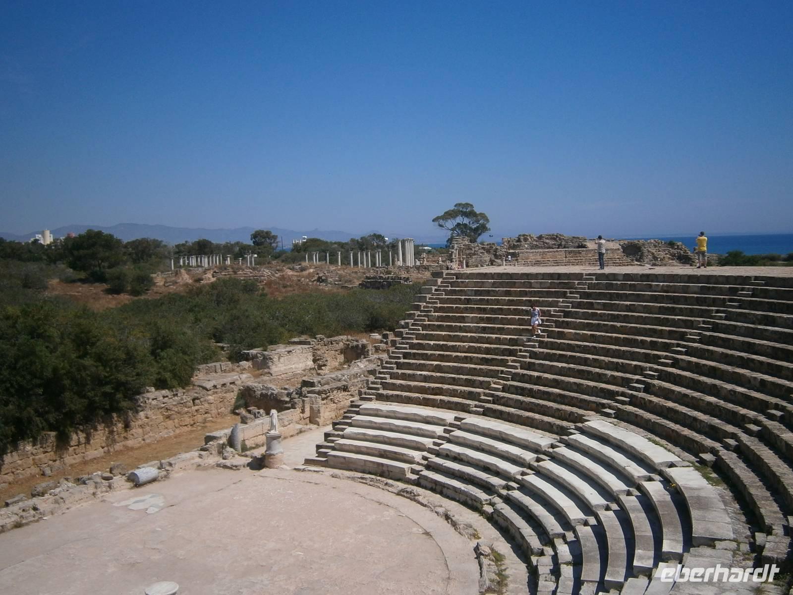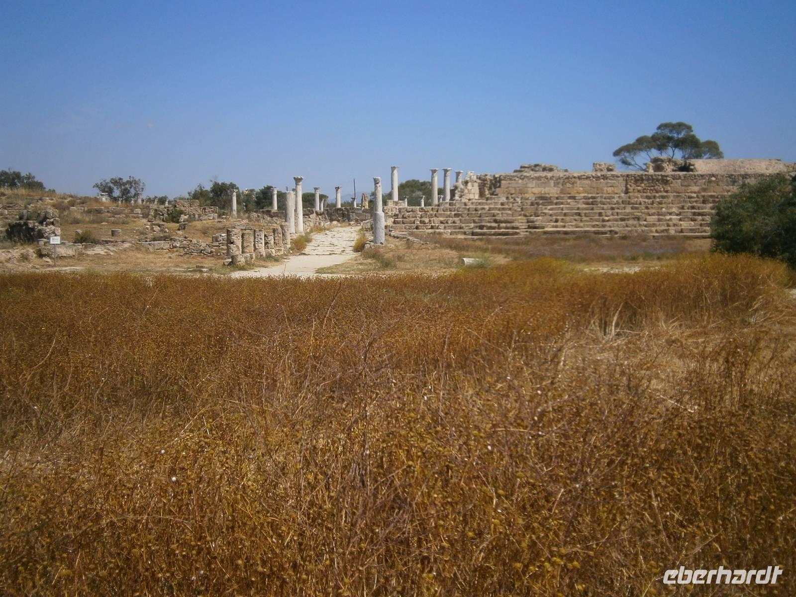 Nach dem Kloster Barnabas ging es in die Überreste der antiken Stadt Salamis, welches im 8. - 5. Jhd. v. Chr. zu den einflussreichsten Stadtkönigtümern von Zypern gehörte. Bei einem Rundgang durch das Theater, die Bäder und dem Marktplatz konnten wir die Größe und den Glanz dieser ehemaligen Stadt erahnen. Anschließend fuhren wir in die Stadt Famagusta, vorbei am ehemals wichtigsten Hafen von Zypern (jetzt fast leer) und der venezianischen Stadtmauer in die Altstadt. Bei einem Rundgang besuchten wir die ehemalige Krönungskirche der Könige von Jerusalem, die St. Nikolaus Kathedrale (heute eine Moschee). Auf dem Rückweg nach Protaras hielten wir kurz an der Geisterstadt. Einst das Urlauberzentrum von Famagusta und Zypern überhaupt mit herrlichem Sandstrand, heute militärisches Sperrgebiet mit beklemmender Atmosphäre.