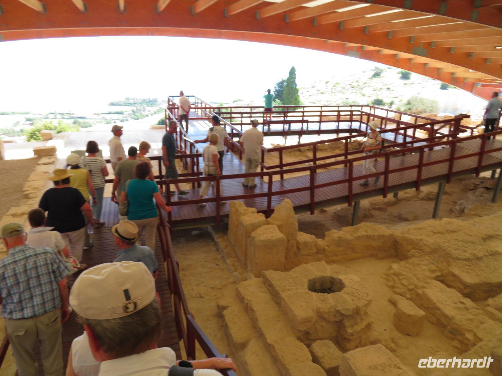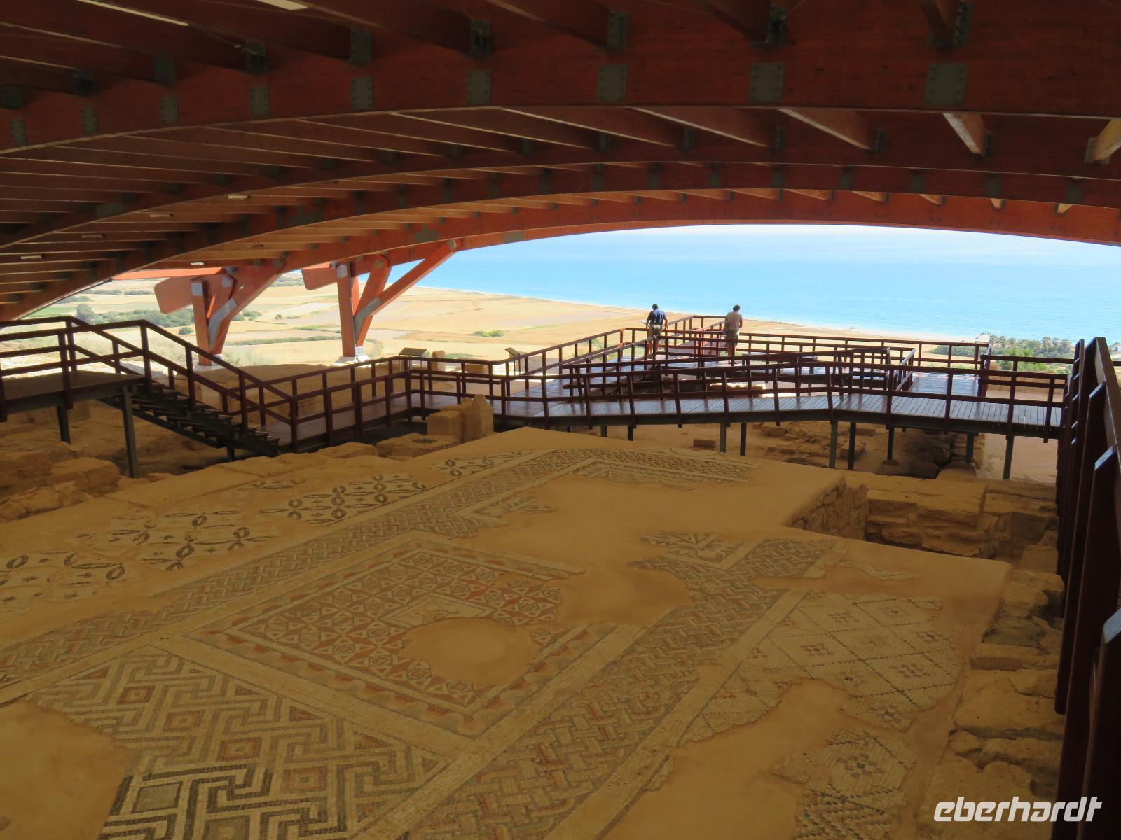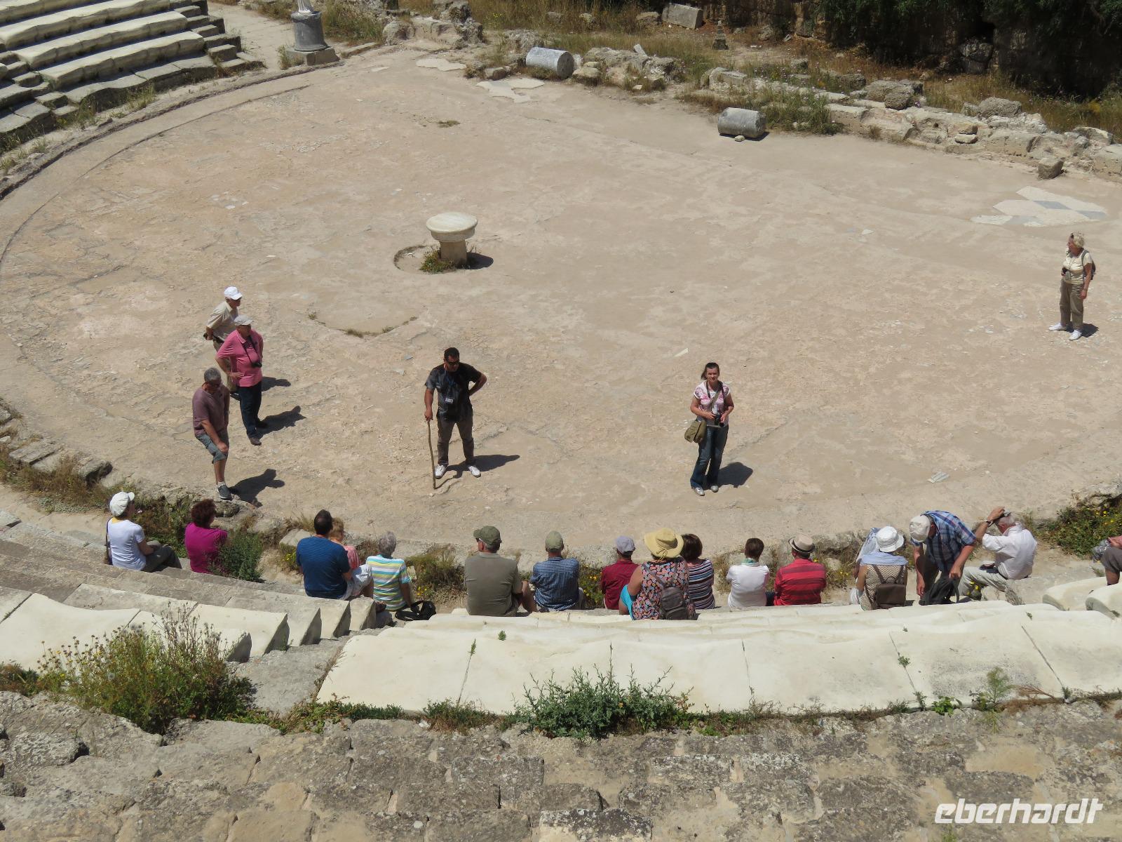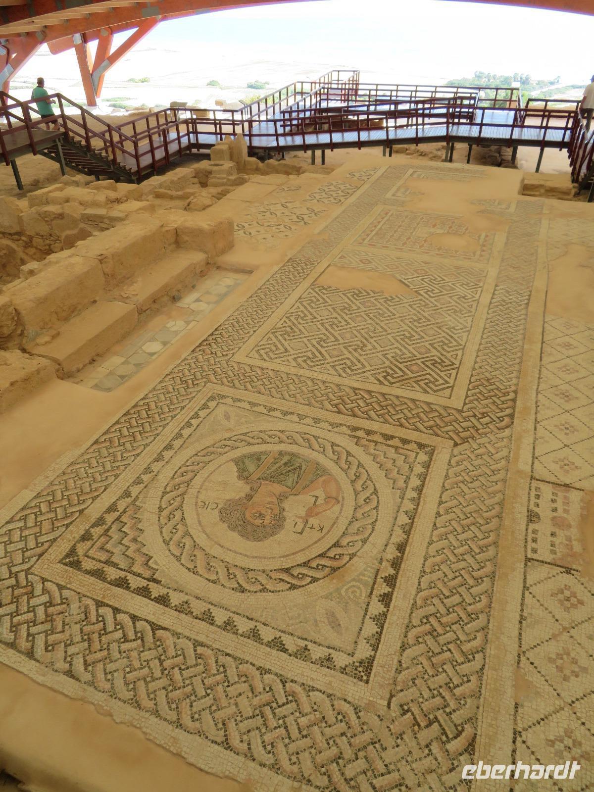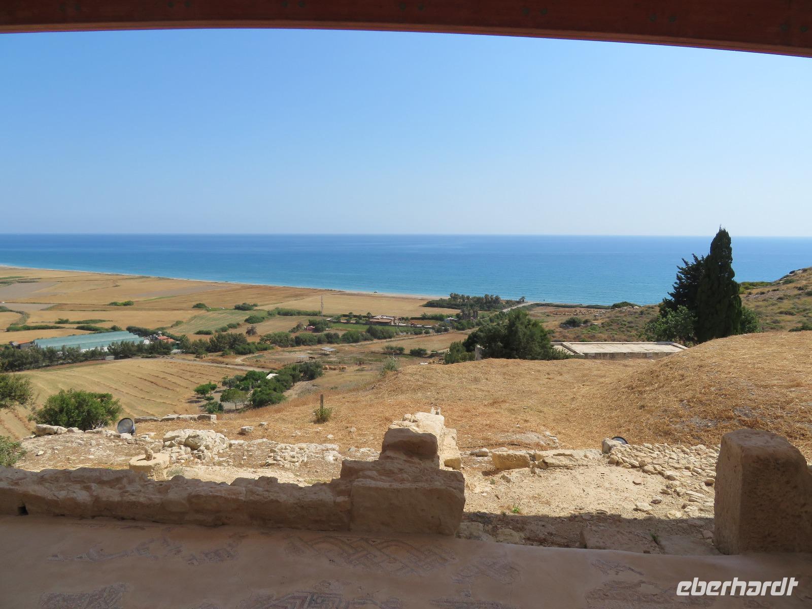 Nach dem Frühstück mit Meeresrauschen begann unser erster Ausflug unserer Rundreise Zypern. Im Bus begrüßte uns herzlich unser örtlicher Reiseleiter Jorgos und wir fuhren entlang der Küste bis zu den etwas außerhalb von Paphos gelegenen Königsgräbern, die aus dem 3. Jahrhundert stammen. In diesen historischen und begehbaren Ruhestätten wurden allerdings wahrscheinlich nie Könige beigesetzt, sondern sie wurden von der Oberschicht genutzt, weil es zu dieser Zeit keine Stadtkönige mehr auf Zypern gab. Nach nur wenigen Minuten Busfahrt erreichten wir dann die herausgeputzte Innenstadt von Paphos. Die Stadt ist in diesem Jahr gemeinsam mit der dänischen Stadt Aarhus „Kulturhauptstadt Europas" und es finden zahlreiche kulturelle Veranstaltungen vor den Kulissen des historischen Hafens und des archäologischen Parks statt. Den Archäologischen Park der Stadt Paphos, der sich unweit des Hafens befindet besuchten wir dann anschließend. Dort steht das Haus des Dionysos mit seinen Bodenmosaiken, geschützt von einem nachträglich errichteten Pavillon. Die Mosaiken aus dem 2. Jahrhundert n. Chr. wurden 1962 bei Bauarbeiten entdeckt und freigelegt. Es ist immer wieder beeindruckend, mit welcher Genauigkeit und ohne moderne Hilfsmittel die Menschen damals die Mosaike gesetzt haben. Im Anschluss bummelten wir noch entlang des Hafens, bevor wir die Stadt verließen und weiter zum Kloster des heiligen Neophytos-Kloster bei Mesogi fuhren. Dort stiegen wir die wenigen Stufen zur Eremitenhöhle und zur Höhlenkapelle hinauf, die der heilige Neophytos im 12. Jahrhundert eigenhändig errichtete und über 50 Jahre dort allein lebte. Zu seinen Ehren wurde nach seinem Tod in unmittelbarer Nähe das gleichnamige Kloster errichtet, dessen Kirche wir mit seinen zahlreichen Ikonen ebenfalls besuchten. Nach einem kleinen Spaziergang durch die Klosteranlagen fuhren wir anschließend weiter in Richtung Akamas-Halbinsel. Doch zuvor legten wir am Mittag noch einen Stopp in dem urigen Weindorf Kathikas ein um in der örtlichen Taverne ein typisch zypriotisches Meze-Essen zu genießen. Ein Meze-Essen Meze besteht aus vielen verschiedenen Speisen, die nacheinander auf kleinen Tellern serviert werden. Typisch dazu trinkt man Wein, Wasser und Schnaps. Nach diesem kulinarischen Höhepunkt setzten wir unsere Fahrt Richtung Akamas durch die Weinberge fort und erreichten am frühen Nachmittag den kleinen Fischerort Latchi. Von hier waren es dann nur noch wenige Kilometer bis zum Eingang des Naturschutzgebiet Akamas. Wir verließen den Bus und spazierten ein Stück entlang der zerklüfteten Küste. Während des Spazierganges besuchten wir das „Bad der Aphrodite", wo die Göttin der Liebe und Fruchtbarkeit laut der Mythen im Schatten eines Feigenbaumes gebadet haben soll. Die Akamas-Halbinsel verdankt ihren Namen dem Sohn des Theseus, der hier auf dem Rückweg von der Stadt Troja an Land gegangen sein soll. Die Halbinsel ist ein beliebtes Wandergebiet und kann eine außergewöhnliche Flora und Fauna vorweisen. Außerdem ist sie noch relativ unberührt, denn das Gebiet des Naturparks darf nicht bebaut werden. Während unseres Spazierganges bot sich uns ein toller Blick über das türkisblaue Wasser und der weite Blick in die Bucht von Chrysochou. Nach einer entspannten Rückfahrt durch die Weinberge am späten Nachmittag erreichten wir dann wieder unser Hotel bei Paphos.