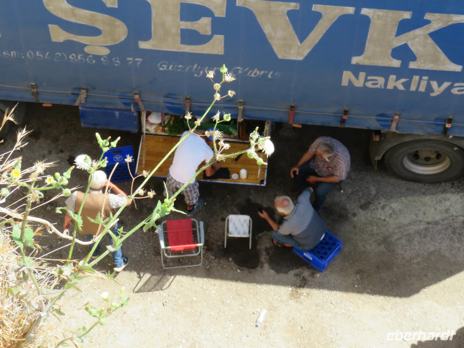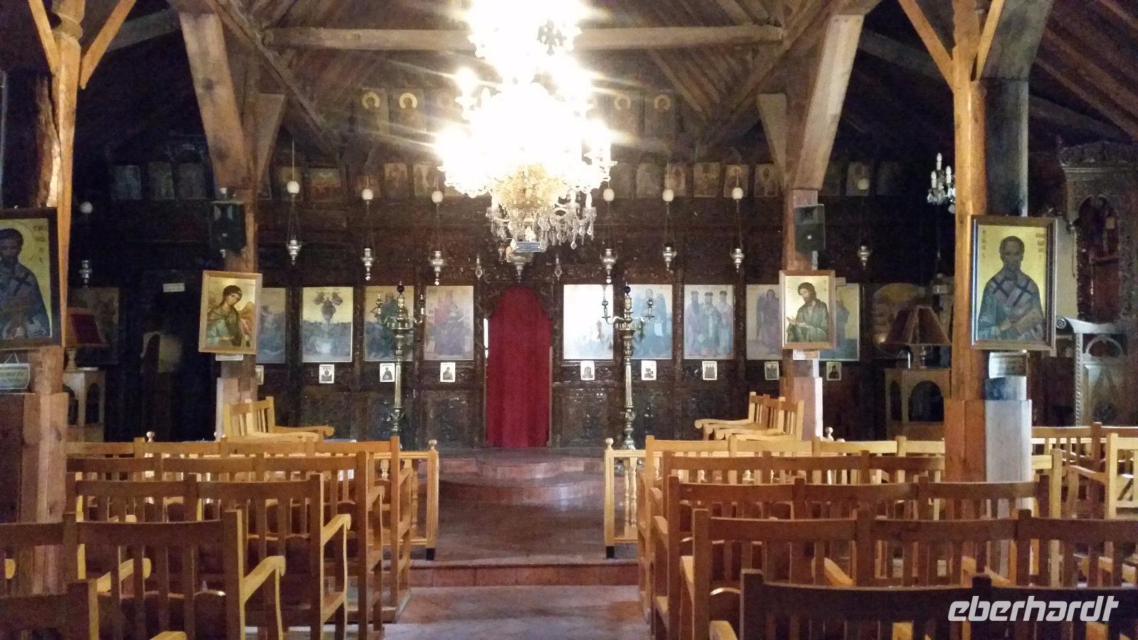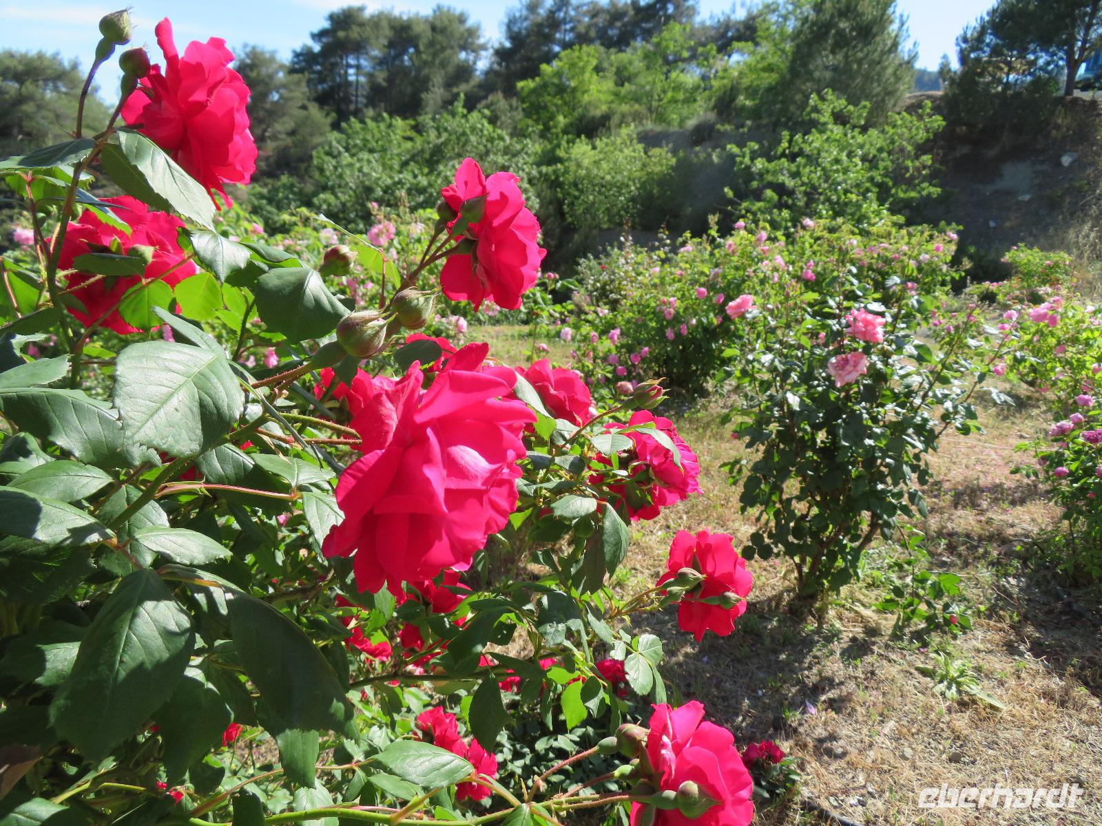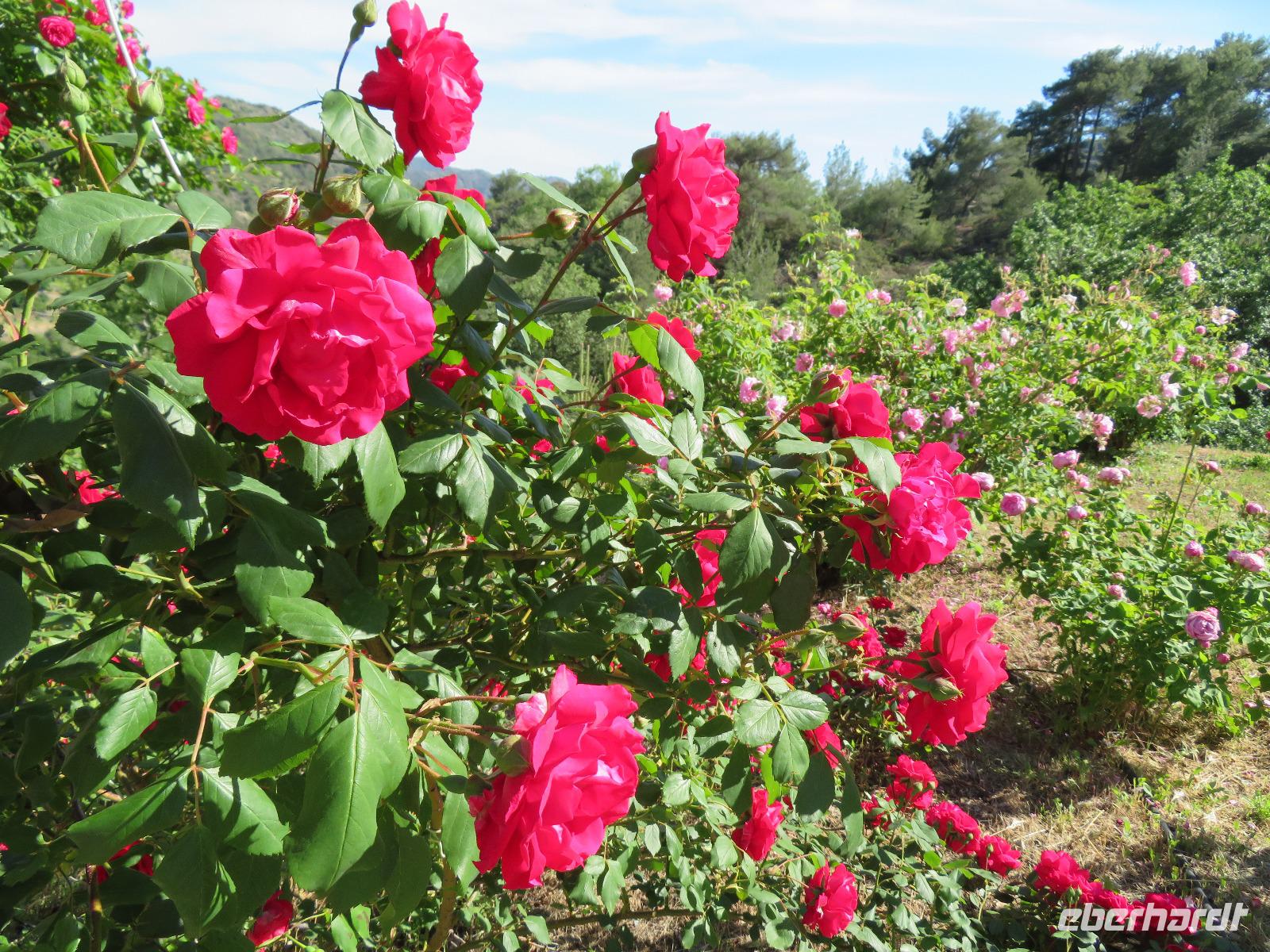 Am dritten Tag unserer Rundreise verließen wir die Küste und fuhren weiter in das Landesinnere. Begleitet von zahlreichen Obst-, Gemüse- und Zitrusplantagen erreichten wir am frühen Mittag die Gerolemos-Weinkelterei in Omodos. Nach einer genussvollen Weinverkostung mit zypriotischen Leckereien in dem idyllisch gelegenen Weingut fuhren wir nur wenige Kilometer bis in den Ortskern von Omodos. Hier unternahmen wir einen kleinen Spaziergang durch die kleinen Gassen des 300-Seelendorfes und besuchten unter anderem die aus dem 19. Jahrhundert stammende Kreuzkirche Timiou Stavrou sowie die älteste Weinpresse der Insel Zypern. Nach etwas Zeit zum Bummel durch das kleine Dorf stiegen wir wieder in den Bus, denn es stand ein längerer Bergaufstieg im Troodosgebirge an. Denn Ziel war der Berg Olympos, dem mit 1952 Metern höchste Berg der Insel Zypern. Auf dem Plateau unterhalb des Gipfels hielten wir dann mit dem Bus und jeder konnte den Ausblick genießen, ein Stück spazieren oder in einem der zahlreichen Restaurants etwas zum Mittag essen. Troodos verdankt seinen Namen ursprünglich den drei Wegen, die von Paphos, Limassol und Nikosia auf den höchsten Berg des Gebirges führen und dort aufeinander treffen. Übersetzt heißt so das Troodosgebirge, Dreiwegegebirge. Nach unserer Mittagsrast fuhren wir dann weiter hinein in das bewaldete Gebirge bis wir nach dem Mittag unser Hotel für die nächsten zwei Tage in Kyperounta erreichten. Bis wir am Nachmittag das Bergdorf Agros besuchten, blieb zum Mittag noch ausreichend Zeit, eine Abkühlung im Pool des Hotels genießen oder einfach beim Blick in die Berge die Seele baumeln zu lassen. In Agros, einem kleinen Nachbardorf von Kyperounta befinden sich viele kleine Familienbetriebe, von denen wir einige besuchten. So unter anderem die Rosen- und Süßwarenmanufaktur, in denen wir einige leckere Sachen verkosteten. Im Dorf war dann schon viel los, überall wurden kleine Stände aufgebaut, denn das jährliche Rosenfest stand an. Nach unseren Besuchen in den Manufakturen spazierten wir durch das Dorf und tranken im Kafenio, dem Kaffeehaus einen typischen zypriotischen Kaffee. Am Abend wurden wir dann bei Nikos in seiner Taverne herzlich empfangen und wir genossen ein köstliches Meze-Essen mit Wein.
