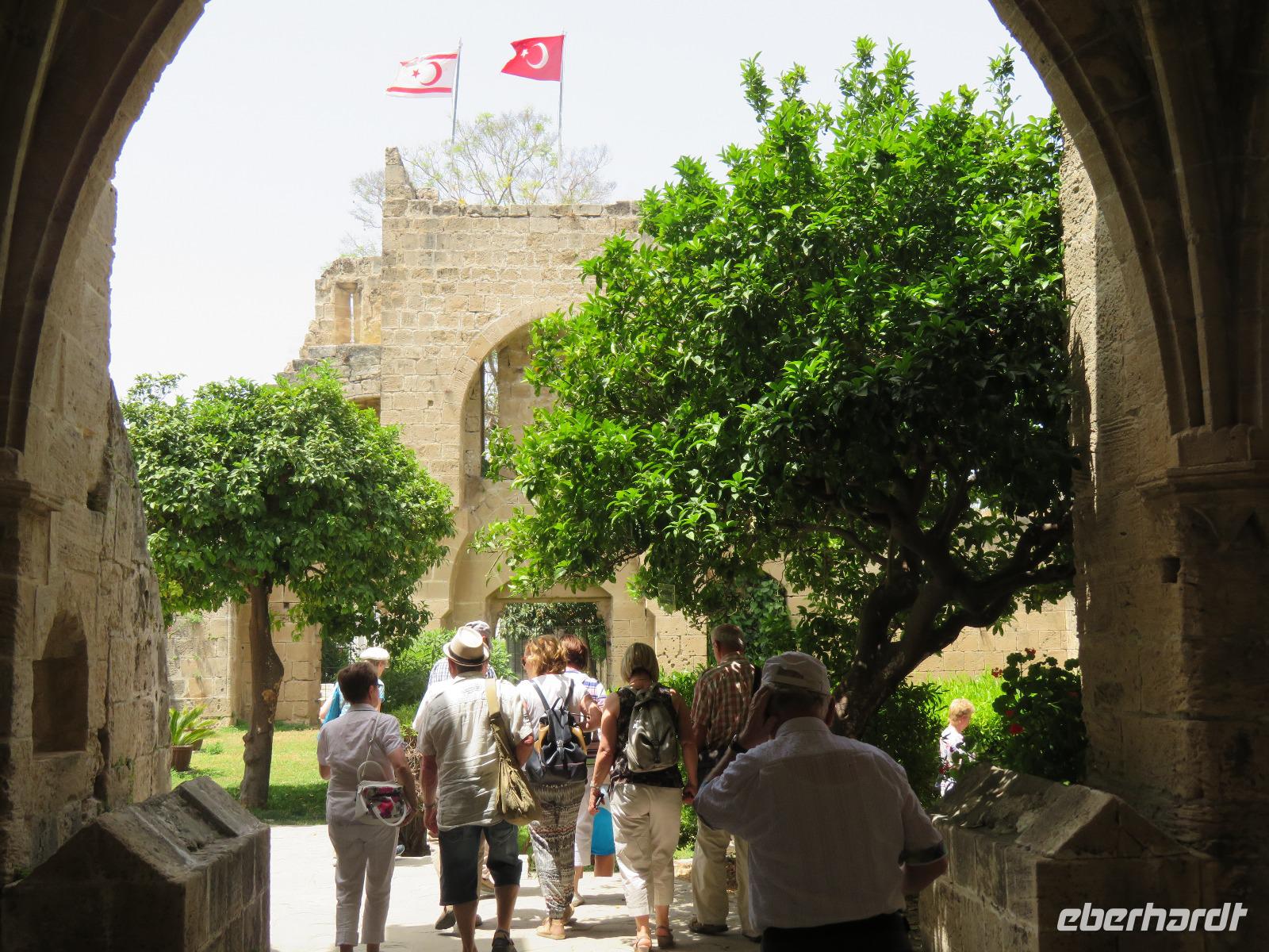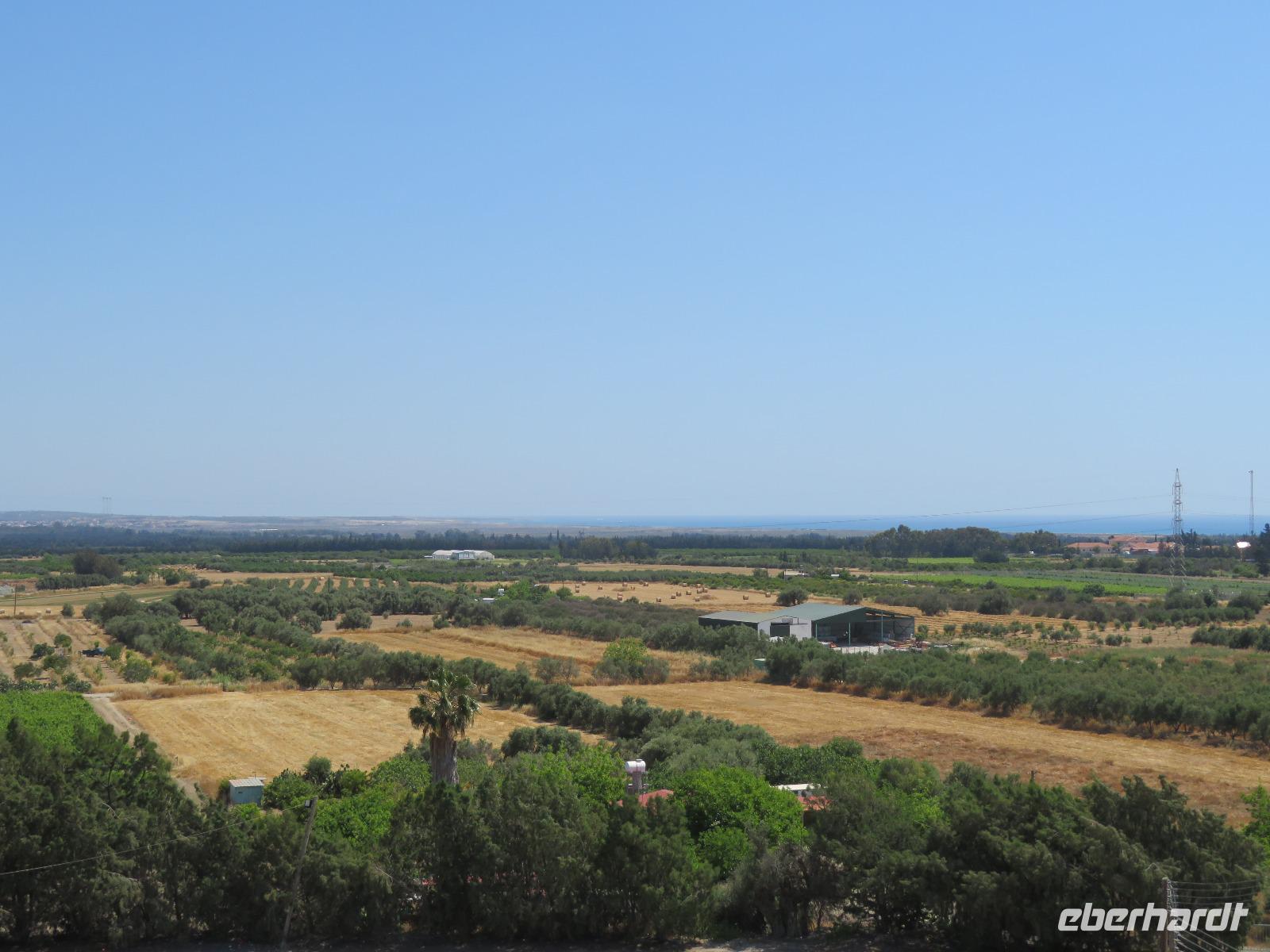 Am Morgen verließen wir das Troodosgebirge und fuhren zunächst entlang der Mesaoria-Ebene in Richtung der Hauptstadt Nikosia. Hier, zwischen Troodos- und Pentadaktilosgebirge verläuft die Demarkationslinie, die Zypern seit der türkischen Invasion im Sommer 1974 teilt. Es macht einen sehr traurig, wenn man die Grenzanlagen und die Geschichte dahinter sieht und man weiß, dass es wie so oft in der Welt eigentlich in dem Konflikt nur um Macht und wirtschaftliche Interessen geht. Denn die Bevölkerungsteile von Nord- und Südzypern wünschen nichts sehnlicher, als eine Wiedervereinigung. Am späten Vormittag erreichten wir dann Nikosia, die letzte geteilte Hauptstadt Europas. Nach einer kleinen Stadtrundfahrt durch die 280.000 Einwohner zählenden Stadt besuchten wir das Zypernmuseum. Hier ist die Geschichte der zypriotischen Kultur eindrucksvoll dargestellt und Jorgos erklärte uns bei einem Rundgang durch das bedeutendste Museum der Insel die darin enthaltenen Schätze des Landes. Im Anschluss fuhren wir mit dem Bus zur Demarkationslinie und zur Grenzkontrolle an den Check Point nach Nordzypern. Wir passierten nach umfangreicher Passkontrolle die Grenze zum türkischen Teil, die ab hier Lefkosa heißt. Wir überquerten das Pentadaktilosgebirge (Fünffingergebirge) und fuhren vorbei entlang der Festung von St. Hilarion weiter nördlich in Richtung Kyrenia. Doch bevor wir die Stadt erreichten, machten wir einen Abstecher in die Abtei Bellapais, einem ehemaligen Kloster mit toller Aussicht über die Hafenstadt Kyrenia und die Küste. In der Stadt Kyrenia, die türkisch „Girne" heißt, spazierten wir dann zum historischen Kastell, dem größten Festungsbau Zyperns. Hier befindet sich eines der am besten erhaltenen antiken Schiffe im Mittelmeerraum in einem Museum. Noch heute untersuchen Archäologen die im Jahr 1965 vor der Hafenstadt gefundenen Überreste. Nach Führung durch Jorgos, hatte anschließend jeder Zeit, sich auf der Mole oder in der Altstadt umzusehen. Am Nachmittag fuhren wir dann wieder in Richtung Grenze nach Südzypern und überquerten wieder den Check Point in der Hauptstadt Nikosia. Am Abend trafen wir dann im Hotel Cavo Maris in Protaras an der Ostküste ein und ließen den Abend entspannt in der weitläufigen Hotelanlage ausklingen.