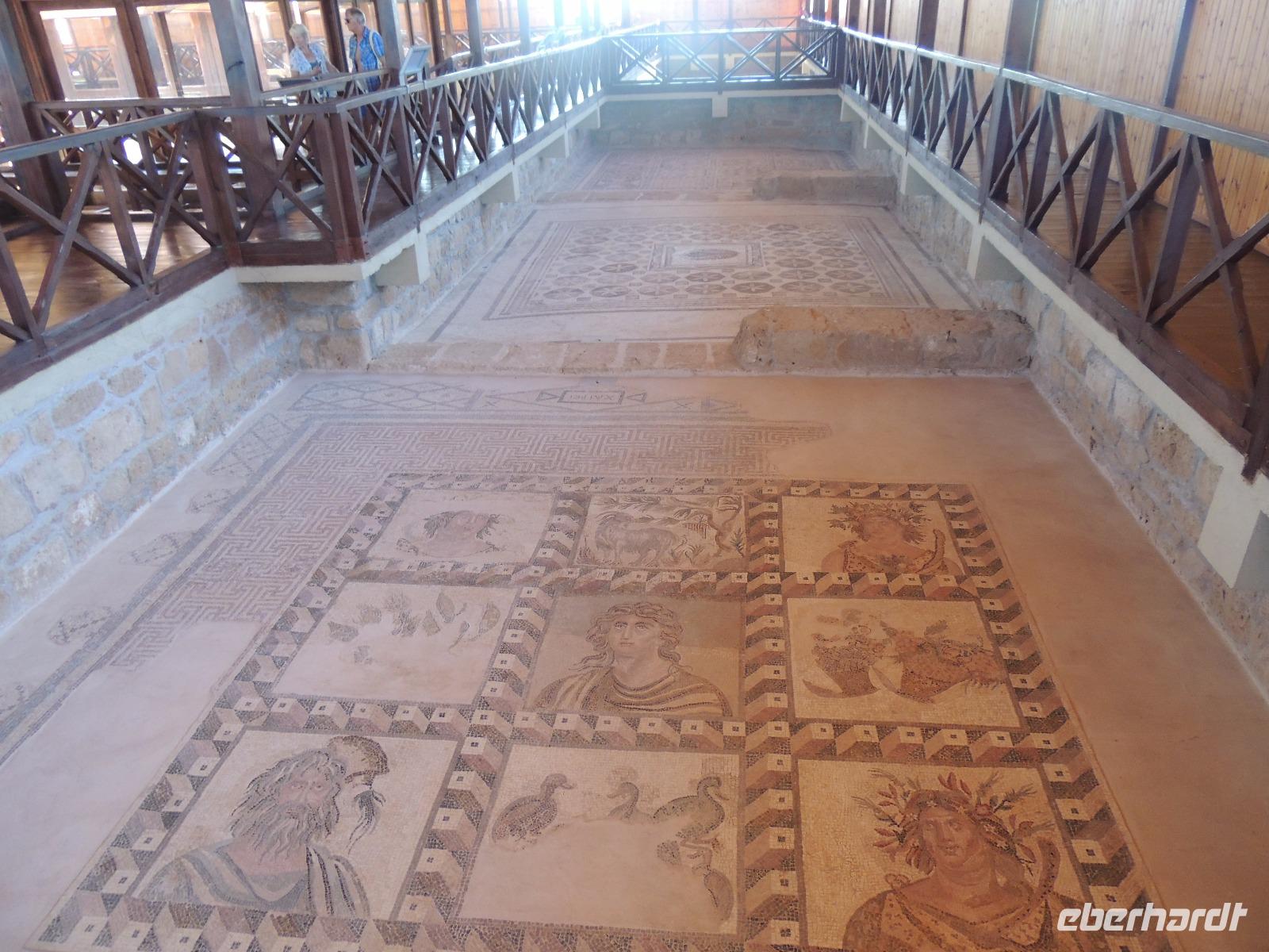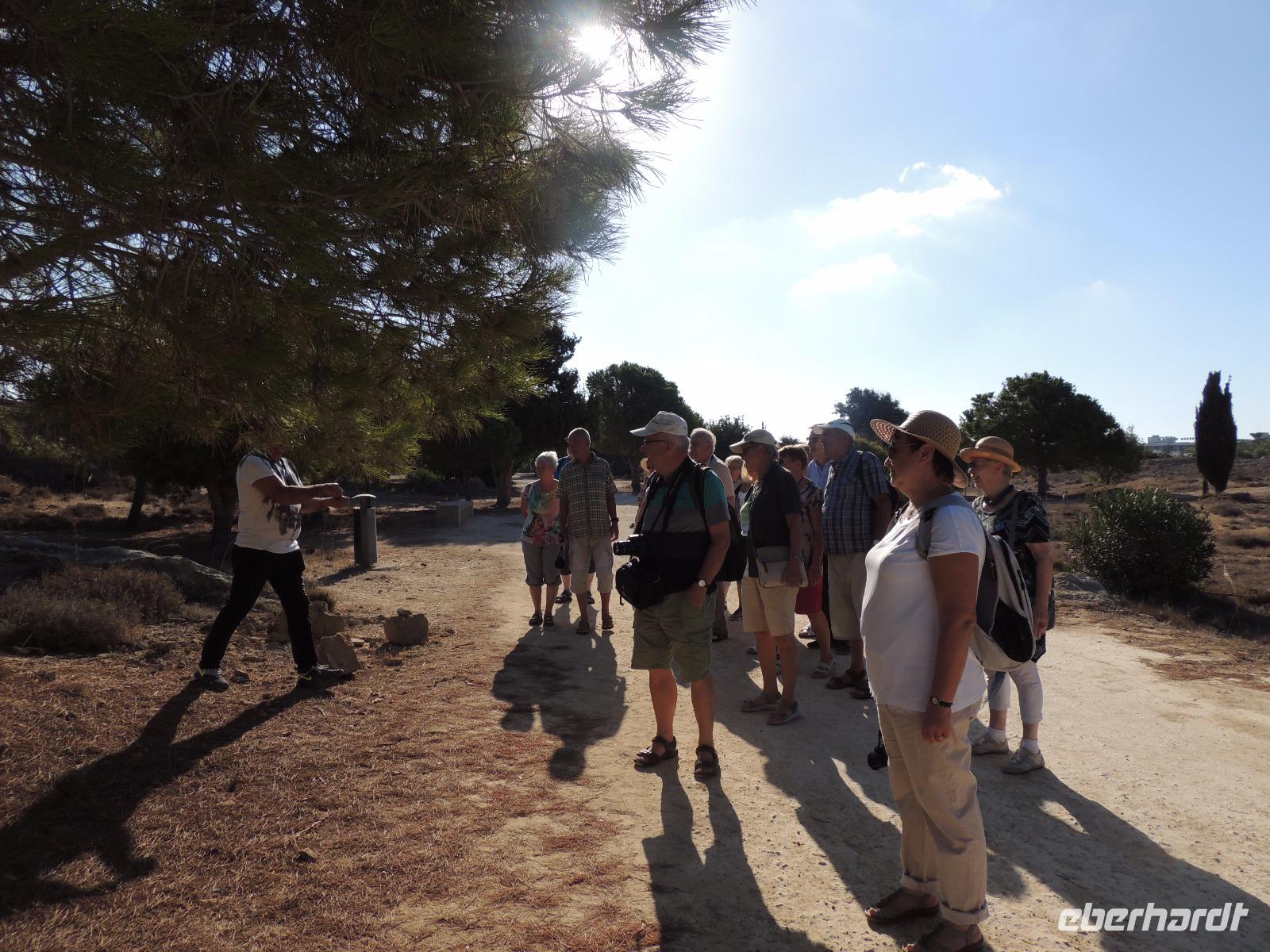 Heute stand der erste richtige Tag auf unserer Rundreise an. Wir trafen auf unseren Reiseleiter Jorgos und starteten die Tagestour, um zunächst die Kulturstadt 2017, Paphos, genauer kennen zu lernen. Wir begannen mit den Königsgräbern, die lange vor Christus entstanden sind. Anschließend besuchten wir das Haus des Dionysos und bewunderten die noch sehr gut erhaltenen Mosaike. Jorgos erzählte uns viel über die Mythologie, das war sehr interessant. Anschließend gab es noch etwas Freizeit, um sich das Gelände, oder auch den Hafen genauer an zu schauen. Wir fuhren nun weiter zum Agios Neophytos Kloster. Der Weg dorthin führte uns über einen Markt, das Treiben und das Angebot waren sehr interessant zu beobachten. Ebenso interessant ist das Leben des Neophytos, über das Jorgos uns berichtete, sowie die Besichtigung des Klosters und die damit verbundene Verehrung des Heiligen. Viele Gläubige küssten den noch recht gut erhaltenen Schädel.