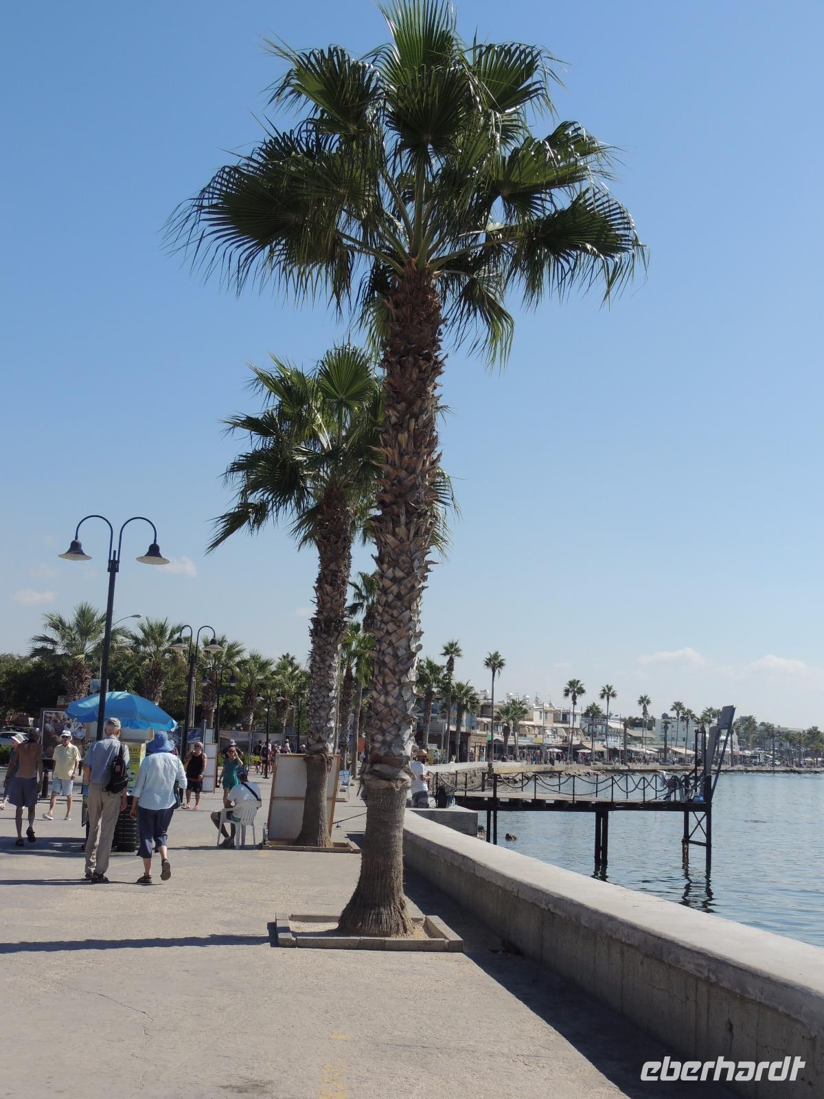 Wir fuhren zunächst nach Larnaca zur Palmenpromenade und machten einen kleinen Stadtrundgang zur Lazarus Kirche. Nachdem wir diese besichtigten, ging es dann für uns weiter zur Moschee Hala Sultan Tekke. Diese besichtigen wir wieder und Jorgos gab Informationen zu den geschichtlichen Hintergründen. Wir stoßen außerdem auf viele Katzen, eine mauzte lautstark und war leider eingesperrt. Wir wollten helfen und Jorgos sagte dem Wächter Bescheid, doch dieser meinte die Katze fällt täglich hinein.