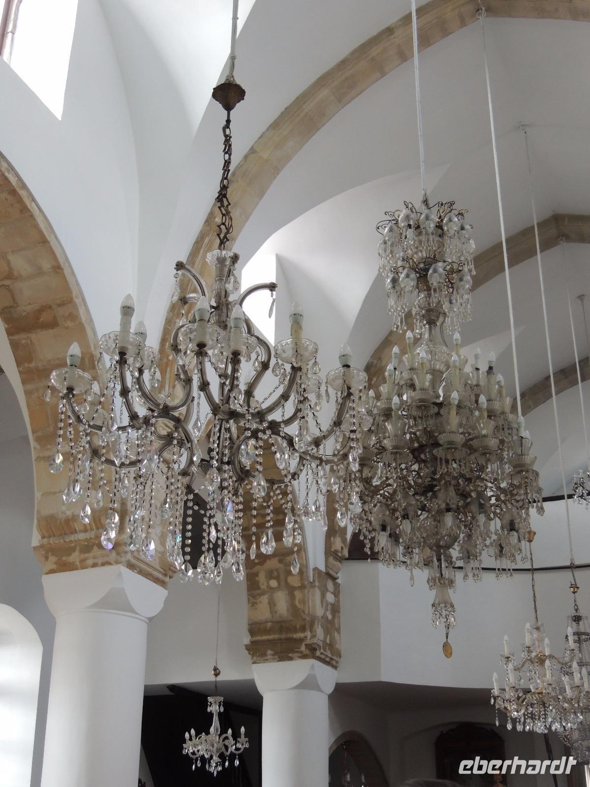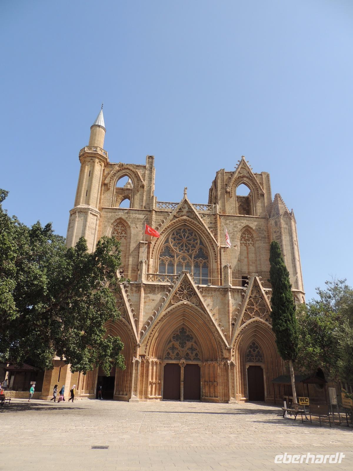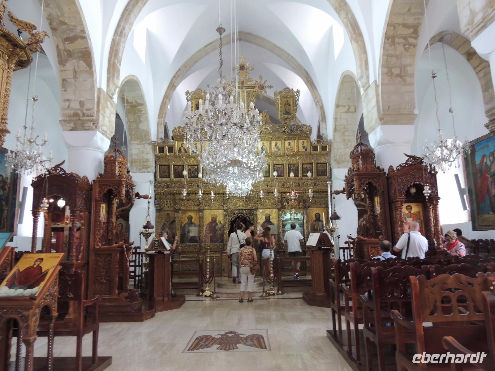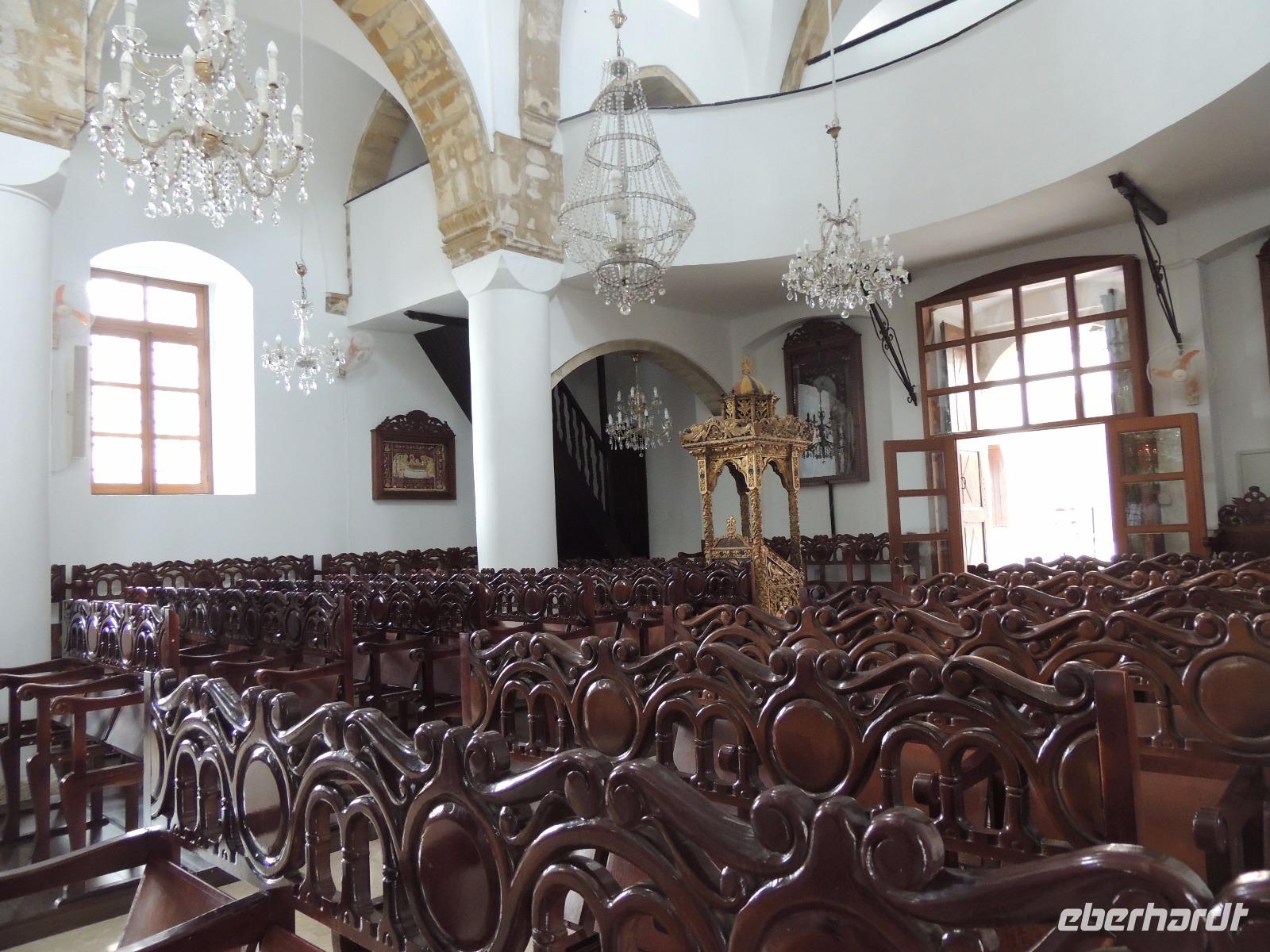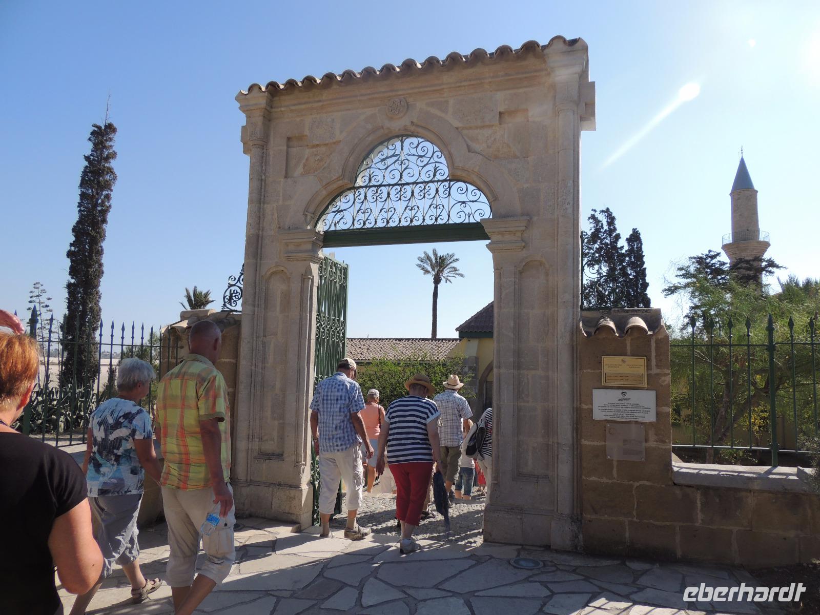 Im Anschluss bestand noch die Möglichkeit, einen frisch gepressten Granatapfelsaft zu trinken. Dieser war sehr lecker. Weiter ging es dann zum Heiligen Barnabas Kloster. Dort betrachteten wir das Grab des Apostels Barnabas, auch durch die Kapelle des Klosters führte uns Jorgos. Das Kloster wurde sogar bis vor kurzem noch genutzt. Anschließend fuhren wir zur Lala-Mustafa-Pasa-Moschee in Famagusta. Diese besichtigen wir ebenfalls mit Jorgos, anschließend war Mittagspause. Viele Gäste entschieden sich dafür, in der Petek Pastahanelerie eine der tollen, typisch türkischen Süßigkeiten und Gebäcke zu probieren, aber auch eine herzhafte Mahlzeit konnte man einnehmen.