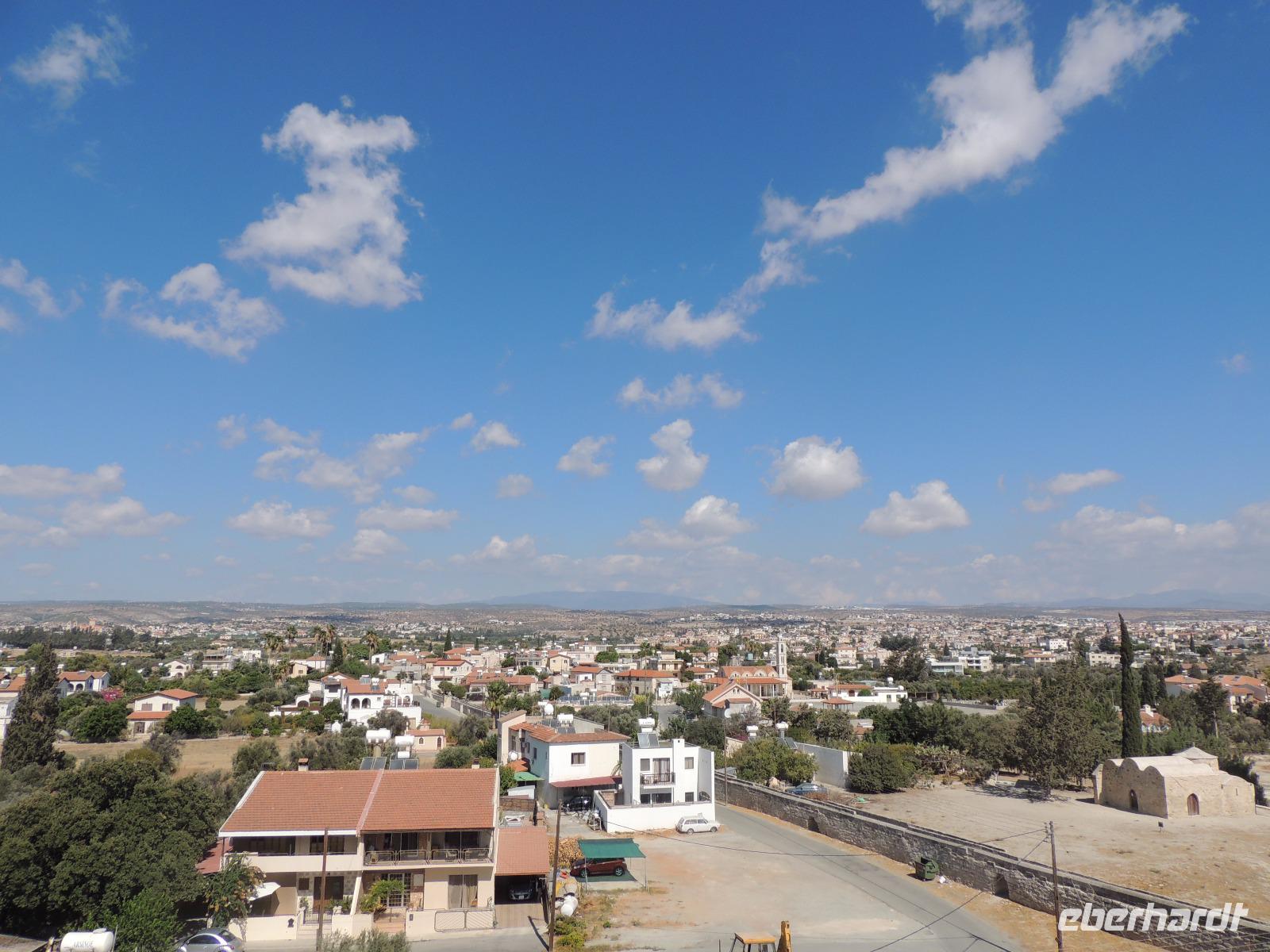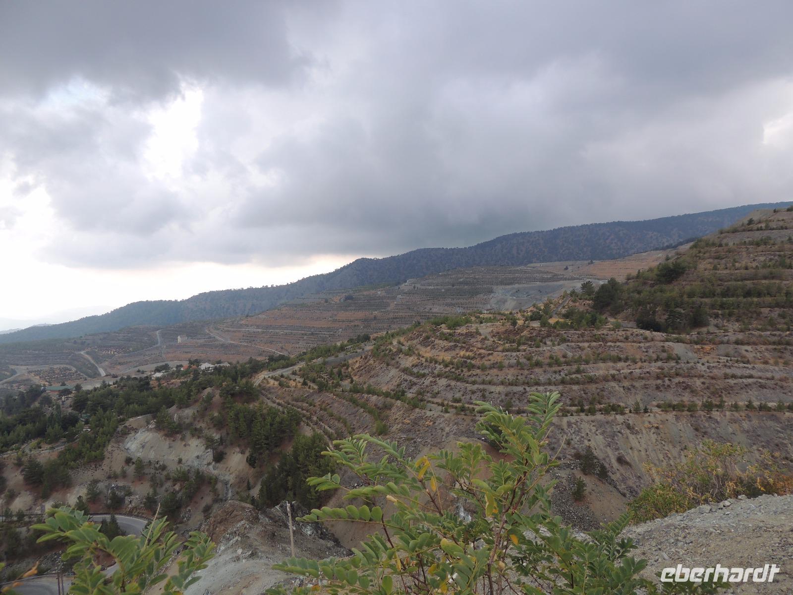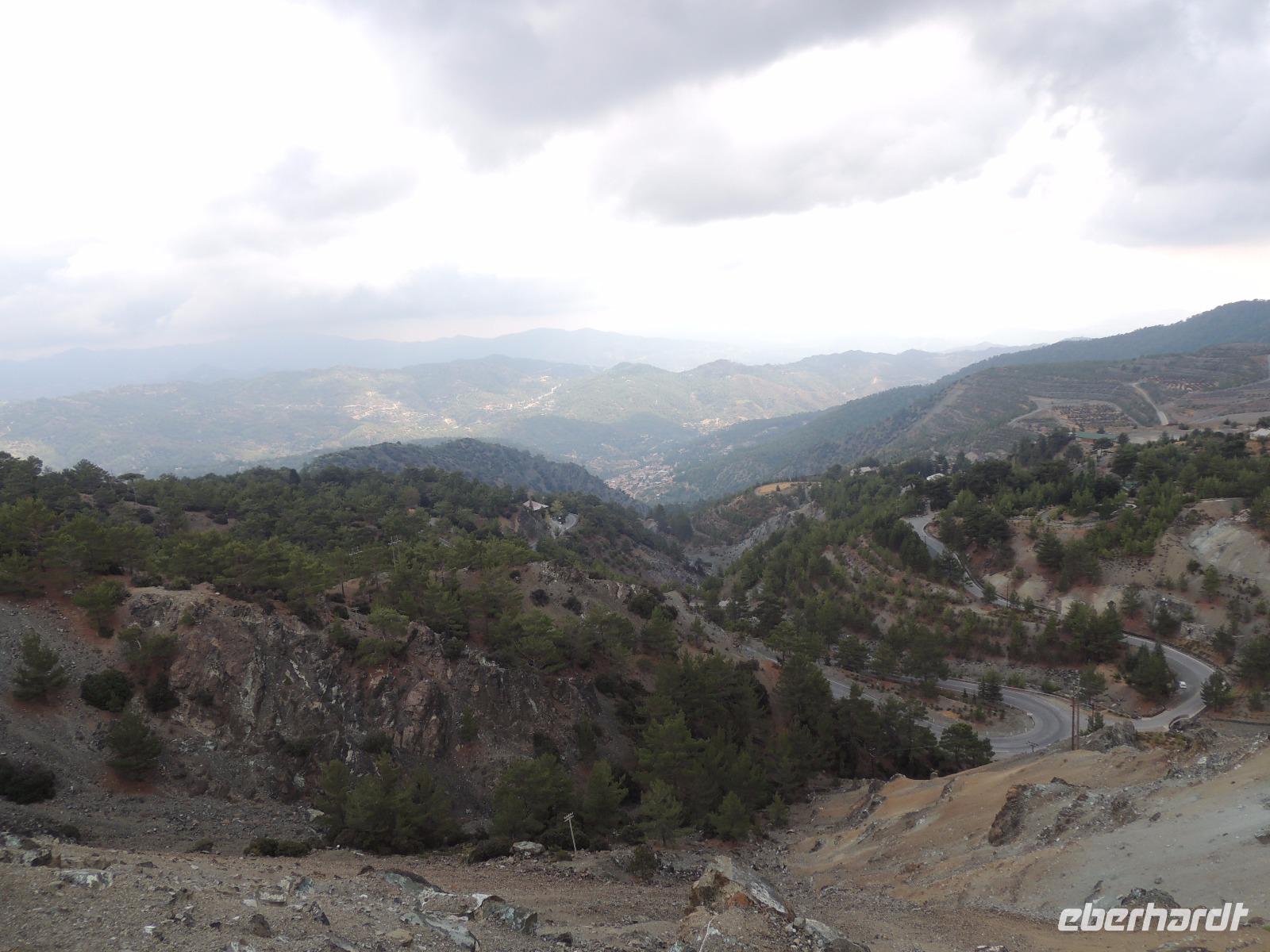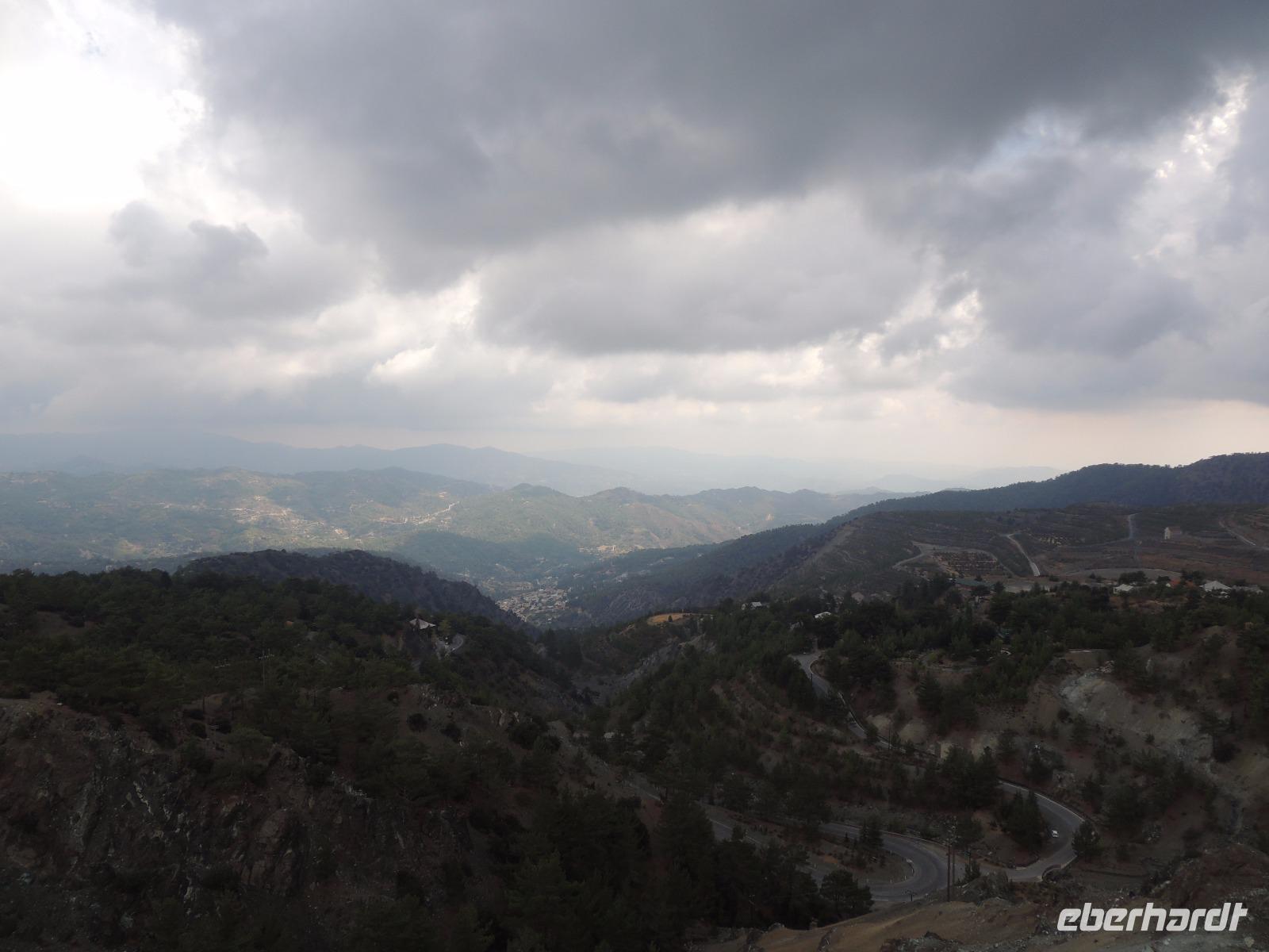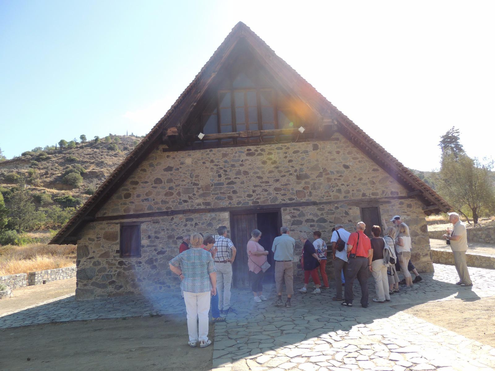 Weiter ging es dann in das Dorf Omodos, wo wir zunächst das ehemalige Kloster Timios Stavros besichtigten und anschließend auch eine alte Weinpresse. Dann hatten wir noch etwas Zeit zur freien Verfügung. Unser nächstes Ziel war dann die Aussichtsplattform nahe des Olymps im Troodosgebirge. Es war Zeit für einen Mittagssnack in einem der typischen, kleinen Restaurants, um den Ausblick zu genießen oder einfach etwas durch die kleinen Geschäfte zu schlendern. Auf dem Weg zu unserem neuen Hotel machten wir noch einen Fotostopp, um den einzigartigen Blick über das Gebirge fest zu halten. Nachdem wir mit frisch gepressten Apfelsaft, Kaffee und Kuchen empfangen wurden, bezog jeder erst einmal sein Zimmer. Zum Baden im Pool war es leider nicht mehr warm genug, da es sich ziemlich zugezogen hatte und nur noch circa 20 Grad herrschten.