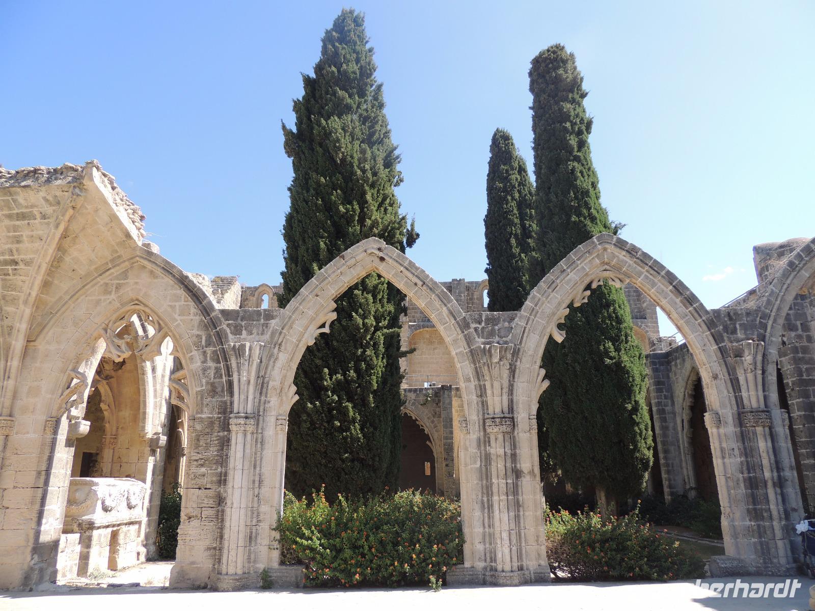 Wir fuhren nach Bellapais und besichtigten das Schloss. Von dort aus hatten wir einen wunderbaren Blick auf das Meer. In einem Restaurant verbrachten wir die Mittagspause.