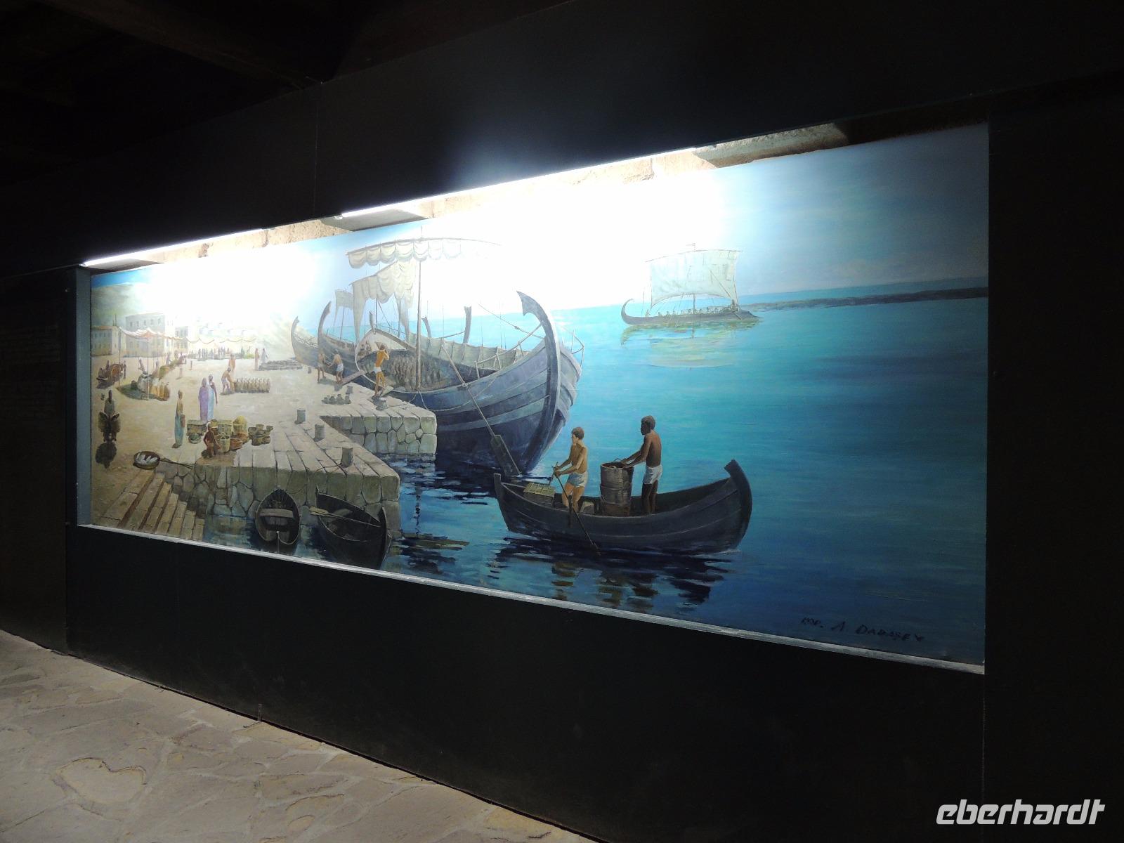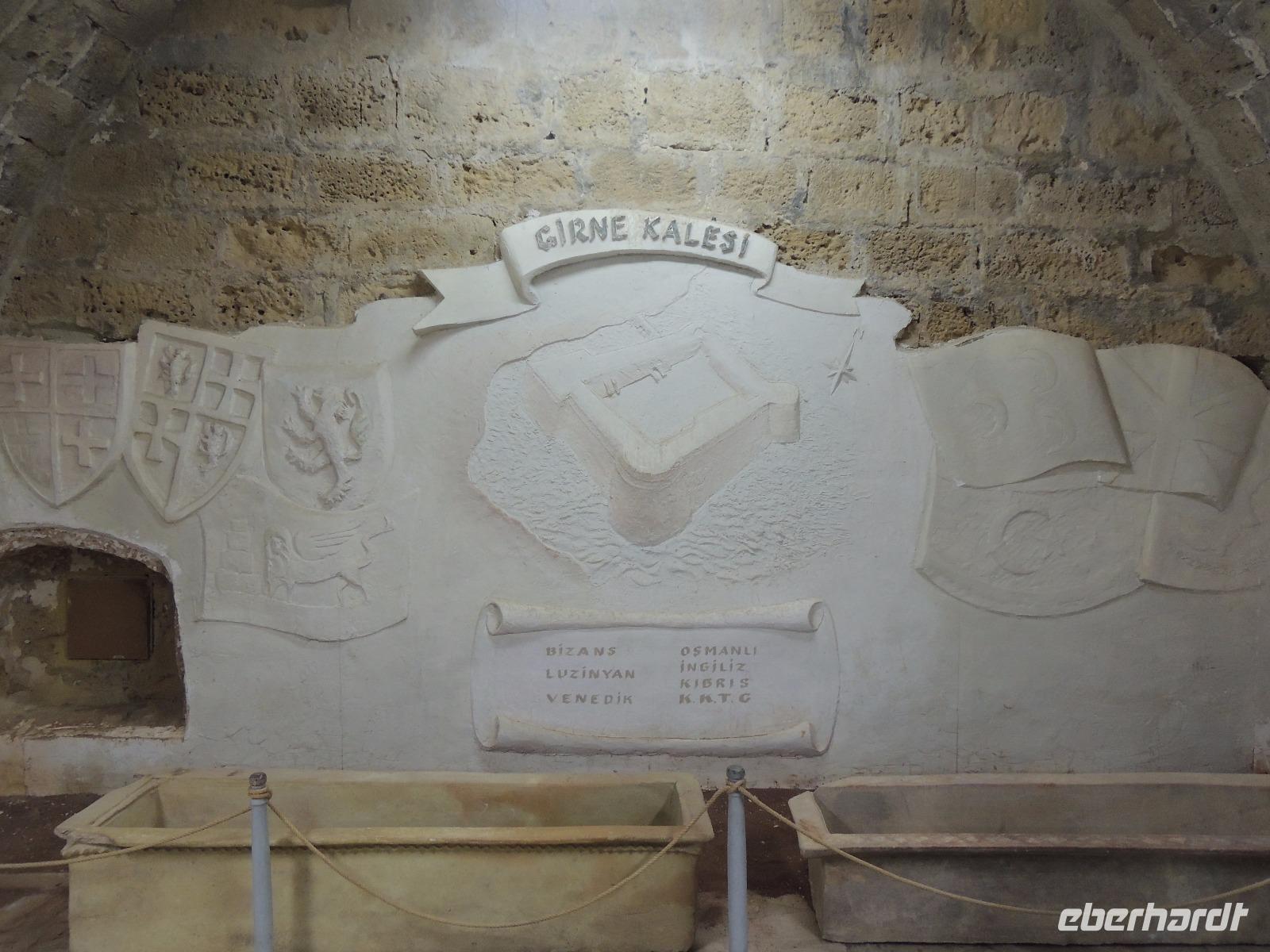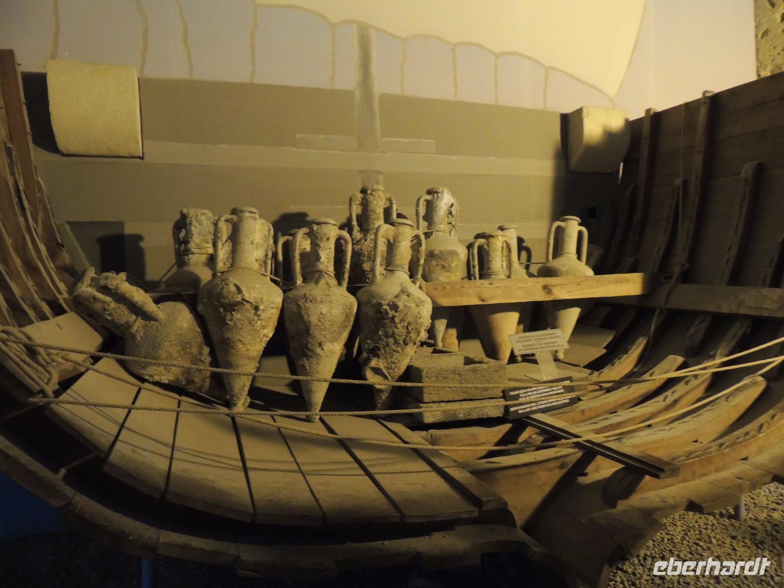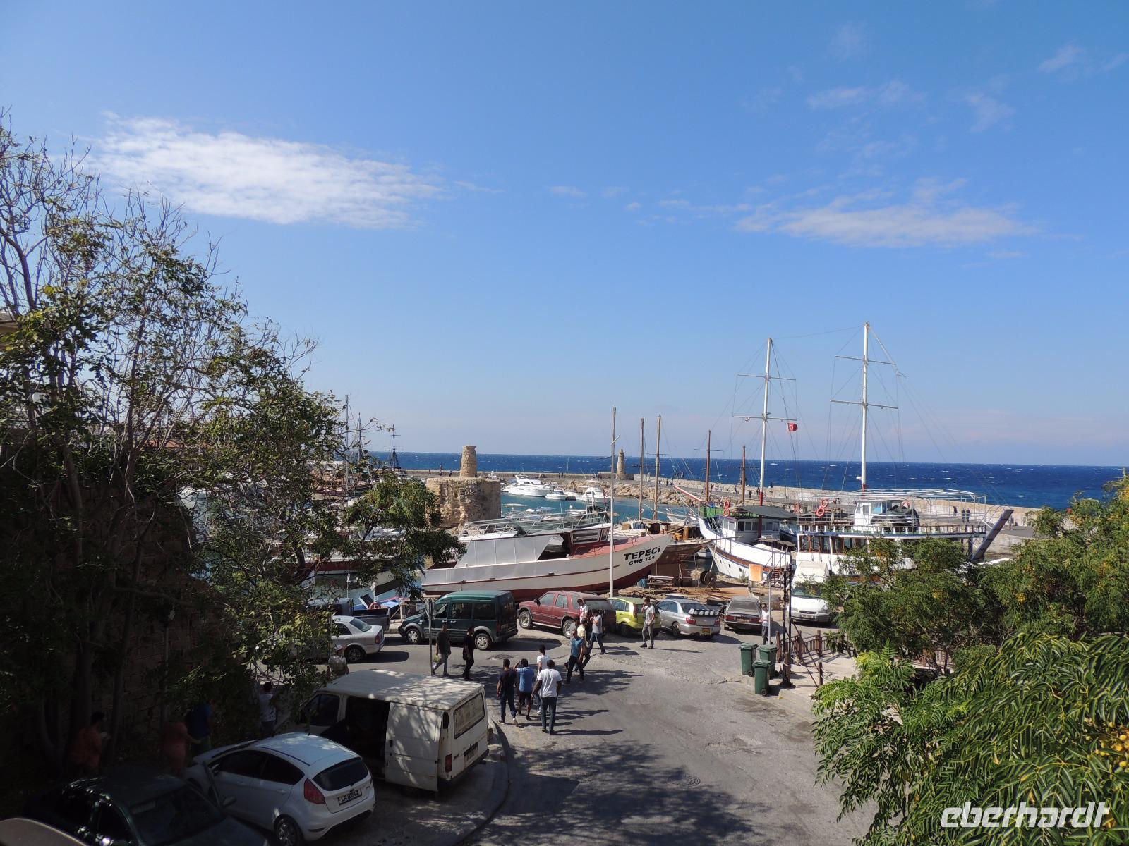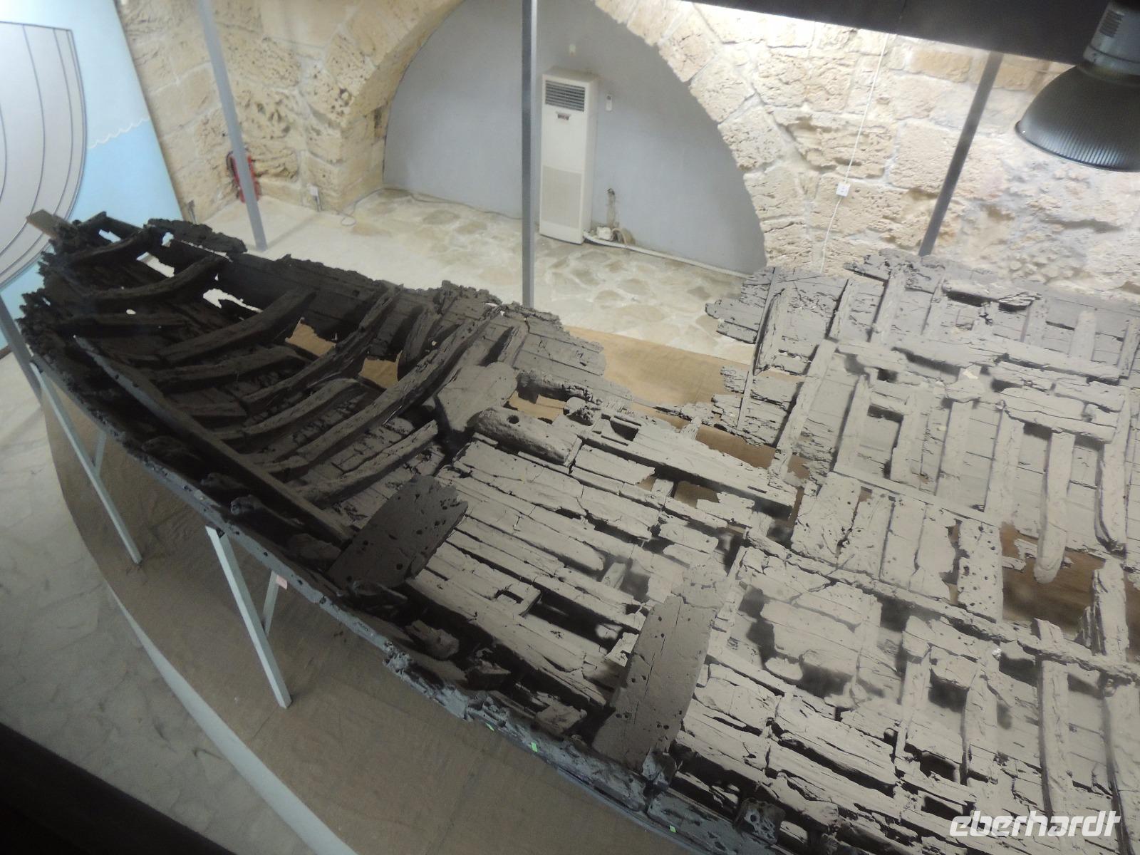 Weiter ging es dann weiter nach unten nach Kerynia zur Burg. Auch diese besichtigten wir mit Jorgos. Es war ein altes geborgenes Schiff zu sehen. Begleitet wurden wir einen Großteil von freilaufenden Hunden, die sich immer wieder an uns vorbei schlängelten.