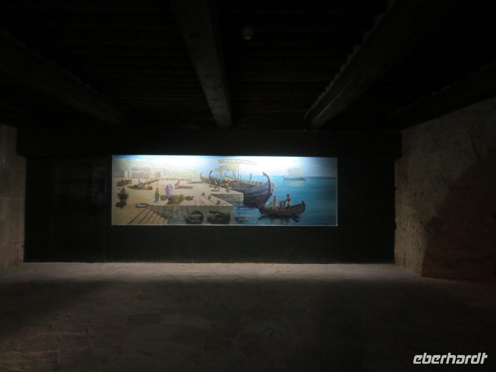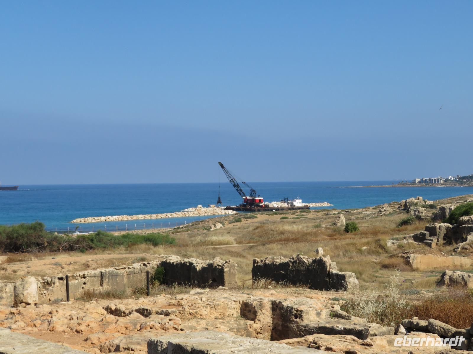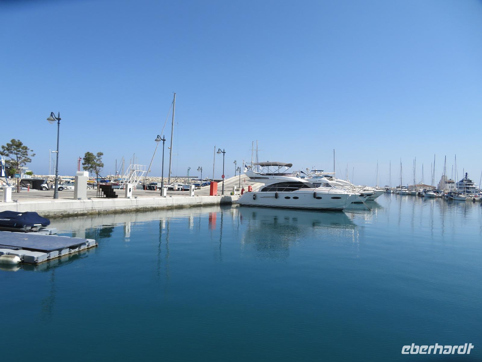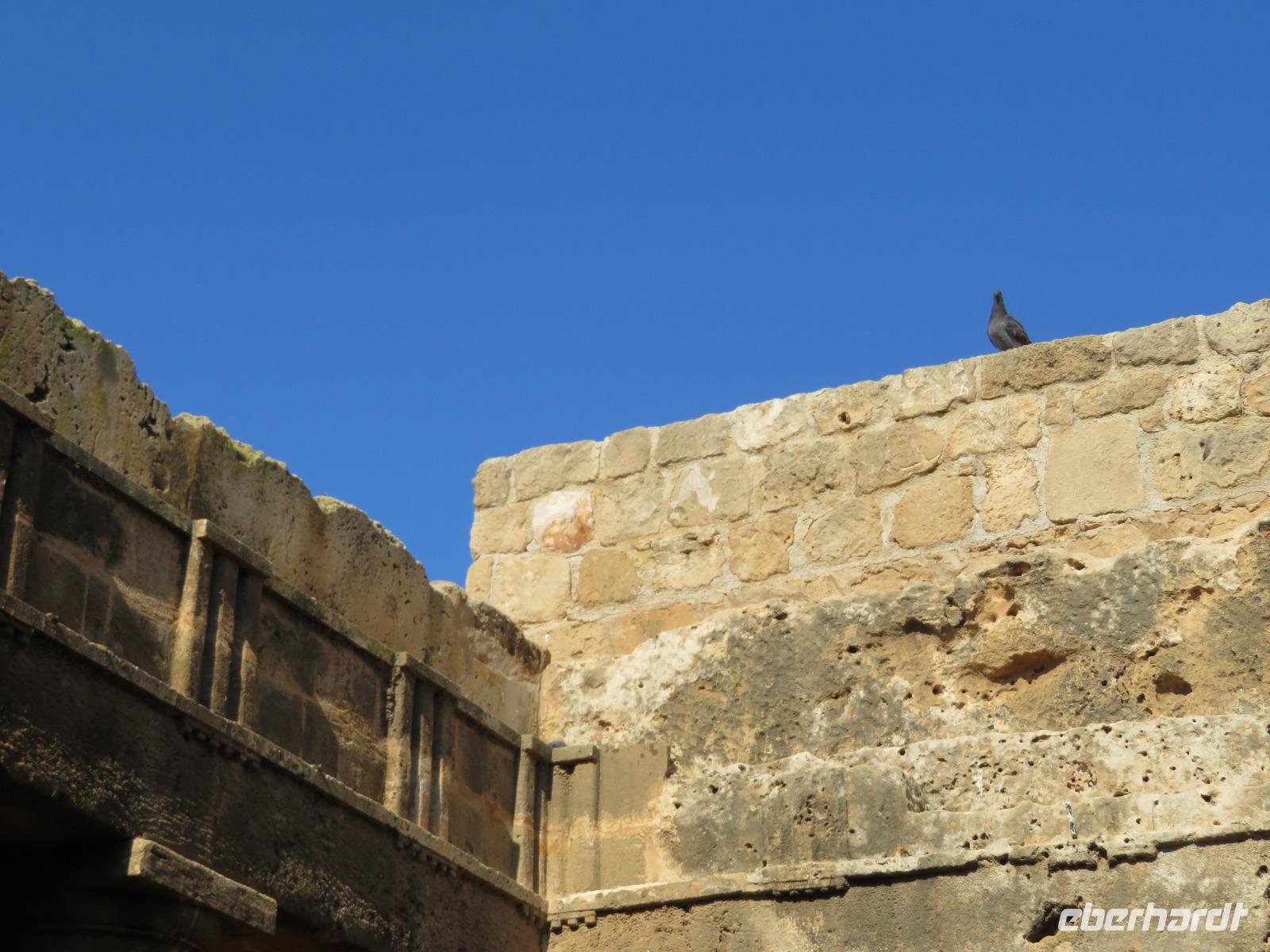 Am Morgen werden wir bereits von der Sonne geweckt, es scheint ein schöner Tag zu werden. Auf dem Weg zur Ausgrabungsstätte von Kourion legten wir einen Fotostopp an einem Parkplatz mit Blick auf den Felsen der Aphrodite ein. Legenden zufolge die Liebesgöttin Aphrodite hier geboren worden sein. Es gibt noch mehr Gerüchte, die sich um den Felsen ranken. Angeblich soll man 10 Jahre jünger werden, wenn man hier im Meer badet und mit dem Strom schwimmt. Doch diese Theorie können wir leider nicht testen und so fahren wir weiter nach Kourion. Zunächst besuchen wir den Teil der Ausgrabungsstätte mit dem so genannte Erdbebenhaus. Antonis erklärt anhand der Ruinen und einer Zeichnung, wie die antiken Städte damals aufgebaut waren. Auch einige Wörter, die wir heute in unserem Sprachgebrauch benutzen haben, in der damaligen Zeit. Wie zum Beispiel, dass die Städte in Viertel aufgeteilt sind. Die Römer hatten immer zwei Hauptstraßen, die sich in der Mitte kreuzten. Die Wohngebiete waren in den Bereichen um die beiden Hauptstraßen aufgeteilt. Da es immer vier Teile waren, ergab sich der Name Viertel. Unser Rundgang führt uns weiter, wir können die Umrisse einer frühchristlichen Basilika erkennen und die Überreste der Agora. Am beeindruckensten ist aber das Amphietheater von Kourion. Dieses wurde vom Erdbeben im Jahr 365 n. Chr. zerstört, aber heute ist es komplett restauriert und wird auch wieder für Veranstaltungen genutzt. Eine traumhafte Kulisse. Auch die Villa des Eustolios ist sehenswert in der sich zum Teil gut erhaltene Bodenmosaike befinden. Gestärkt begeben wir uns auf Erkundungstour der Johanniterburg, ein Zeugnis des Mittelalters. Nun ist es Zeit für das Mittagessen, welches wir uns wohlverdient haben. Wir lernen das zypriotische Meze-Essen kennen. Nur heute besteht es aus den unterschiedlichsten Fisch-Gerichten. Von Calamari, über Muscheln, Garnelen, Schwertfischsteak und vielem mehr können wir kosten. Alle sind begeistert. Ein Verdauungsspaziergang ist genau das Richtige nach so einem Festmahl und so schlendern wir im Anschluss durch die Straßen von Limassol bis zum neuen Hafen. Nachdem wir wieder im Hotel angekommen sind, bleibt etwas Zeit um einmal die Temperatur des Meerwassers zu testen, bevor wir uns zum Abendessen treffen, das heute etwas kleiner ausfällt.