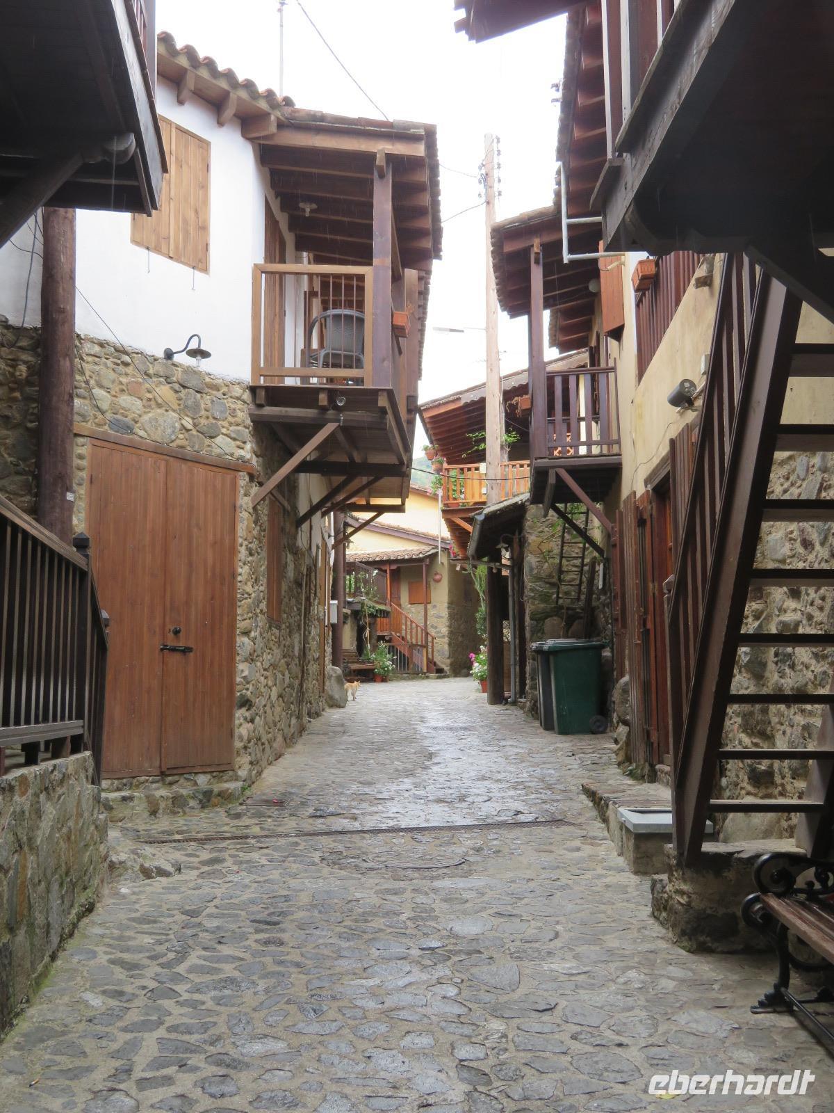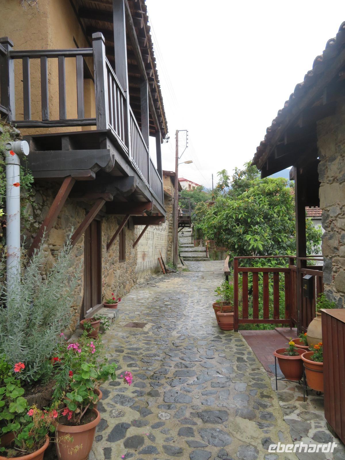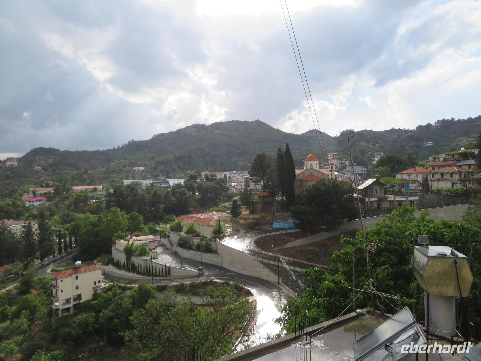 Heute wandeln wir auf den Spuren des Bischofs Makarios III., der auch gleichzeitig bis zum Jahre 1977 Präsident der Republik Zypern war. Wir fahren zu seiner letzten Ruhestätte, die kaum zu übersehen ist durch die monumentale Bronzestatue, ein Abbild des geistlichen Oberhaupt. Der Weg zum Grabmahl ist mit Marmorplatten ausgelegt, man mag sich kaum vorstellen, was die Anlage gekostet haben muss. Und gleichzeitig bekommt man eine Vorstellung davon, wie er, auch jetzt noch, von den Zyprioten verehrt wird. Ebenso prachtvoll und als eine Pilgerstätte für Gläubige gilt das Kykkos-Kloster, die sich etwa 2km entfernt von der Grabstelle befindet. Wir durchwandern die Gänge des Klosters die mit bunten Mosaiken und Fresken gestaltet ist. Antonis überzeugt uns durch sein Wissen über die Bibelfiguren und erklärt uns nahezu jede Wandmalerei. Nun erreichen wir das Herzstück des Klosters, der Grund, dass so viele Zyprioten zum Kloster pilgern: die Marienikone. Angeblich soll diese für zahlreiche Wunder verantwortlich sein. Vor allem soll sie der trockenen Region zu Regen verhelfen. Und das ist an diesem Tag tatsächlich der Fall, es regnet, zumindest ein wenig. Für die Zyprioten ist ein Regentag ein guter Tag. Auf der Insel herrscht Wassermangel, was ein großes Problem darstellt. Jeder Tropfen ist kostbar. Es gibt zwar Wasserentsalzungsanlagen um der größten Trockenheit entgegen zu wirken, aber Antonis sieht auch die späteren Folgen dieser, welche mit dem Anstieg des Salzgehaltes des Meeres zusammenhängt. Durch den Regen entscheiden wir uns zunächst die byzantinische Kirche Agios Nikolaos tis Stegis. Die zunächst unscheinbar wirkende Kirche verbirgt gut erhaltene Wandmalereien aus dem 11. bis 17. Jahrhundert und steht seit 1985 auf der Liste des UNESCO Weltkulturerbes. Unser Weg führt uns weiter durch das bezaubernde Dorf Kakopetria. Der alte Teil des Dorfes ist noch sehr ursprünglich und das haben sich viele Bewohner zu nutze gemacht und bieten Hotelbetten an oder haben ein Restaurant eröffnet. Zum Mittag kehren wir in eines dieser Restaurants ein, die auch fangfrische Forellen aus der Region anbieten. Und ich habe noch etwas an diesem Tag gelernt: man sollte Antonis nie trauen, wenn er etwas "Kleines" für einen bestellt ;) Wir besichtigen noch die Kirche der Panagia tis Podithou. Bei dieser erkennt man deutlich, wie die Kirchen Ihren Namen Scheunendachkirchen erhalten haben. Auf den ersten Blick und auch auf den letzten Blick könnte es eine Scheune sein. Dafür ist das Innere widerum bunt geschmückt. Wir beschließen, dass wir fast schon Kunstkenner sind und deshalb die letzte Kirche auslassen können. Zurück im Hotel bleibt uns etwas Zeit zur Erholung und am Abend sind wir wieder auswärts essen. Langsam kennen wir das Prinzip des Meze Essens und probieren nur in kleinen Mengen. Dafür gibt es umso mehr Wein.