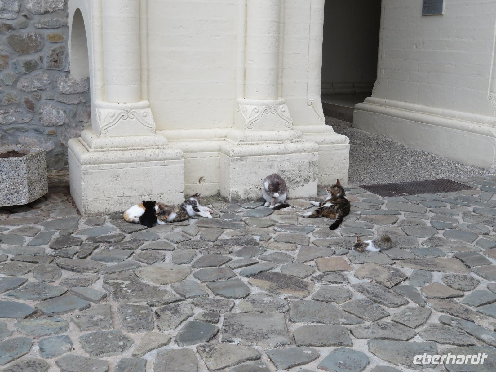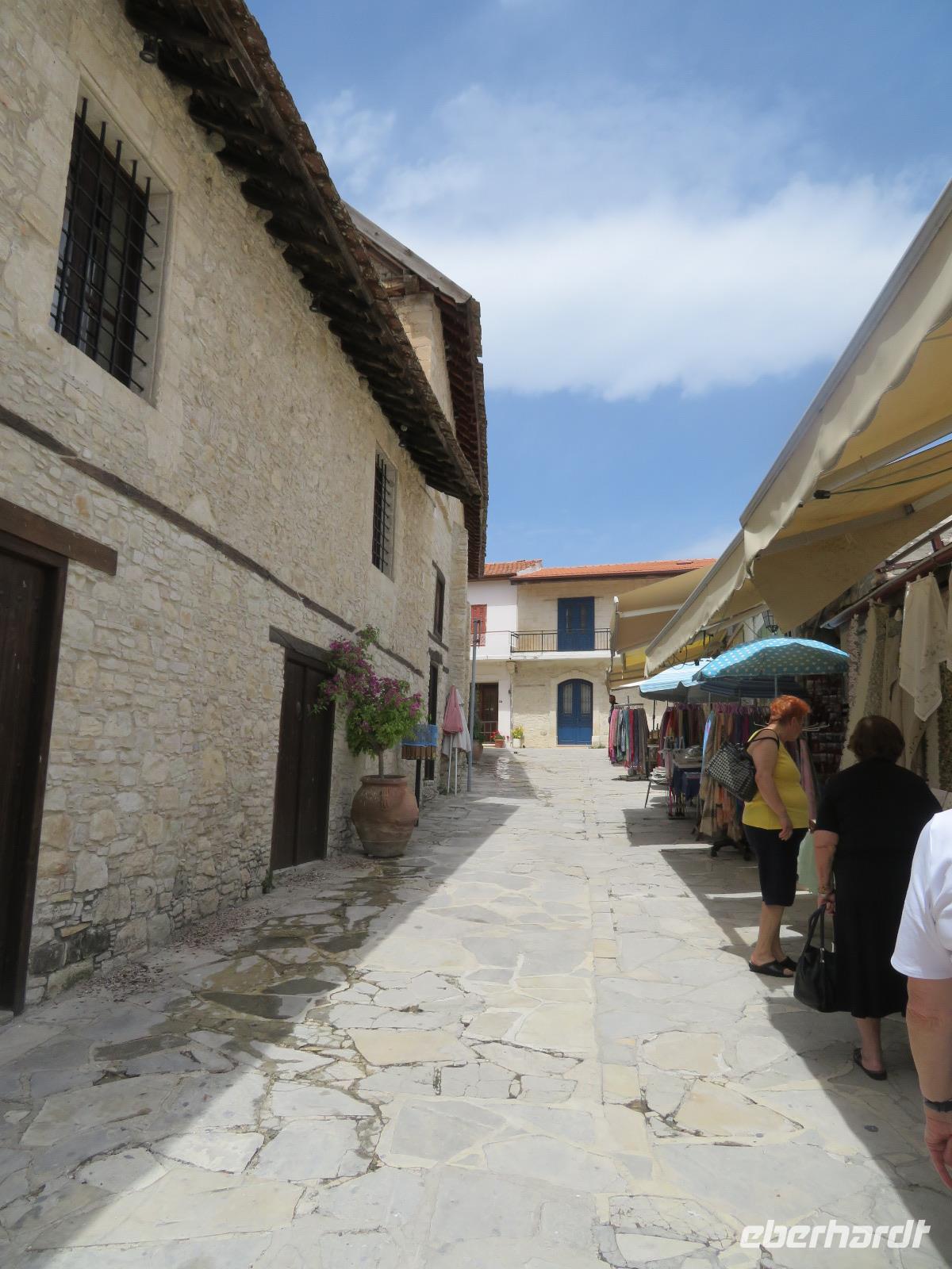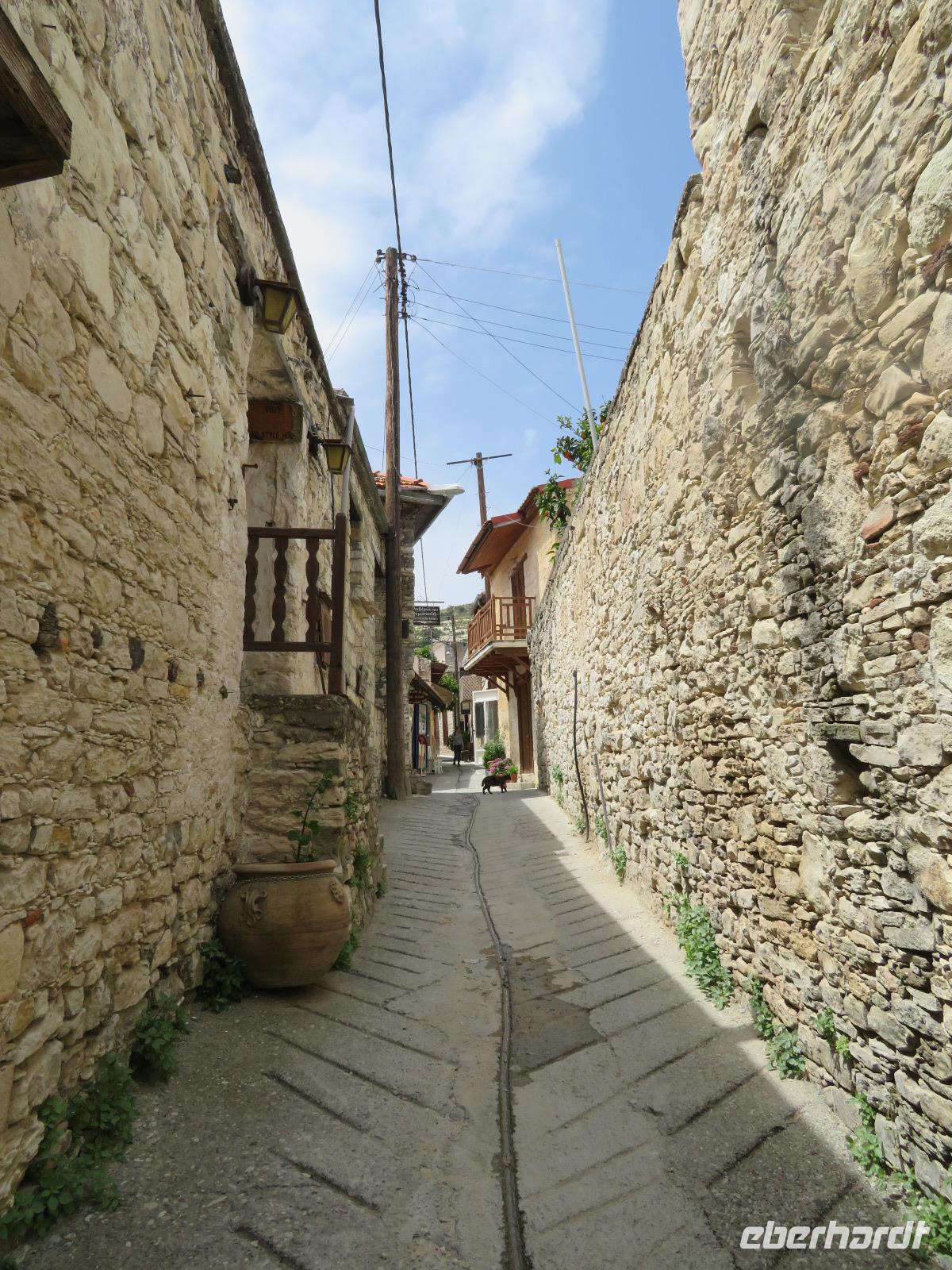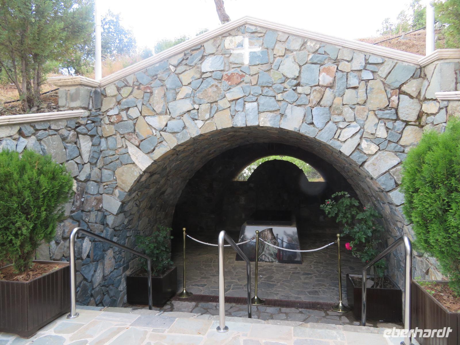 Heute wandeln wir auf den Spuren des Bischofs Makarios III., der auch gleichzeitig bis zum Jahre 1977 Präsident der Republik Zypern war. Wir fahren zu seiner letzten Ruhestätte, die kaum zu übersehen ist durch die monumentale Bronzestatue, ein Abbild des geistlichen Oberhaupt. Der Weg zum Grabmahl ist mit Marmorplatten ausgelegt, man mag sich kaum vorstellen, was die Anlage gekostet haben muss. Und gleichzeitig bekommt man eine Vorstellung davon, wie er, auch jetzt noch, von den Zyprioten verehrt wird. Ebenso prachtvoll und als eine Pilgerstätte für Gläubige gilt das Kykkos-Kloster, die sich etwa 2km entfernt von der Grabstelle befindet. Wir durchwandern die Gänge des Klosters die mit bunten Mosaiken und Fresken gestaltet ist. Antonis überzeugt uns durch sein Wissen über die Bibelfiguren und erklärt uns nahezu jede Wandmalerei. Nun erreichen wir das Herzstück des Klosters, der Grund, dass so viele Zyprioten zum Kloster pilgern: die Marienikone. Angeblich soll diese für zahlreiche Wunder verantwortlich sein. Vor allem soll sie der trockenen Region zu Regen verhelfen. Und das ist an diesem Tag tatsächlich der Fall, es regnet, zumindest ein wenig. Für die Zyprioten ist ein Regentag ein guter Tag. Auf der Insel herrscht Wassermangel, was ein großes Problem darstellt. Jeder Tropfen ist kostbar. Es gibt zwar Wasserentsalzungsanlagen um der größten Trockenheit entgegen zu wirken, aber Antonis sieht auch die späteren Folgen dieser, welche mit dem Anstieg des Salzgehaltes des Meeres zusammenhängt. Durch den Regen entscheiden wir uns zunächst die byzantinische Kirche Agios Nikolaos tis Stegis. Die zunächst unscheinbar wirkende Kirche verbirgt gut erhaltene Wandmalereien aus dem 11. bis 17. Jahrhundert und steht seit 1985 auf der Liste des UNESCO Weltkulturerbes. Unser Weg führt uns weiter durch das bezaubernde Dorf Kakopetria. Der alte Teil des Dorfes ist noch sehr ursprünglich und das haben sich viele Bewohner zu nutze gemacht und bieten Hotelbetten an oder haben ein Restaurant eröffnet. Zum Mittag kehren wir in eines dieser Restaurants ein, die auch fangfrische Forellen aus der Region anbieten. Und ich habe noch etwas an diesem Tag gelernt: man sollte Antonis nie trauen, wenn er etwas "Kleines" für einen bestellt ;) Wir besichtigen noch die Kirche der Panagia tis Podithou. Bei dieser erkennt man deutlich, wie die Kirchen Ihren Namen Scheunendachkirchen erhalten haben. Auf den ersten Blick und auch auf den letzten Blick könnte es eine Scheune sein. Dafür ist das Innere widerum bunt geschmückt. Wir beschließen, dass wir fast schon Kunstkenner sind und deshalb die letzte Kirche auslassen können. Zurück im Hotel bleibt uns etwas Zeit zur Erholung und am Abend sind wir wieder auswärts essen. Langsam kennen wir das Prinzip des Meze Essens und probieren nur in kleinen Mengen. Dafür gibt es umso mehr Wein.