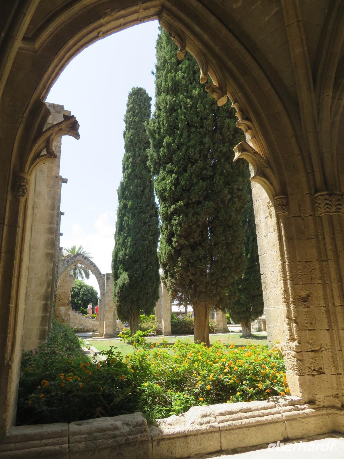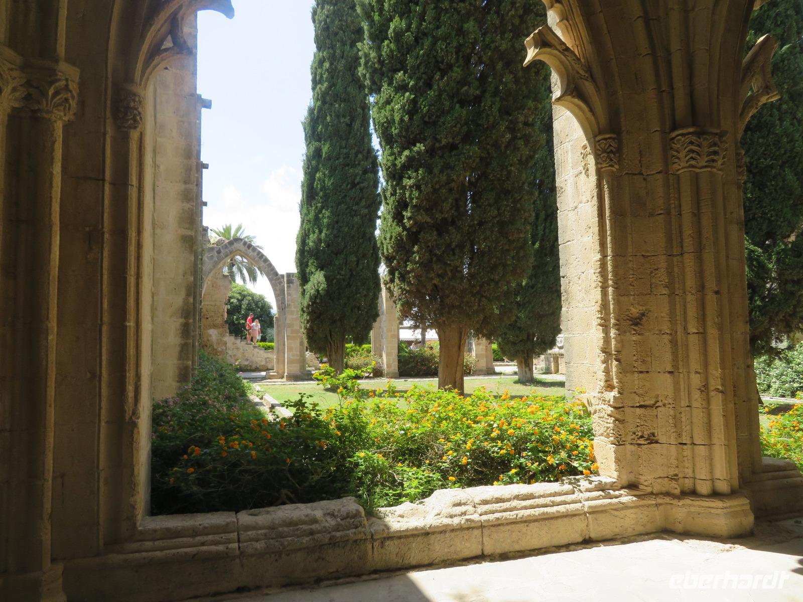 Bisher waren wir nur in Südzypern unterwegs, das bedeutet im griechischen Teil des Landes. Denn seit dem 20. Juli 1974 ist der Norden Zyperns von den Türken besetzt. Und erst seit 2003 darf die Grenze wieder überquert werden. Es gab schon Wiedervereinigungsversuche, die leider bisher gescheitert sind. Und es sieht auch nicht so aus, als würde das sich in Zukunft ändern. Antonis erzählt, was die Teilung für die Bewohner der Insel bedeutete. Sein Haus steht auf der Nordseite der Insel. Er musste damals sein Haus verlassen und fliehen. Das alles erzählt uns Antonis während der Fahrt in die letzte geteilte Stadt Europas. In Nikosia angekommen spazieren wir zunächst durch den griechischen Teil der Stadt. Für die Überquerung der Grenze brauchen wir unseren Ausweis. Im türkischen Teil angekommen, können wir aber nicht sofort weiter unserer Wege gehen. Wir müssen erst auf eine Begleitung aus dem Nordteil von Zypern warten. So lauten die Vorschriften. Als diese eintrifft setzen wir unseren Rundgang durch die Stadt fort. Zunächst betreten wir die ehemalige Sophienkathedrale, heute bekannt als Selimiye-Moschee. Dass die Moschee nicht immer dafür ausgelegt war erkennt man an dem schräg eingebauten Gebetsraum, der nachträglich eingebaut wurde um nach Mekka beten zu können. Anschließend besichtigen wir die alte Karawanserei Büyük Han. Früher wurden hier die Kamele untergebracht, heute befinden sich hier Cafés und Shops, die Kunsthandwerk verkaufen. Wir verlassen die Stadt, doch noch nicht den türkischen Teil der Insel. Wir besuchen die Stadt Bellapais mit dem gleichnamigen Kloster und erleben live und hautnah eine Geigenprobe und sind sozusagen Gäste einer Hochzeit ;) Der Tag wird abgerundet durch den Besuch in der Hafenstadt Kyrenia und der dort ansässigen Burg.