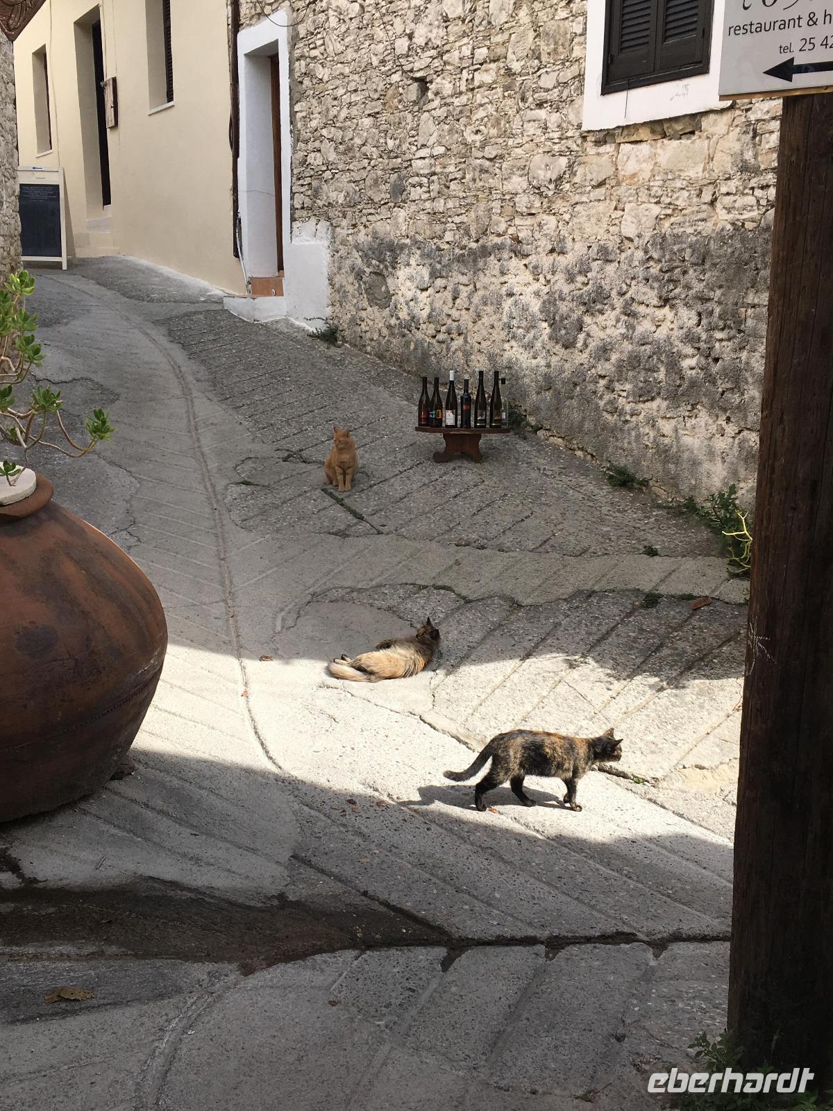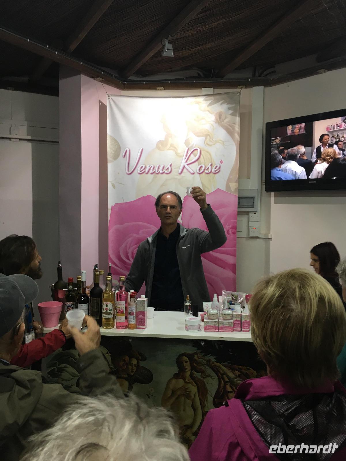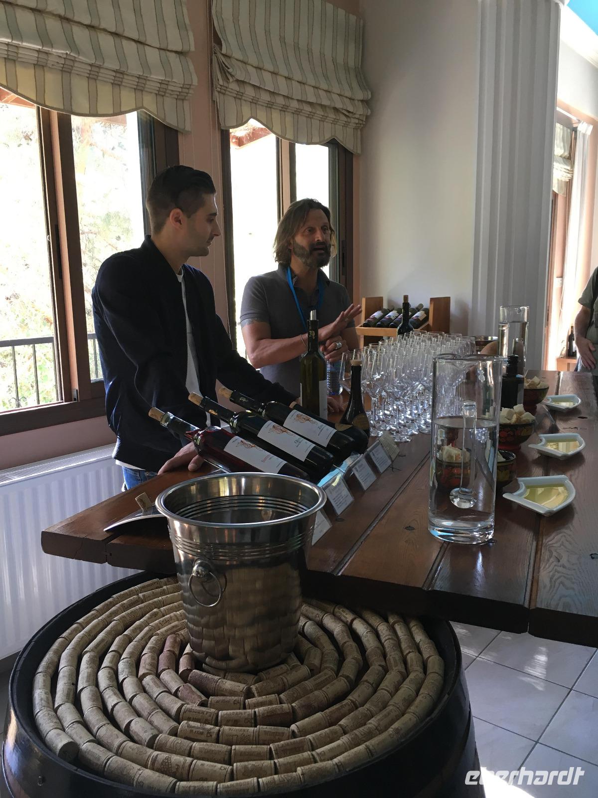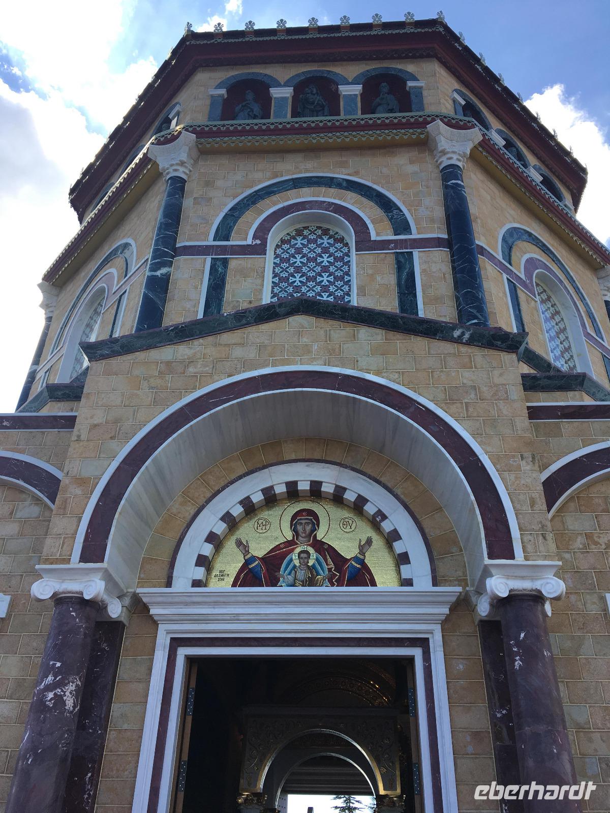 Bereits 8 Uhr trafen wir uns gemeinsam am Bus um die Fahrt in das Gebirge von Zypern zu starten. Zunächst gelangten wir in das Dorf Omodhos. Dieses lag in mitten eines Weingebietes und begeisterte durch die malerischen Gassen. Dort besuchten wir das ehemalige Kloster am Hauptplatz, namens Timios Stavros. Unweit davon entfernt befindet die sich auch noch heute genutzte Weinpresse aus dem 19. Jahrhundert. Zunächst verschafften wir uns dort einen Eindruck der Herstellung verschiedenster Weinprodukte, bevor es im Anschluss an die Dorfbesichtigung und Freizeit zu dem Weingut „Gerolemos" ging. Ein rumänischer Mitarbeiter erzählte uns bei der Verkostung 5 verschiedener Weine die unterschiedlichen Herstellungsmethoden. Am frühen Nachmittag erreichten wir unser zweites Hotel für diese Reise im Toodosgebirge. Nach einem schnellen Check in und einem Rosenwasser zur Begrüßung nutzen wir alle die Zeit bis zum Nachmittag für eine Verschnaufpause. Pünktlich 16 Uhr trafen wir uns in der Hotel Lobby um unser heutiges Programm fort zu setzen. Das Wetter war leider nicht auf unsere Seite und die dunklen Wolken zogen sich immer mehr zu. Deshalb entschieden wir uns kurzer Hand den Bus bis ins Dorf zu nehmen. Unsere Fahrer Kyriakos brachte uns direkt vor den Eingang der Süßwarenmanufaktur. Dort angekommen mussten wir einen kleinen Augenblick warten, da die zweite Eberhardt Wandergruppe vor uns war. Die Familie des Hauses begrüßte uns herzlich und führte durch die Küchen im Erdgeschoss. Natürlich durften wir im Anschluss daran die Leckereien verkosten und der ein oder andere nahm sich eine Süßigkeit für Zuhause mit. Weiter ging es zu Fuß zur Rosenmanufaktur. Auch dort wurde uns die Herstellung der verschiedenen Produkte durch einen sehr engagierten Besitzer vorgestellt. Die Frauen ließen sich von den Düften verwöhnen, während die meisten Männer vor dem Gebäude warteten. Gut duftend setzten wir unseren Spaziergang durch das Dorf Agros fort und nach ca. 20 Minuten erreichten wir die Taverne von Nikos. Bei einem leckeren Meze Essen und viel Wein ließen wir den ersten Abend im Gebirge ausklingen. Als Highlight überraschte uns Reisebegleiterin Laura für die Rückfahrt noch mit einer Fahrt in einem Oldtimer Beford Bus.