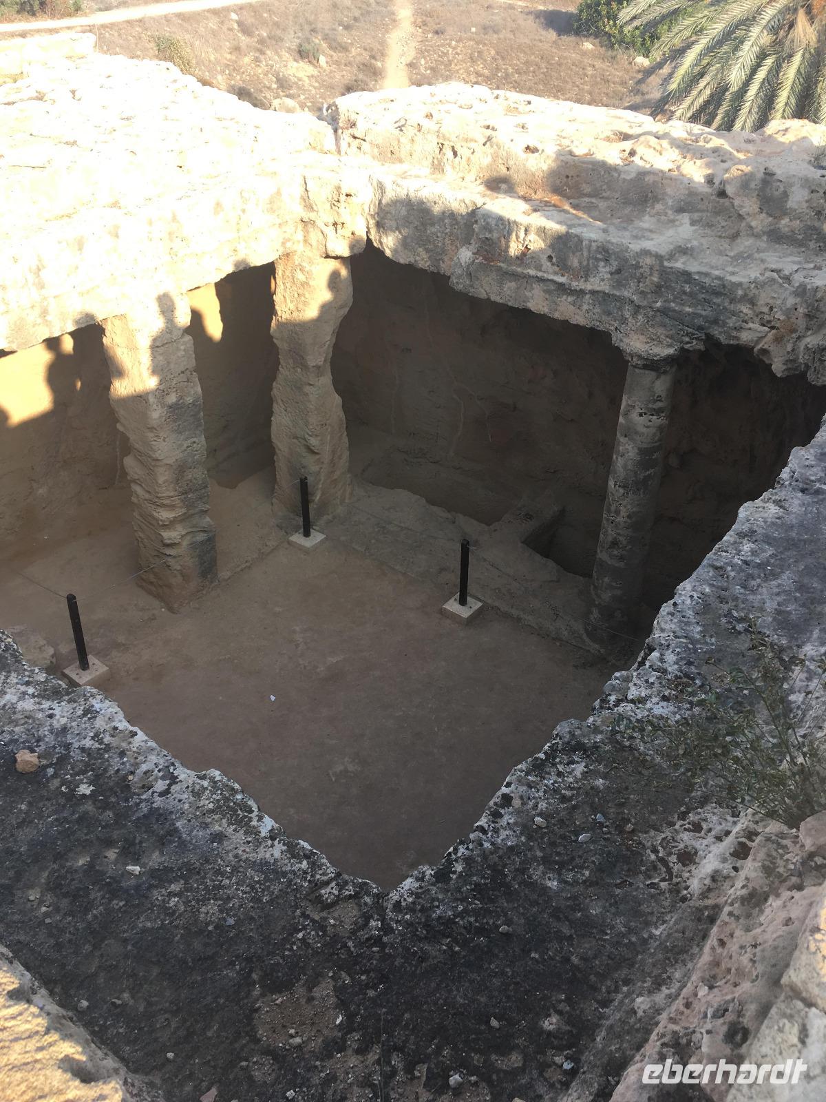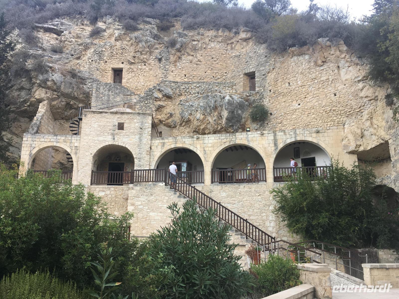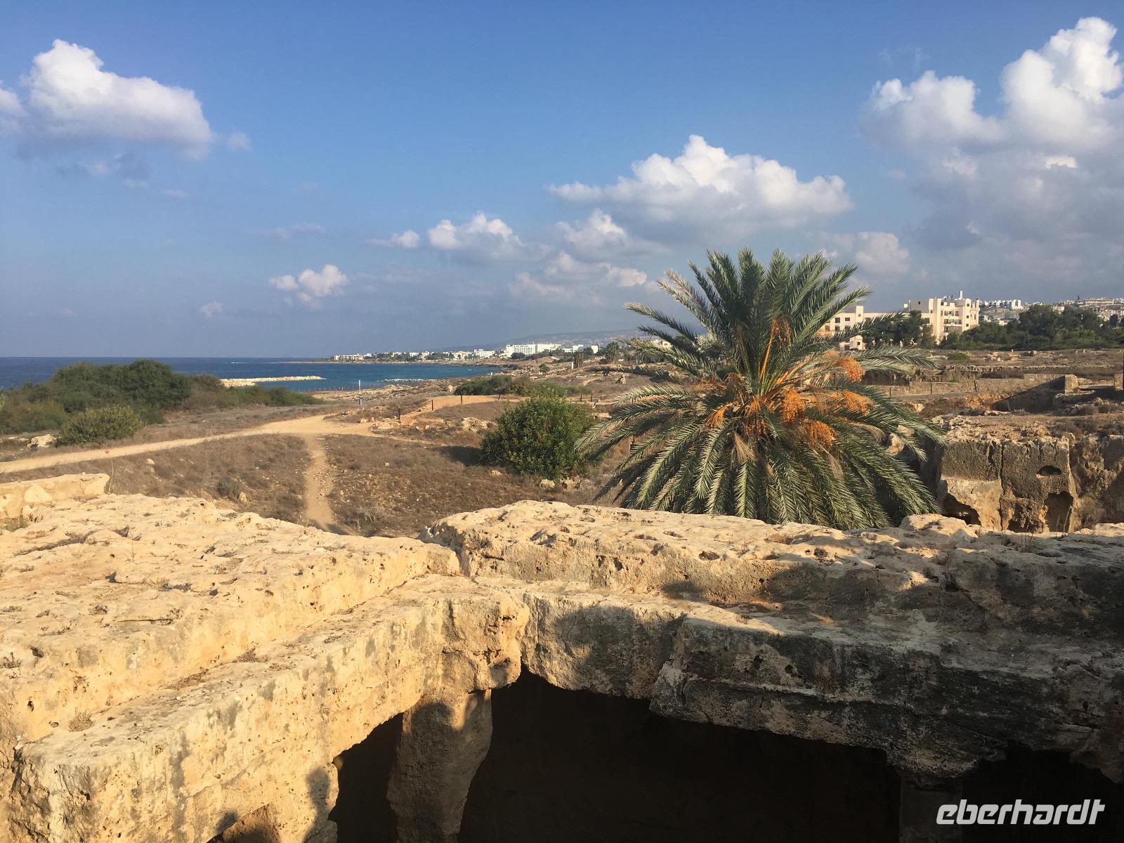 Heute standen die letzten Besichtigungen unserer Zypernrundreise an. Zunächst fuhren wir zu den nur wenige Kilometer entfernten Königsgräbern. Direkt am Meer gelegen findet man auch heute noch größere Grabstätten, welche zur Bestattung von Beamten der ptolemäischen Verwaltung oder ihrer Staatsoberhäupter verwendet wurden. Im Anschluss an die Ausgrabungsstätte fuhren wir weiter zur Hafenpromenade von Paphos, wo wir das Haus des Dionyssios besuchten. Vom Eingang einige Meter entfernt liegt das Haus mit zahlreichen Bodenmosaiken aus dem 3. Bis 5. Jahrhundert n.Chr. Die Darstellung verschiedener mythologischer und klassische Szenen mit Jagdmotiven erstrecken sich auf einer Fläche von 556 m² und gehört zu den schönsten Mosaiken im östlichen Mittelmeerraum. Bevor die Fahrt zum Agios Neophytos Kloster weiterging nutzen wir die kurze Zeit am Hafen für letzte Souvenireinkäufe oder eine Kaffee Pause. Wir verließen die Küstenregion und fuhren zu unserem letzten Kloster auf dieser Reise. Doch das Neophytos-Kloster war ein ganz besonderes, denn es wurde im 12. Jahrhundert in eine Felsenwand gebaut. Das Anwesen ist heute ein Museum und wird nicht mehr von den Mönchen bewohnt. Nach den vielen historischen Erzählungen war es an der Zeit für ein Mittagessen! Für einen gebührenden Abschluss besuchten wir die Taverne in Kathikas. Wir genossen die weit über 5 Gänge und tranken Wein. Bevor es wieder zurück zum Hotel nach Paphos ging, fuhren wir noch ein Stück in den westlichen Teil der Insel in das Akamas Naturschutzgebiet. Dort sollte den Erzählungen nach soll sich hier Aphrodite mit ihrem Liebhaber Adonis vergnügt haben. Ares soll Adonis aus Eifersucht getötet haben, während Aphrodite in dem Bad auf ihn wartete. Von dort aus unternahmen wir einen kleinen Spaziergang um den tollen Blick auf das hellblaue Meer und die Bucht zu haben. Nach diesem schönen Abschluss verabschiedeten wir uns von unserem Reiseleiter Fabio und nutzen den Nachmittag im Hotel. Am Abend trafen wir uns noch einmal mit Reisebegleiterin Laura und besprachen bei einem „bloody Sour" die morgige Abreise.