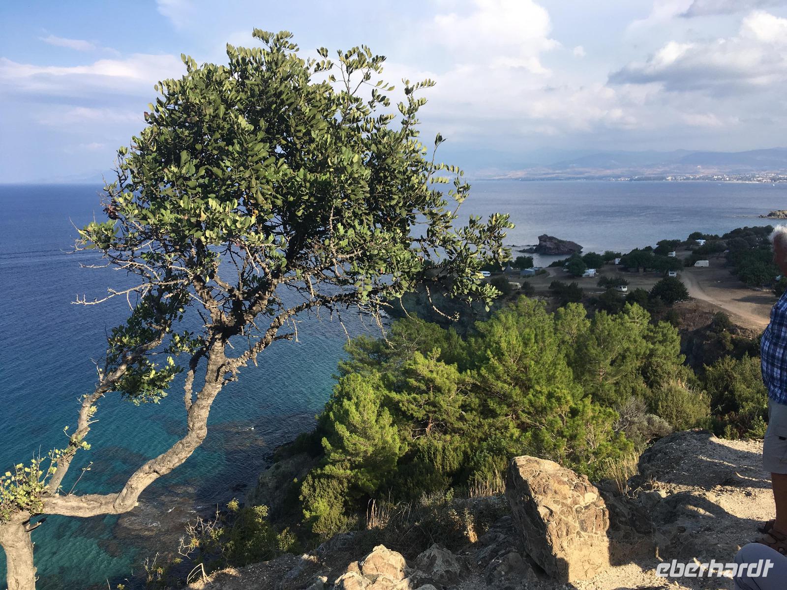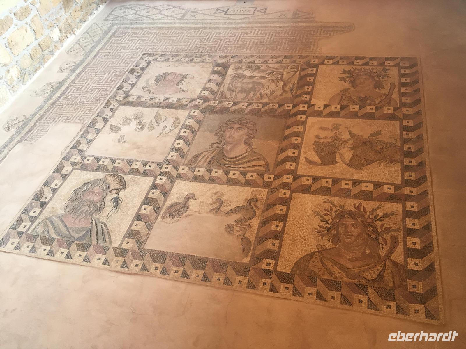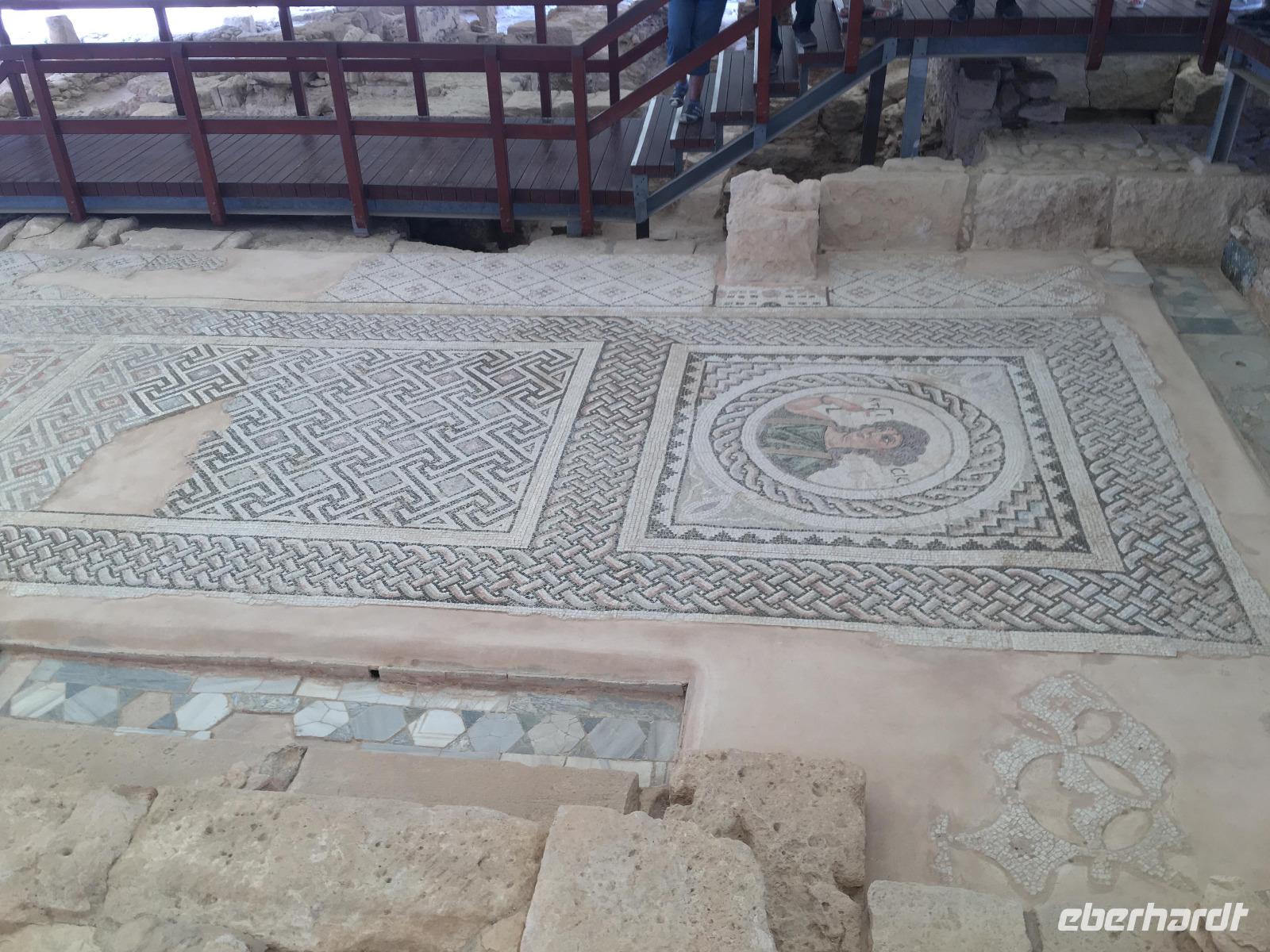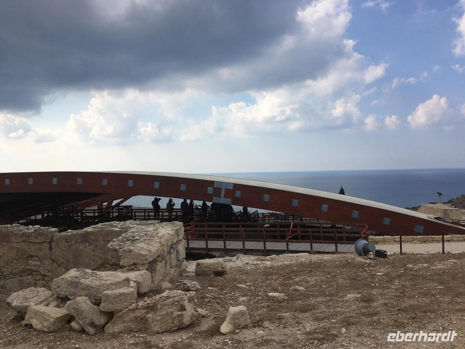 Heute standen die letzten Besichtigungen unserer Zypernrundreise an. Zunächst fuhren wir zu den nur wenige Kilometer entfernten Königsgräbern. Direkt am Meer gelegen findet man auch heute noch größere Grabstätten, welche zur Bestattung von Beamten der ptolemäischen Verwaltung oder ihrer Staatsoberhäupter verwendet wurden. Im Anschluss an die Ausgrabungsstätte fuhren wir weiter zur Hafenpromenade von Paphos, wo wir das Haus des Dionyssios besuchten. Vom Eingang einige Meter entfernt liegt das Haus mit zahlreichen Bodenmosaiken aus dem 3. Bis 5. Jahrhundert n.Chr. Die Darstellung verschiedener mythologischer und klassische Szenen mit Jagdmotiven erstrecken sich auf einer Fläche von 556 m² und gehört zu den schönsten Mosaiken im östlichen Mittelmeerraum. Bevor die Fahrt zum Agios Neophytos Kloster weiterging nutzen wir die kurze Zeit am Hafen für letzte Souvenireinkäufe oder eine Kaffee Pause. Wir verließen die Küstenregion und fuhren zu unserem letzten Kloster auf dieser Reise. Doch das Neophytos-Kloster war ein ganz besonderes, denn es wurde im 12. Jahrhundert in eine Felsenwand gebaut. Das Anwesen ist heute ein Museum und wird nicht mehr von den Mönchen bewohnt. Nach den vielen historischen Erzählungen war es an der Zeit für ein Mittagessen! Für einen gebührenden Abschluss besuchten wir die Taverne in Kathikas. Wir genossen die weit über 5 Gänge und tranken Wein. Bevor es wieder zurück zum Hotel nach Paphos ging, fuhren wir noch ein Stück in den westlichen Teil der Insel in das Akamas Naturschutzgebiet. Dort sollte den Erzählungen nach soll sich hier Aphrodite mit ihrem Liebhaber Adonis vergnügt haben. Ares soll Adonis aus Eifersucht getötet haben, während Aphrodite in dem Bad auf ihn wartete. Von dort aus unternahmen wir einen kleinen Spaziergang um den tollen Blick auf das hellblaue Meer und die Bucht zu haben. Nach diesem schönen Abschluss verabschiedeten wir uns von unserem Reiseleiter Fabio und nutzen den Nachmittag im Hotel. Am Abend trafen wir uns noch einmal mit Reisebegleiterin Laura und besprachen bei einem „bloody Sour" die morgige Abreise.