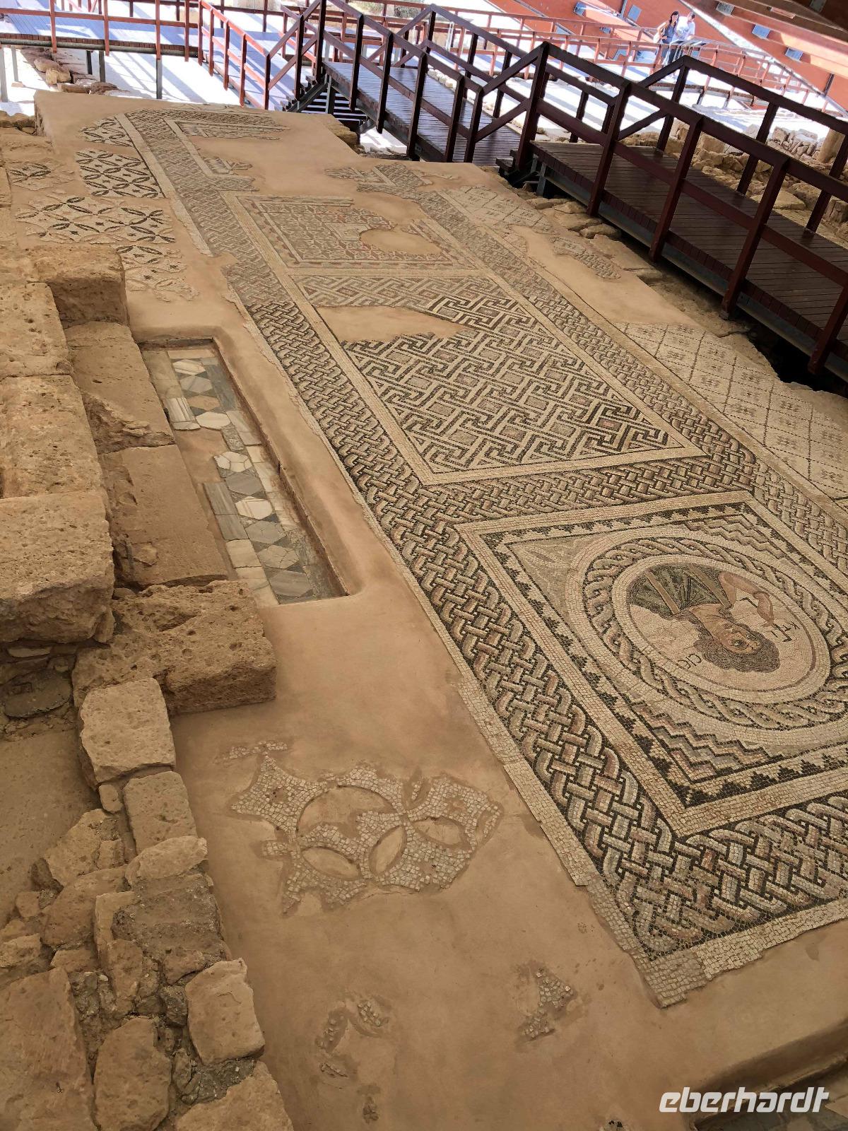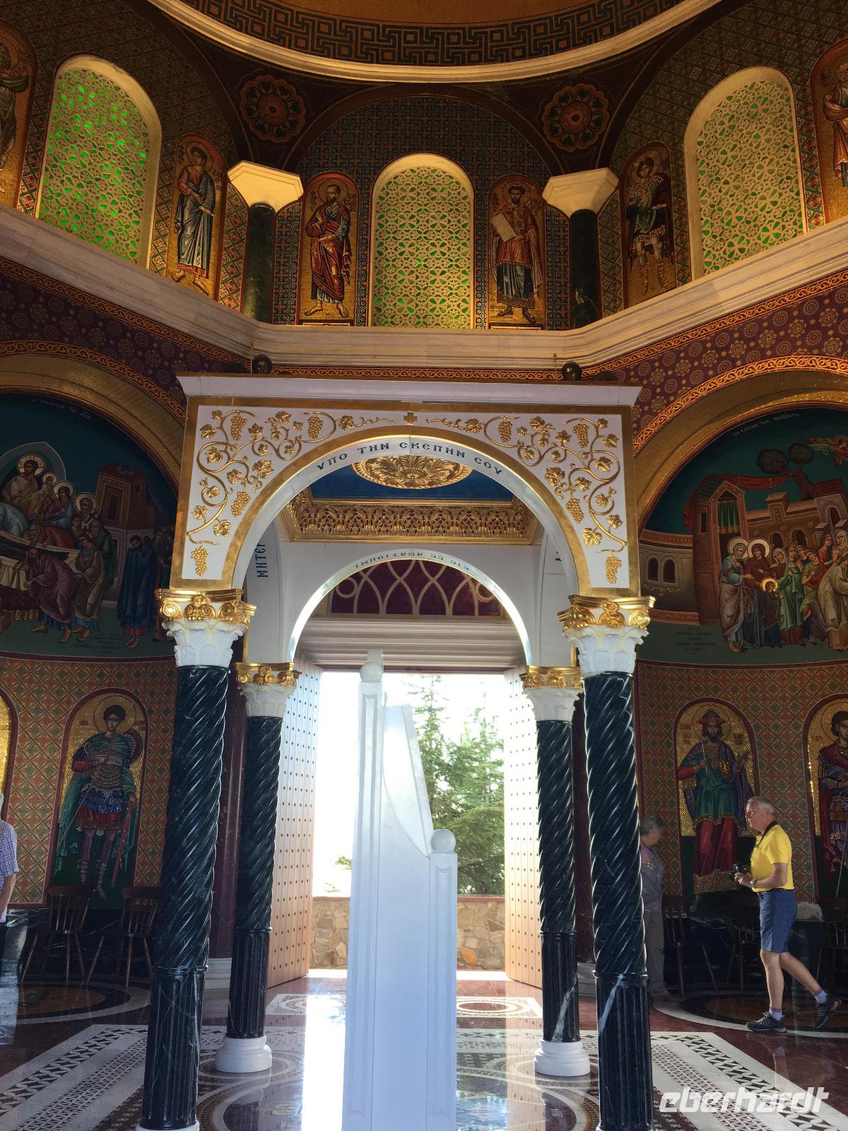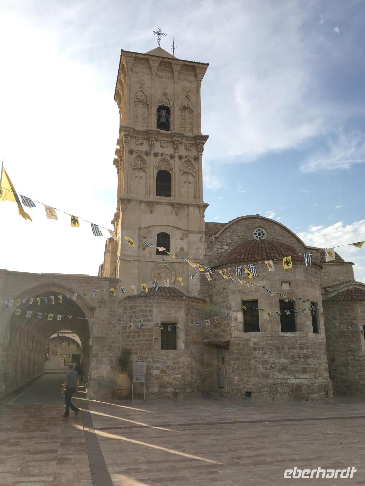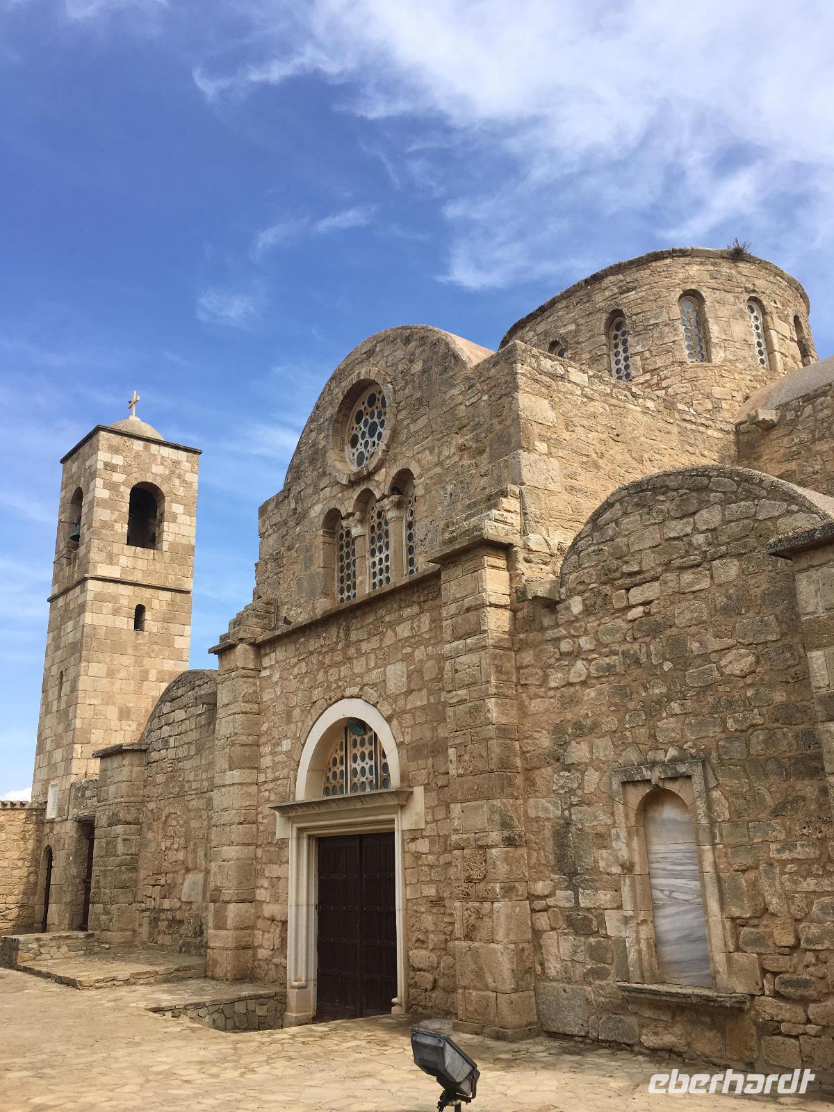 Am Morgen verabschiedeten wir uns mit gepackten Koffern von dem Troodosgebirge und fuhren noch einmal in den türkischen Teil der Insel. Der erste Stopp führte uns zum Barnabas Kloster, wo der Märtyrer Barnabas als zypriotischer Nationalheiliger verehrt wird. Der heilige Barnabas war ein Apostel der aber nicht zum inneren Kreis der zwölf Apostel Jesu gehörte. Nach einer kurzen Einführung konnten wir uns die Anlage individuell ansehen und wir setzten die Führung weiter zur Ausgrabungsstätte von Salamis. Die Ausgrabungsstätte der antiken Großstadt beeindruckte durch ein noch gut erhaltenes Amphitheater, den Bädern und dem Gymnasium. Nach den Besichtigungen in der prallen Sonne hatten wir uns eine Mittagspause redlich verdient. Laura überraschte uns von Eberhardt Travel aus mit einem zusätzlichen Mittagessen in einer Taverne mit Blick auf das Meer am Rand der der Ausgrabungsstätte. Nach der Stärkung ging es weiter nach Famagusta, zu der Mustafa Pasa-Moschee. Diese besichtigten wir sowohl von Innen, als auch von außen bevor wir individuell Zeit für eine Kaffeepause hatten. Vorbei an der Geisterstadt in der grünen Demarkationslinie ging es nun zurück nach Paphos. 140 km vor Paphos besuchten wir die Touristenstadt Larnaca mit der Lazarus-Kirche. Es handelt sich um eine griechisch-orthodoxe Kirche im byzanthinischen Stil, die dem Heiligen Lazarus von Bethanien geweiht ist, der hier 30 Jahre als Bischof wirkte. Von dort aus ging es dann ohne weiteren Halt in unser erstes Hotel Cynthiana Beach. Alle Zimmer waren bereits bezugsfertig und wir freuten uns auf ein leckeres Abendessen im Hotelrestaurant.