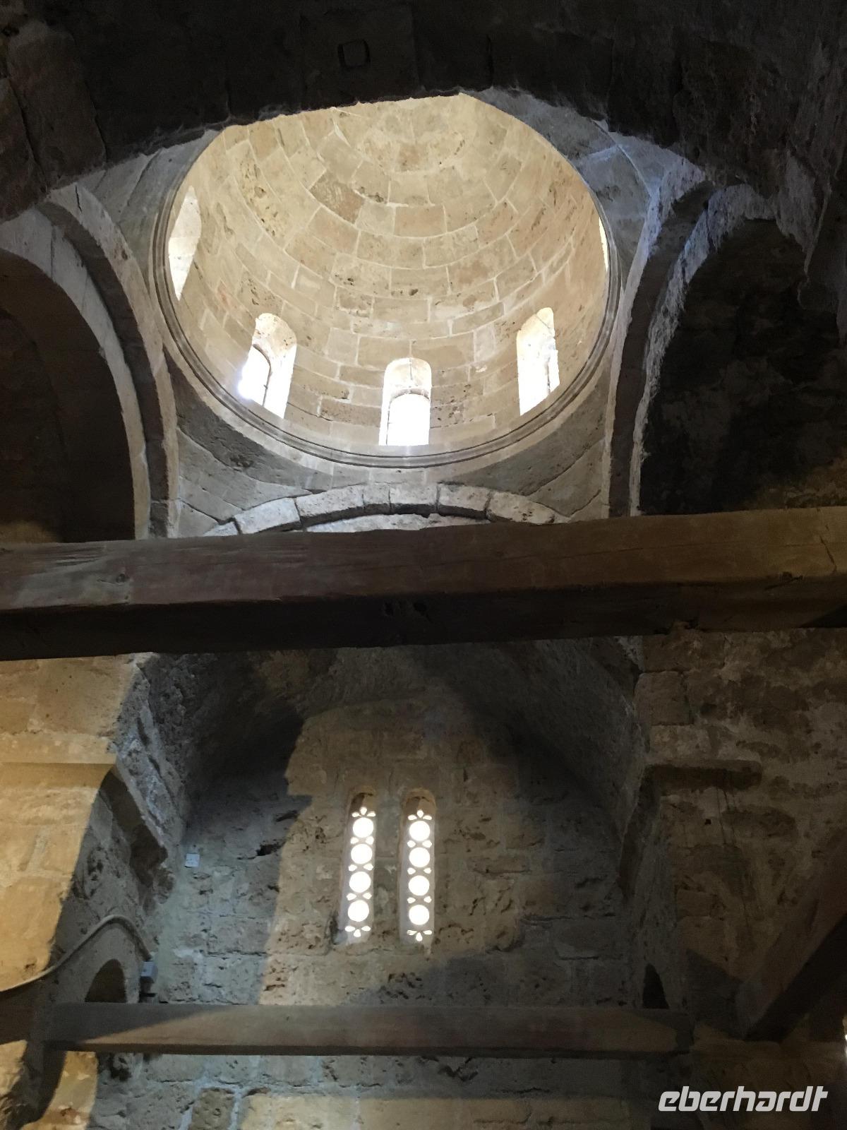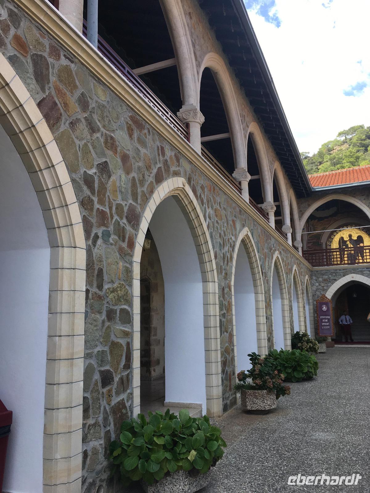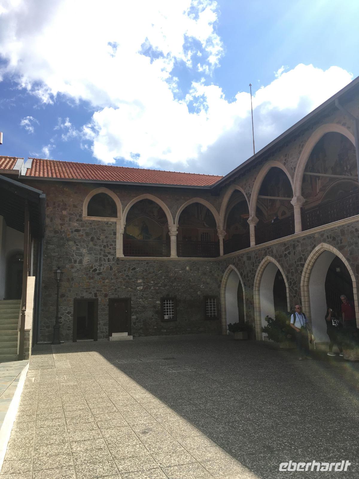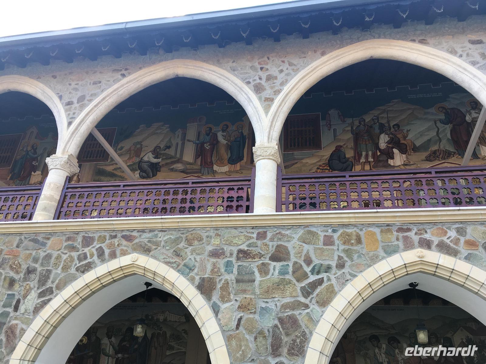 Nach einer mehr oder weniger ruhigen Nacht, starteten wir unseren, wie Fabio zu sagen pflegte - frommen Tag. Es ging zunächst über zahlreiche Serpentinen in das kleine Dorf Galata. Dort sahen wir uns zwei von UNESCO-Kulturerbe geschützte Scheunendachkirchen an. Von außen sahen diese wie alte Scheunen aus, doch von innen bestachen Sie durch mit Gold geschmückte Ikonostasen. Unser Reiseleiter Fabio erklärte uns die einzelnen biblischen Geschichten, welche auf den Wandmalereien zu erkennen waren. Weiter ging es in das mächtigste Kloster ganz Zyperns. Das Kloster liegt 1140 Meter über dem Meeresspiel und ist wegen seiner einzigartigen Marienikone bekannt. Nach einem Rundgang im Kloster selbst war es Zeit für eine Mittagspause. Am Nachmittag besuchten wir noch das kleine Dorf Kakopetria. Unser Bus ließ uns dafür an der Hauptstraße oberhalb der malerischen Gassen raus und wir legten einen Spaziergang zu Fuß zurück. Wir genossen die Ansicht der teilweise 300-400 Jahre alten denkmalgeschützten Häuser, welche vor kurzer Zeit frisch restauriert wurden. Mit müden Füßen ging es wieder zurück in unser Hotel Rodon. Den Abend verbrachten wir bei einem ruhigen Essen und entspannten uns für den kommenden Tag.
