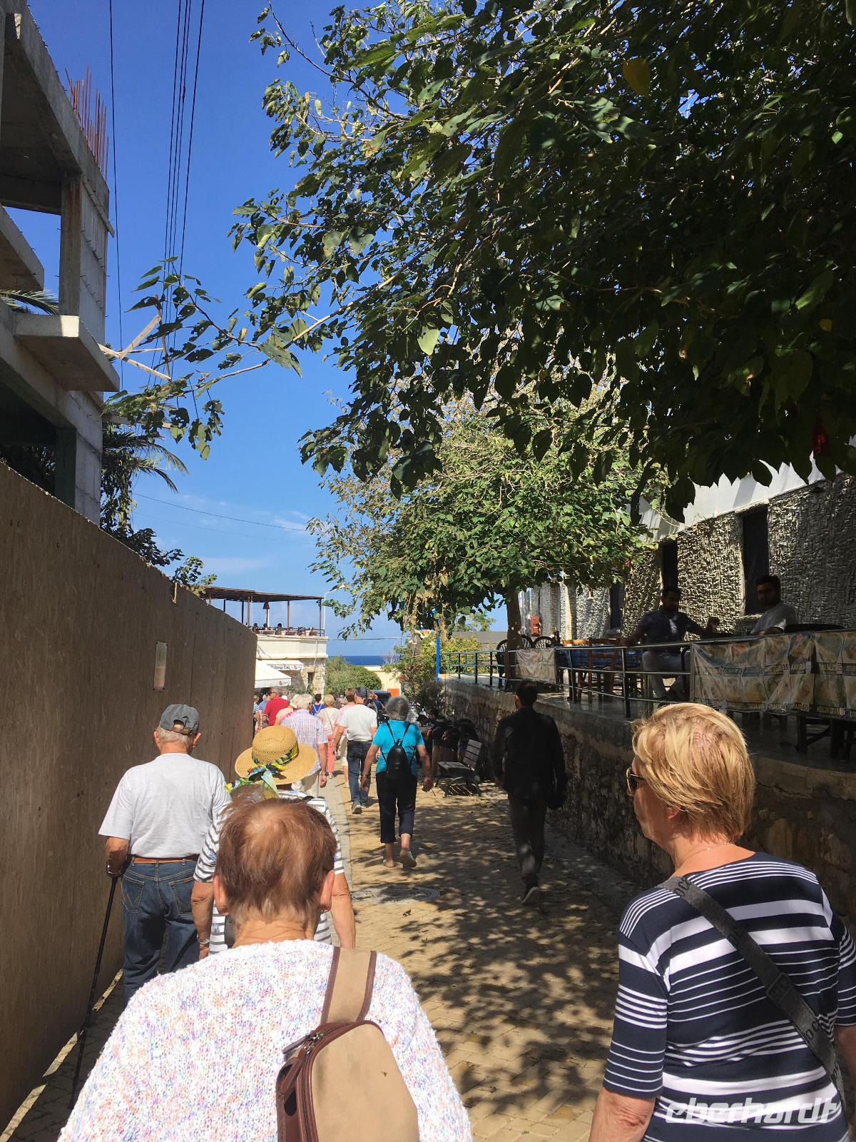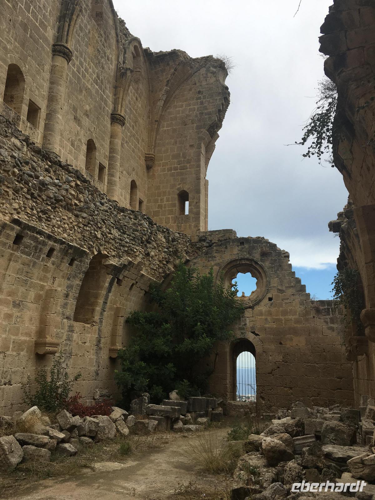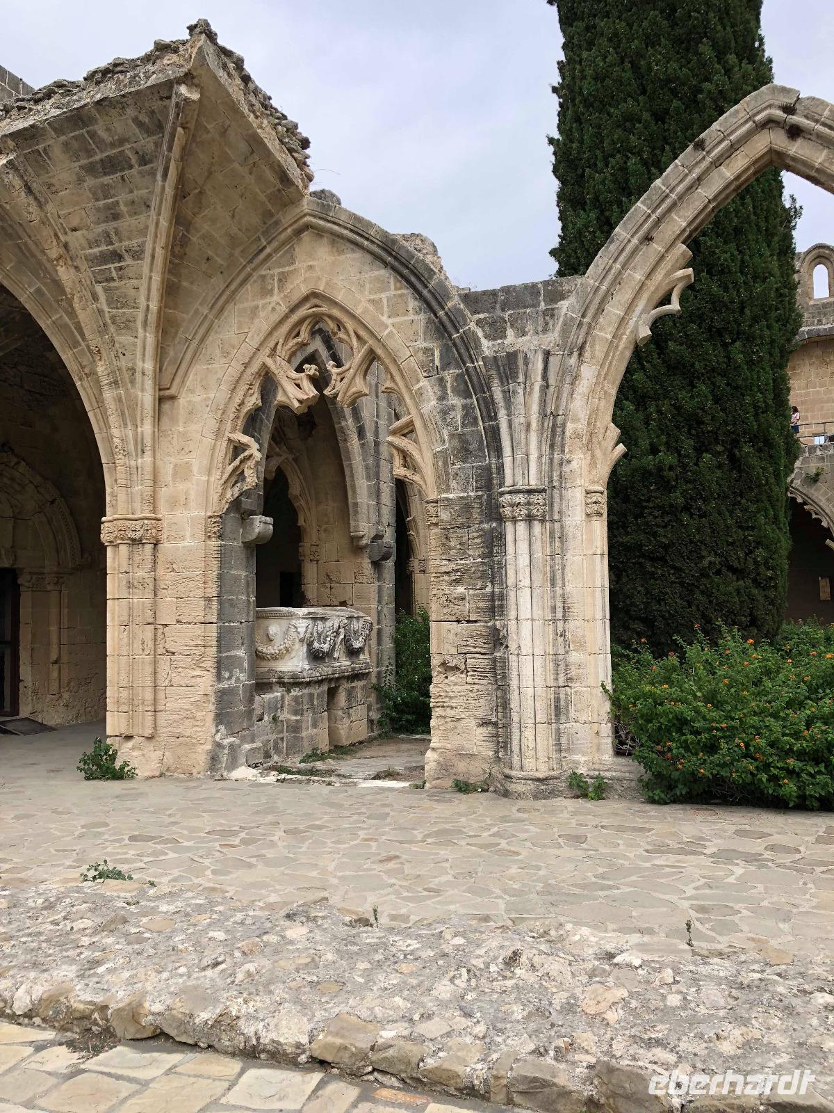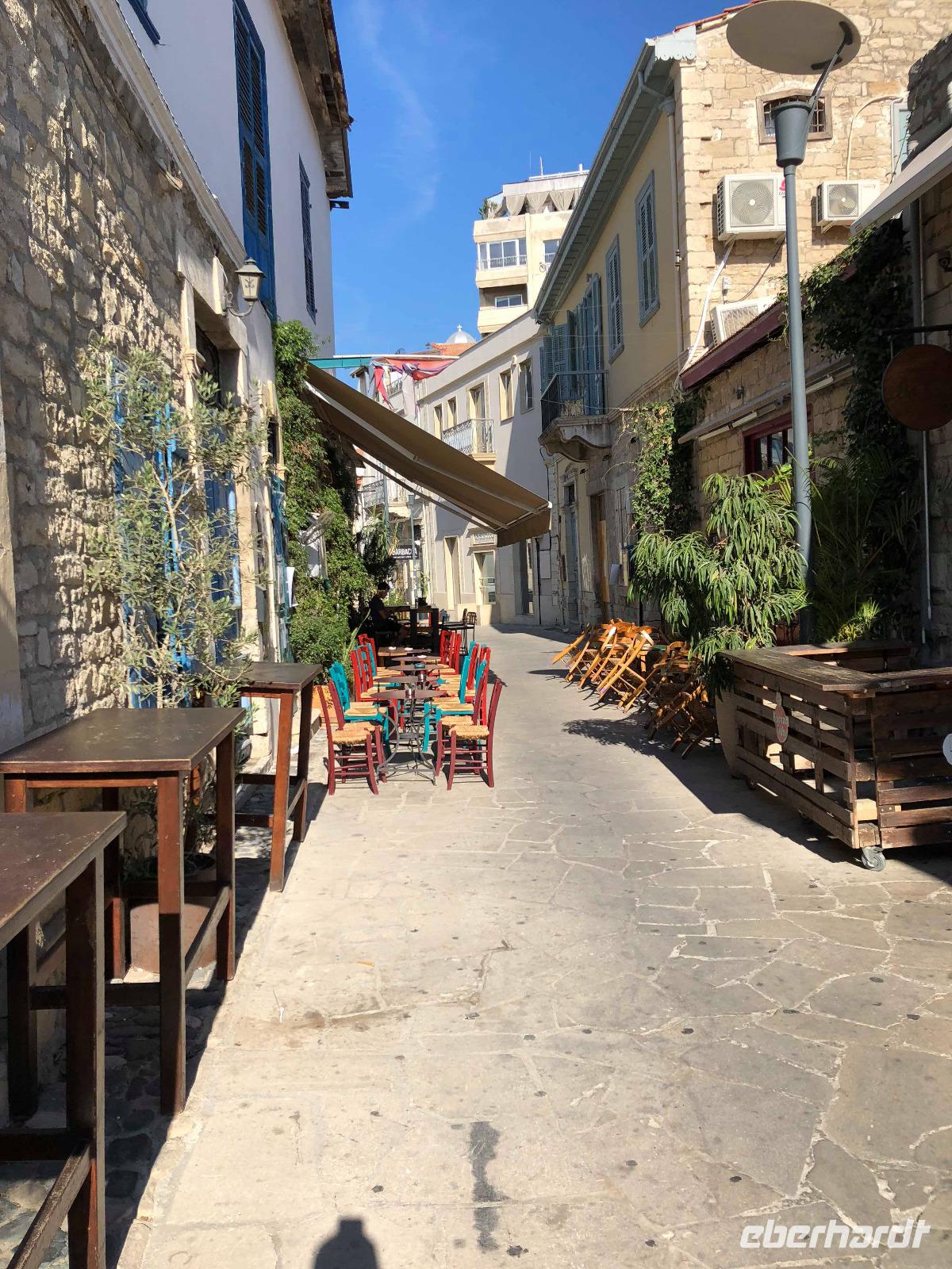 Heute stand die Erkundung des türkischen Teils der geteilten Insel im Vordergrund. Zunächst fuhren wir dafür in die Hauptstadt der Insel, nach Nikosia oder auf Griechisch auch Lefkosia genannt. Der Bus hielt an der alten venezianischen Mauer, von wo aus wir die letzten Meter in die Innenstadt zu Fuß zurücklegten. Angekommen auf der Einkaufsmeile Ledrastraße nutzen wir erst einmal die Zeit für eigene Erkundungen. Gemeinsam überquerten wir den Checkpoint um die türkische Seite der Stadt zu erreichen. Entlang der schmalen Gassen mit Verkaufsständen an jeder Ecke, besichtigten wir die ehemalige Sophien-Kathedrale. Die einstig christliche Kathedrale wird heute als Moschee genutzt. Nur zwei Straßen weiter befindet sich die alte Karawanserei Büyük Han. Sie wurde 1572 kurz nach der türkischen Eroberung Zyperns erbaut und ist wahrscheinlich das älteste türkische Bauwerk der Insel. Im Innenhof wurden uns leckere Teigtaschen gefüllt mit süßem Quark gereicht. Nach einem ca. 20 minütigen Spaziergang zum Bus fuhren wir weiter nach Kyrenia. Dort angekommen besuchten wir zunächst die Burganlage, welche von einer massiven Mauer umfasst war. Diese lag an dem kleinen malerischen Hafen der Stadt. Wir stärkten uns bei einem Mittagssnack und starten zum letzten Stopp an diesem Tag. Es ging oberhalb der Stadt zu der gotischen Klosterruine Bellapais. Die Abtei wurde um 1198 von aus Jerusalem geflüchteten Augustiner-Chorherren gegründet. Von dort genoss man einen herrlichen Blick auf die Küste, von wo man bei gutem Wetter auch einen Teil der Türkei erblicken kann. Am Abend trafen wir mit einer lautstarken Begrüßung durch eine Vielzahl an Zyprioten wieder im Hotel ein. Diese feierten eine landestypische Familienfeier. Nach dem Abendessen trafen wir uns noch einmal gemeinsam in der Hotellobby, um die Ruhe bei einem Getränk des Hauses zu genießen.