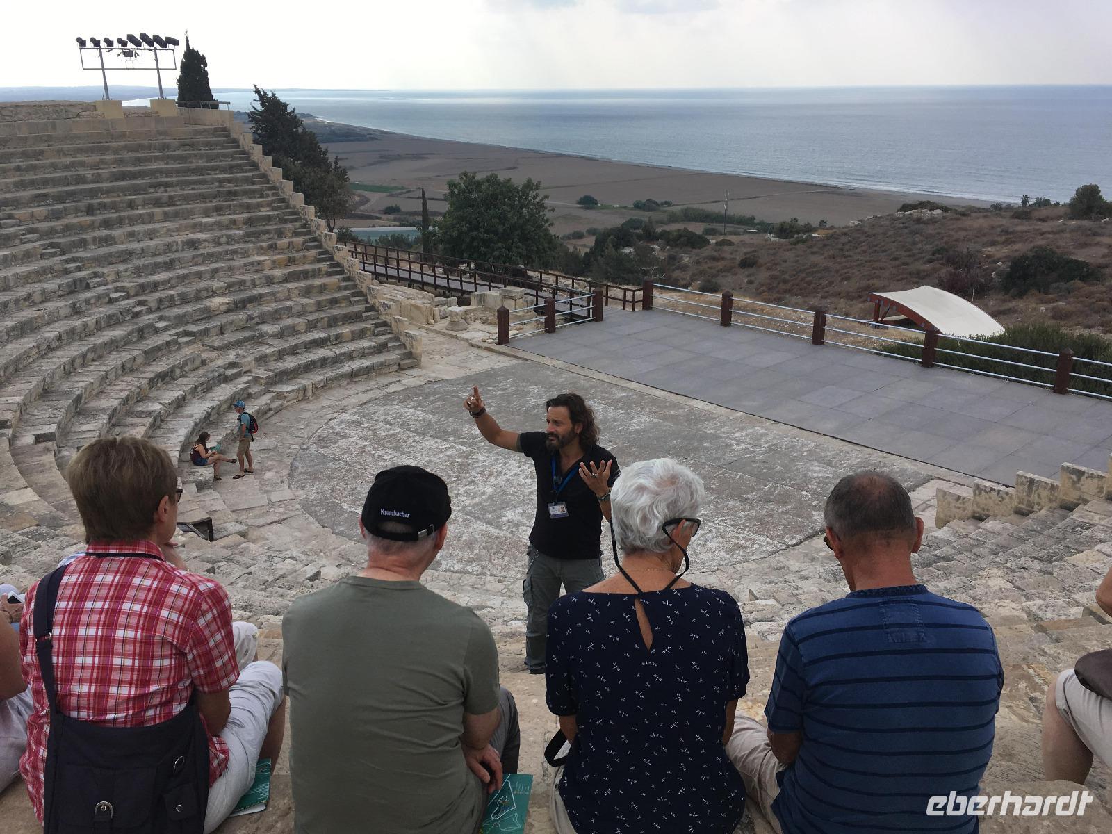 Nach einer erholsamen Nacht ging es heute ausgeruht zum ersten Zwischenstopp unserer Fahrt dem Felsen der Aphrodite. Unser Reiseleiter Fabio erklärte uns bereits auf dem Weg dorthin, welche Mythen und Geschichten dazu entstanden. Weiter ging es vorbei an der englischen Basisstation des Militärs zu den Ausgrabungsstätten von Kourion. Bei bewölktem Himmel besichtigten wir zunächst das Amphitheater mit Blick auf das Meer, welches heute noch für Veranstaltungen genutzt wird. Danach ging es weiter zu den Bädern mit den Mosaiken. Fabio erklärt die einzelnen Räume so detailliert, sodass wir uns einen guten Eindruck der damaligen Lebensweise verschaffen konnten. Nur wenige Fahrminuten entfernt besuchten wir die ehemalige Johanniterburg von Kollosi. Während wir den Erzählungen unseres Reiseleiters lauschten tranken wir einen leckeren Dessertwein - Kommandaria, welcher in Zypern gern getrunken wird. Je nach Kondition verschafften wir uns einen Eindruck vom inneren der Anlage und hatten von der Terrasse ganz oben einen tollen Blick auf die Umgebung. Nun war es an der Zeit für ein Mittagessen. Also führen wir nach Limassol, die zweit größte Stadt der Insel und wurden mit einer typischen Fisch Meze verwöhnt. Im Anschluss führte uns Fabio durch die romantischen Gassen, mit vielen Bars und Restaurants. Nun war Zeit für einen individuellen Bummel und einen leckeren Kaffee. Am späten Nachmittag trafen wir wieder im Hotel ein uns genossen den vorerst letzten Abend in der Kulturstadt 2017, bevor es morgen in das Troodosgebirge ging.