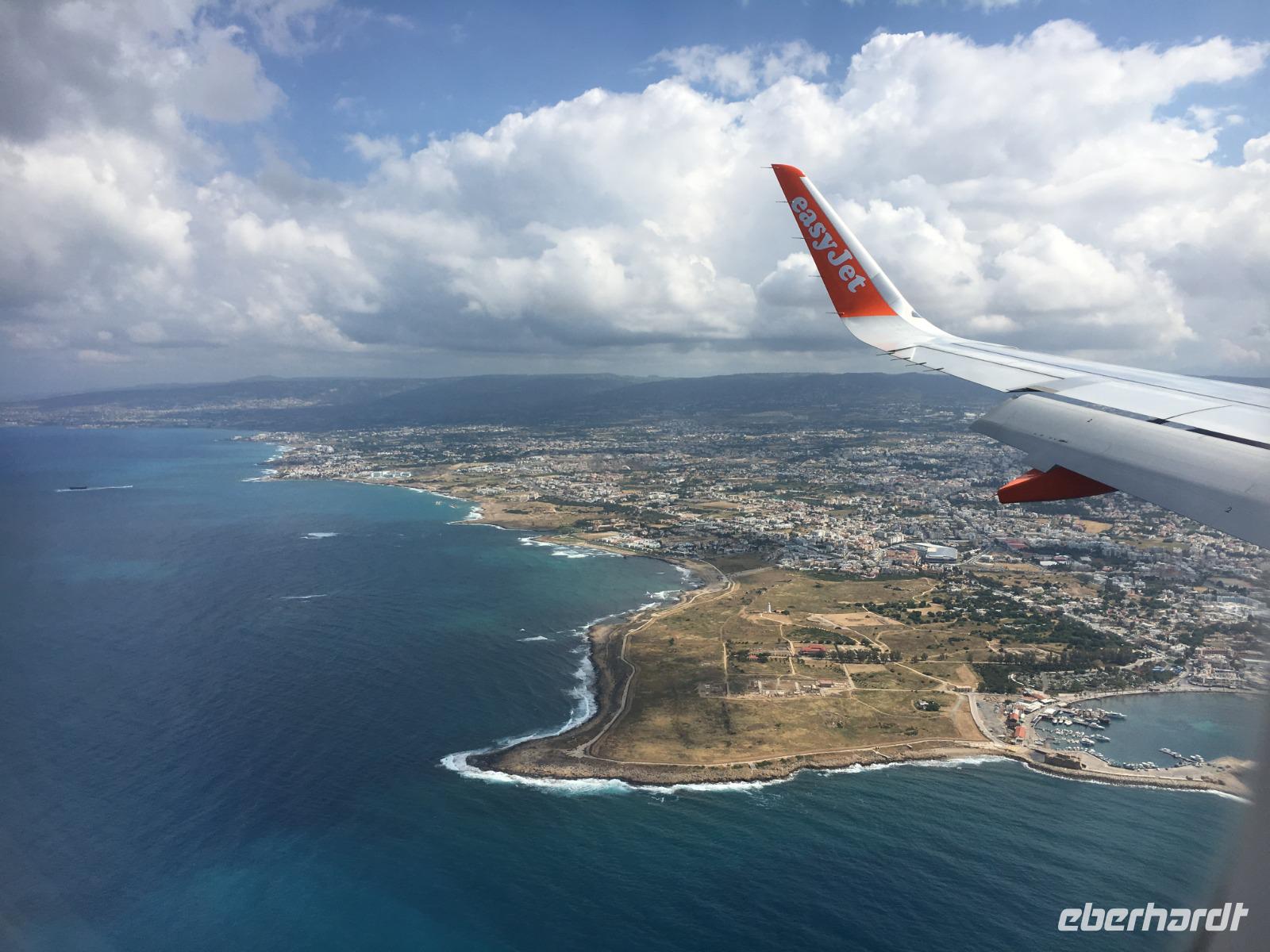 Nach dem Frühstück verabschiedeten wir uns von den Gästen, die die zypriotischen Strände und das schöne Wetter noch eine Woche länger genießen dürfen. Der Flughafen Paphos liegt nur eine halbe Stunde entfernt. Dort begrüßte uns bereits Antonis. Mit ihm gemeinsam gingen wir zum Check-In. Dank seiner hervorragenden Kontakte war das in wenigen Minuten erledigt. Wir verabschiedeten uns von Antonis und verschwanden durch die Sicherheitskotrolle. Leicht verspätet hoben wir von Zypern ab, flogen über einige griechische Inseln und landeten bei ca. 10 °C im kalten Berlin.