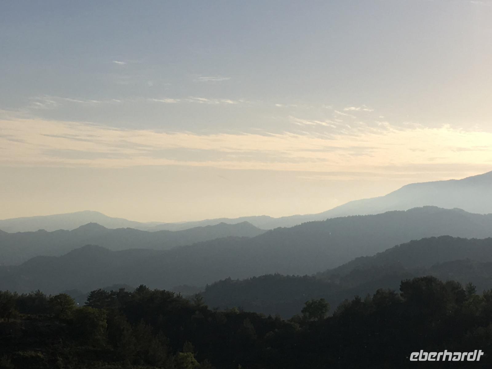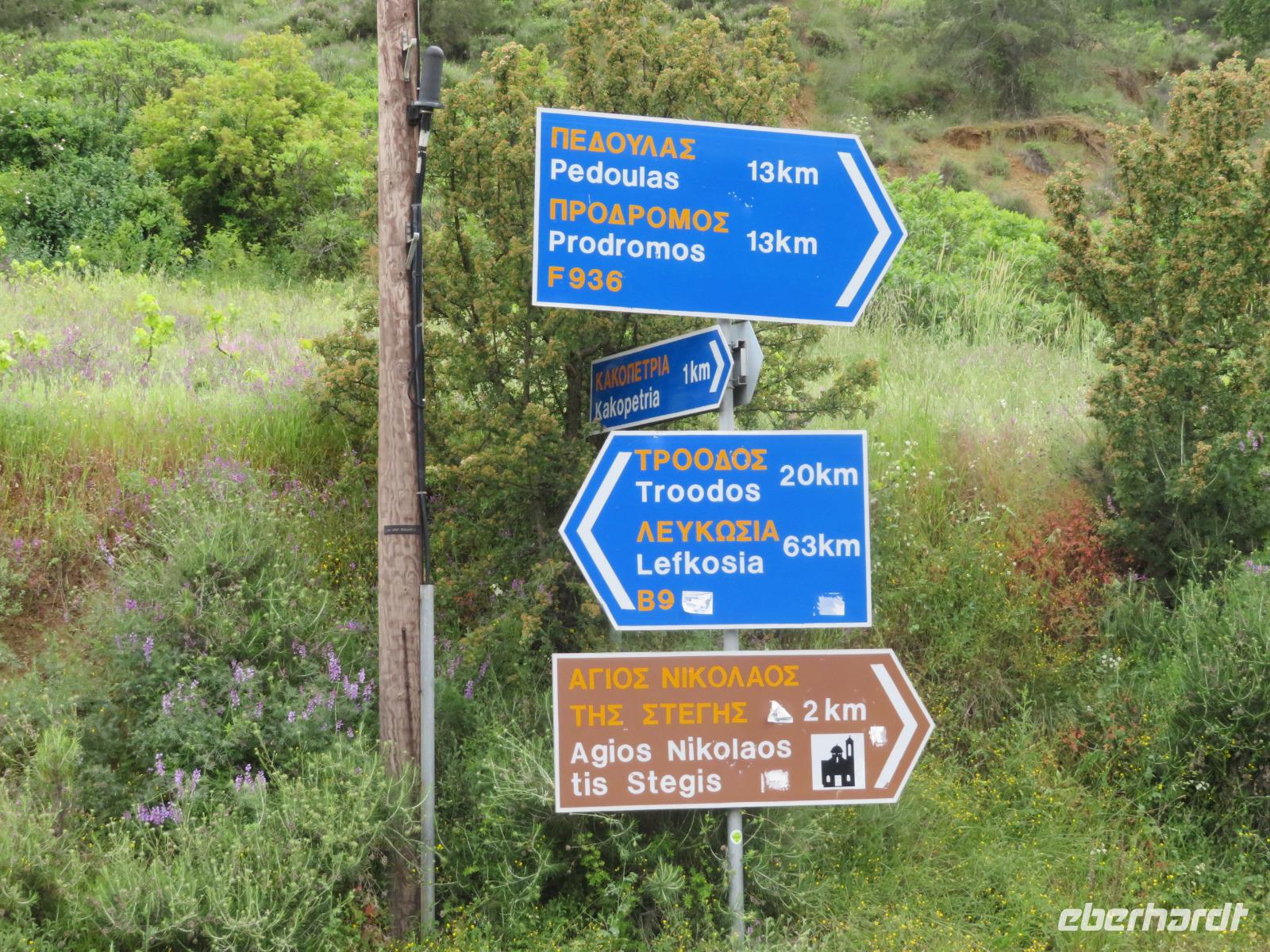 Bereits mitten in der Nacht begann die Reise zunächst zum Flughafen Berlin-Tegel. Der Check-In bei easyjet und die Sicherheitskontrolle dauerten länger als erwartet und als wir am Gate ankamen, begann bereits das Boarding. Nach 3 Stunden 15 Minuten Flugzeit, landeten wir bei beinahe wolkenlosem Himmel auf der Insel der Götter. Antonis, unser örtlicher Reiseleiter für die nächste Woche und mit einer Vorliebe für Eierschecke, begrüßte uns bereits herzlich. Kurze Zeit später lernten wir auch unseren Busfahrer Kyrakos kennen. Nach einer 30-minutigen Verschnaufpause in einer zypriotischen Bäckerei, ging es gestärkt weiter. Gegen 13:30 hielt jeder Gast seinen Zimmerschlüssel in den Händen. Bei einem Glas eisgekühlten Rosenwasser besprachen wir mit Antonis die kommende Woche, bevor wir unsere Zimmer inspizieren und uns ausruhen konnten. Ohnehin erwischten wir heute einen von zwei Regentagen im Mai. Einige Gäste nutzten die Gelegenheit, um den in der Nacht verpassten Schlaf nachzuholen. Andere spazierten bei immer besser werdendem Wetter in Richtung Agros, wo die Aufbauarbeiten für das bevorstehende jährliche Rosenfestival im vollen Gange waren. Wieder im Hotel angekommen, lies sich die Sonne immer mehr blicken und Zypern zeigte sich von seiner besten Seite. Am Abend begrüßten wir die 4 aus Düsseldorf angereisten Gäste und ließen den Abend bei einem Glas Wein ausklingen.