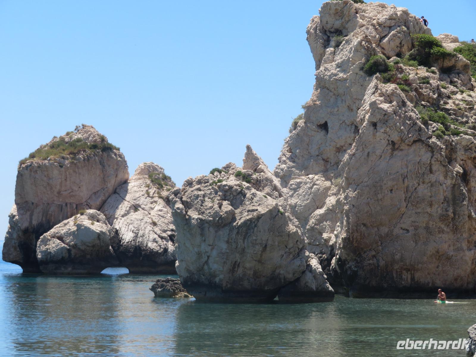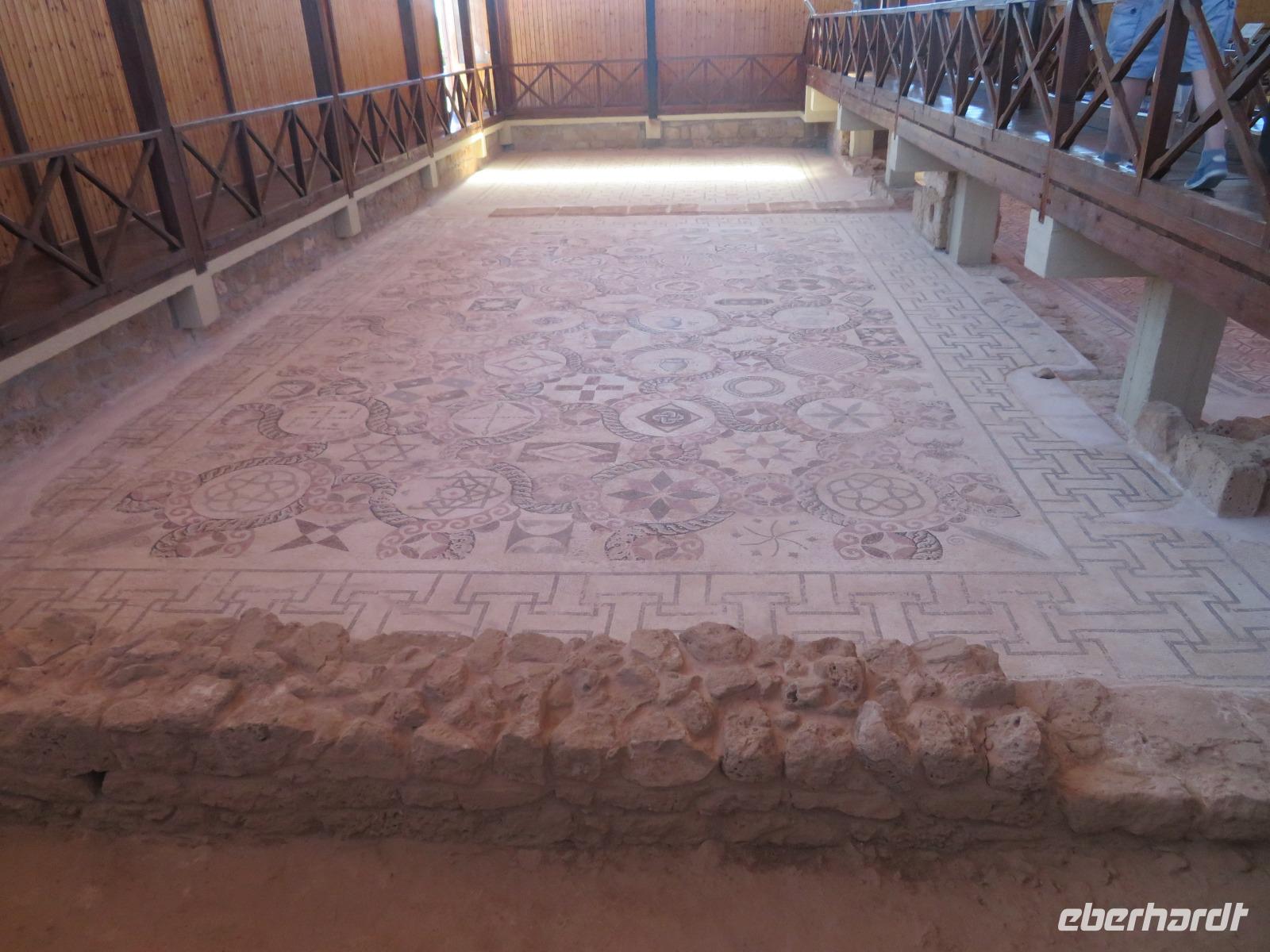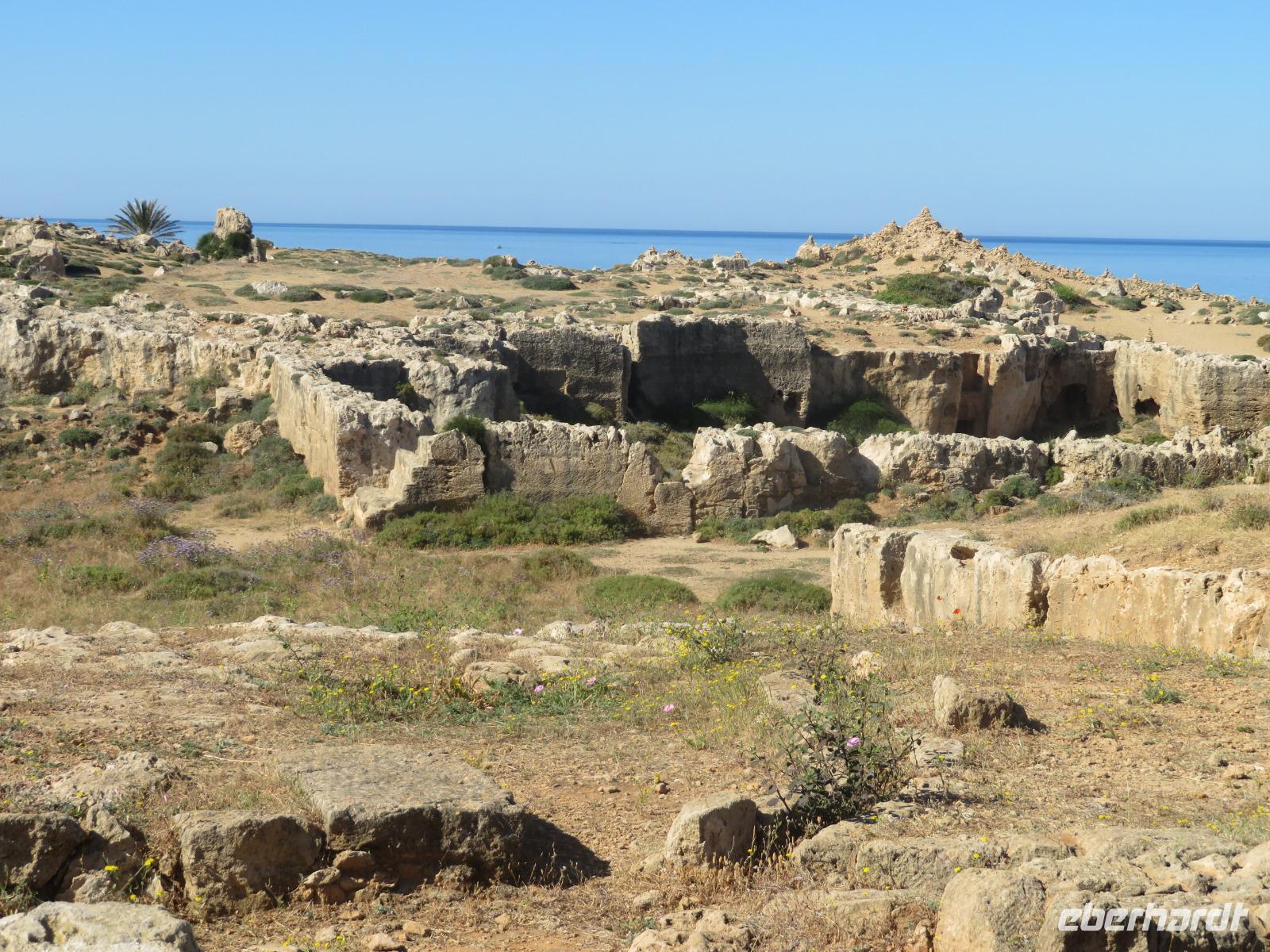 Nach dem Frühstück führte uns der Weg zu den 6 km entfernten Königsgräbern. Hier waren hochrangige Amtsträger und Aristokraten begraben. Eine Attraktion sind die wenigen Atrium-Gräber. Sie ähneln unterirdisch gelegenen römischen Villen. Neben den beeindruckenden Gräbern direkt am der Mittelmeerküste bestaunten wir die Vielzahl der Schmetterlinge die sich um die bunten Blüten tummelten. Anschließend fuhren wir nach Paphos zurück. Der archäologische Park von Paphos ist ein Freilichtmuseum auf einer Fläche von einem Quadratkilometer. Als erstes sahen wir uns die Basilika und die Chryssopolitissa Kirche näher an. Zu Fuß ging es weiter zum Haus des Dionysos und den Bodenmosaike. Antonis erklärte uns die Bedeutung der einzelnen sehr gut erhaltenen Mosaike. Nun blieben uns noch 30 Minuten Zeit um gemütlich ein Eis oder ein kaltes Getränk zu genießen, bevor wir zu einem der Touristenmagneten fuhren, die Felsen der Aphrodite. Die griechische Mythologie besagt, dass an dieser Stelle die griechische Göttin der Schönheit geboren wurde. Im klimatisierten Bus zurück ging die Fahrt weiter nach Kouklia. Dort aßen wir fantastisches Souflakia mit Fladenbrot. Bei gefühlten 33 °C besuchten wir den Aphrodite Tempel. Heute stehen an der Ausgrabungsstätte nur noch die Grundmauern. Auch heute fuhren wir gegen 16:00 Uhr zum Hotel zurück.