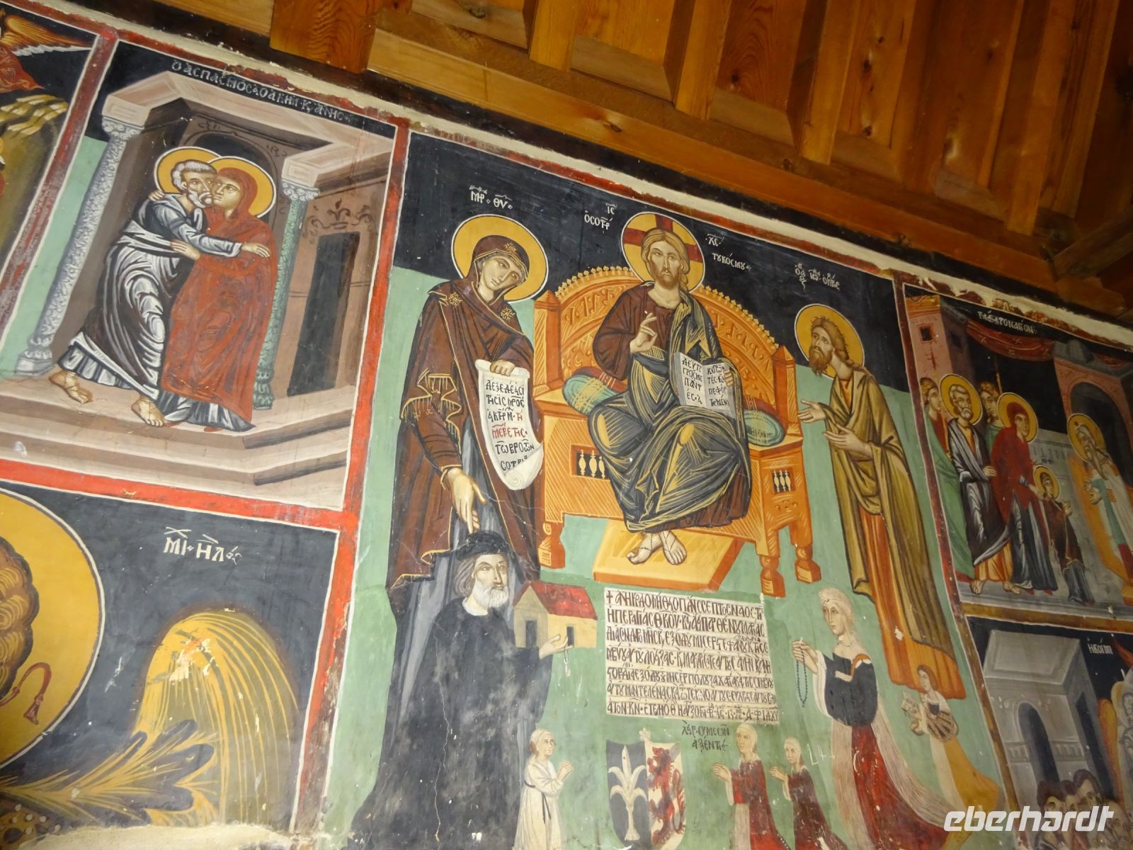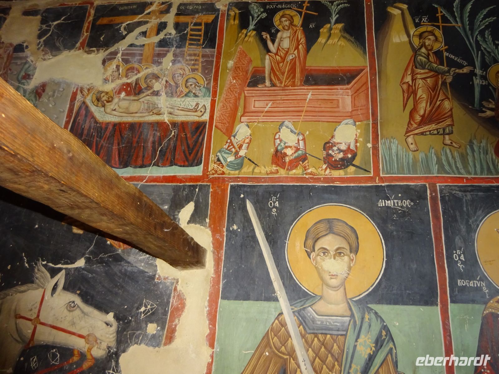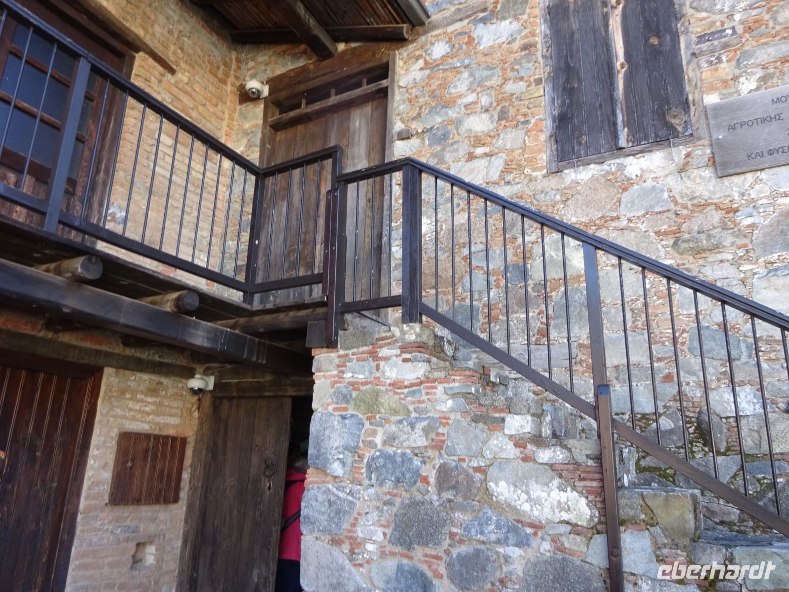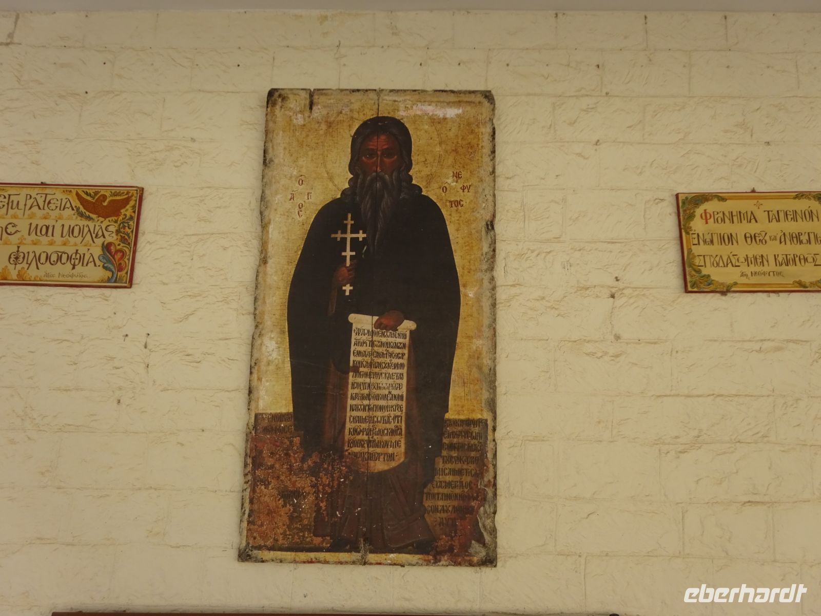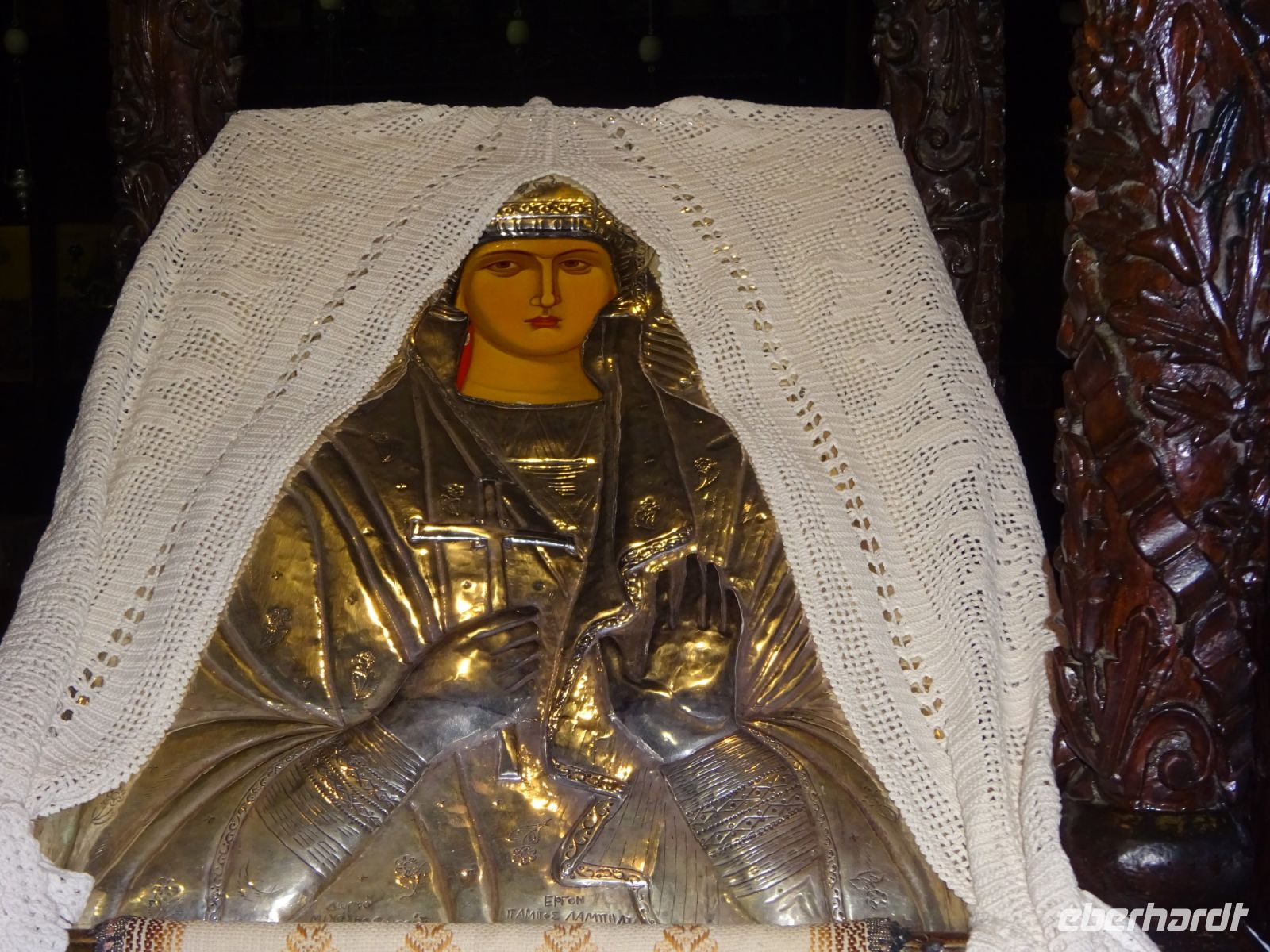 Heute lernen wir nun einige Sehenswürdigkeiten im Troodosgebirge kennen. Erster Programmpunkt sind zwei Scheunendachkirchen nahe beim Dorf Galata. Beide, die Panagia tis Podithou und die Kirche des Erzengel Michael gehören zum UNESCO-Weltkulturerbe. Äußerlich erinnern diese Kirchen eher an Scheunen, woher sie auch ihren Namen haben, im Inneren kann man sehr gut erhaltene Wandmalereien bewundern. Weiter fuhren wir durch das herrliche Troodosgebirge, auch durch kleine Bergdörfer, die uns Anlass waren, über die Landflucht zu sprechen, die auch hier ein Thema ist. Antonis machte uns unterwegs auf eine alte Kupfermine aufmerksam, die seit über 4.000 Jahren existiert. Nach einer Kaffeepause im nächsten Ort, ging es weiter hinauf. Unser Ziel war das Grab von Erzbischof Makarios auf Throni oberhalb des Kykkos-Klosters, das wir anschließend besuchen werden. Unterwegs erfuhren wir mehr über das Leben und Wirken von Makarios, dem wichtigen und bekannten Staatsmann Zyperns. Mit dem Bus fuhren wir anschließend das kurze Stück hinunter bis zum Kykkos-Kloster, das als eines der mächtigsten Klöster Zyperns gilt. Es wurde im 11. Jahrhundert gegründet. Die Wände der Gänge sind voller Darstellungen aus dem Alten und dem Neuen Testament. In der Kirche des Klosters sahen wir das berühmte Marienbild, im Museum dann die reiche Sammlung an wertvollen Reliquienschreinen. Bevor wir unsere Tour fortsetzten, gönnten wir uns in der Nähe des Klosters eine kleine Erfrischungspause, stöberten ein wenig in den Souvenirläden, genossen die herrlich frische Bergluft. Auf einem anderen Weg ging es dann hinunter. Die Straßen mit den vielen Serpentinen sind eine echte Herausforderung, aber unser Busfahrer Dimos meisterte die Strecke mit Bravour. Nun wollten wir noch auf einen kleinen Spaziergang durch das Dorf Kakopetria gehen, in dessen historischem Ortskern viele Gebäude unter Denkmalschutz stehen. Sie wurden denkmalgerecht saniert, auch mit staatlicher Unterstützung, und erwarten nun Feriengäste. Wieder hatten wir einen Tag voller unvergesslicher Erlebnisse. Zum Abendessen gingen wir in eine Taverne ganz in der Nähe unseres Hotels. Nach so vielen Eindrücken dieses Tages ließen wir uns die zypriotischen Köstlichkeiten ordentlich schmecken: Salat als Vorspeise, als Hauptgericht Mousaka. Ein feines Dessert schloss diese schöne Mahlzeit ab.