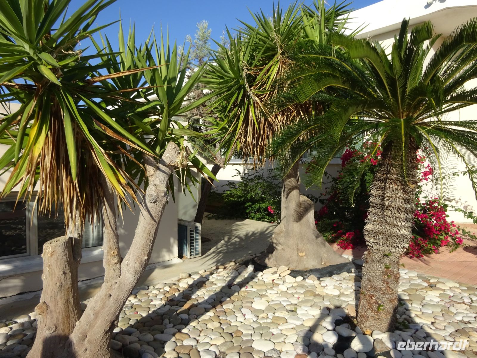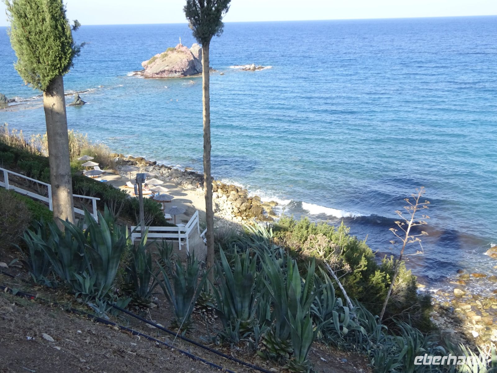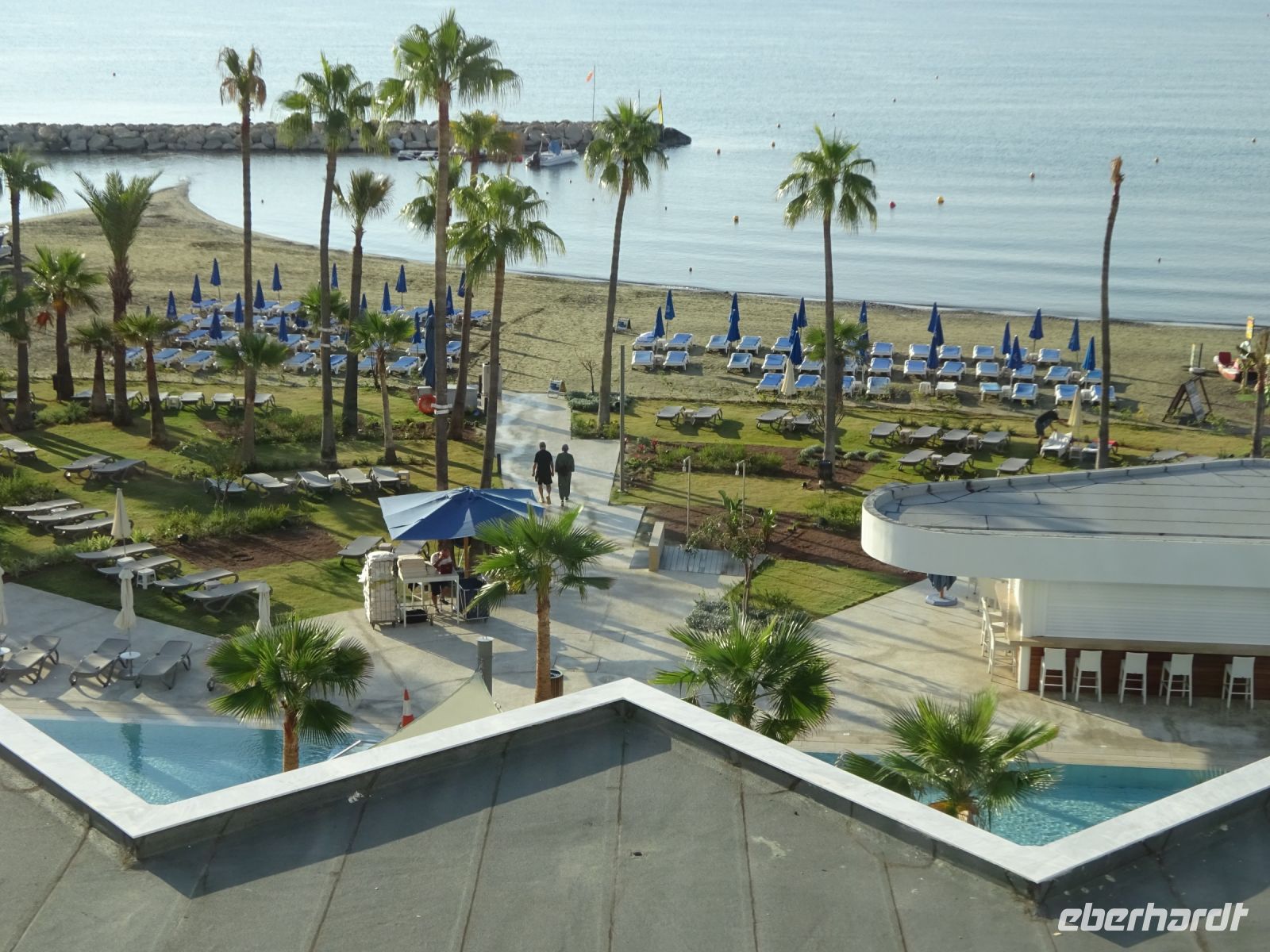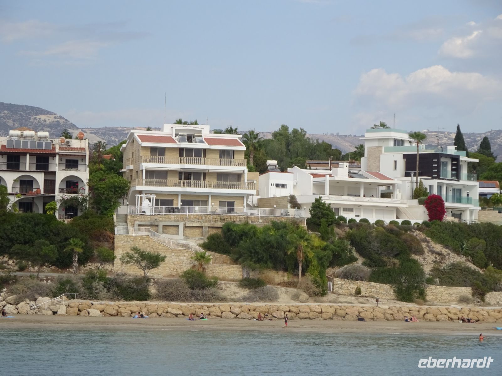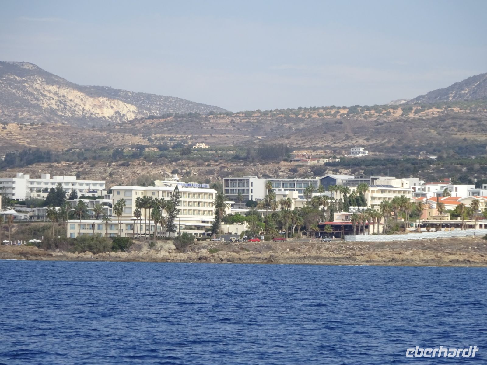 Von Berlin flogen die meisten Gäste der Gruppe zusammen mit der Reisebegleiterin zunächst nach Wien, von dort nach Larnaka. Vier Gäste hatten den Flieger von Frankfurt genommen und erwarteten uns am Flughafen in Larnaka, wo uns Ismini, die Leiterin der hiesigen Reiseagentur und Kooperationspartnerin von Eberhardt-Travel, freudig in Empfang nahm. Unser örtlicher Reiseleiter Antonis, der uns die gesamte Reise über begleitetet, war gerade noch mit einer anderen Eberhardt-Gruppe unterwegs. Ihn treffen wir in Paphos in unserem Hotel Cynthiana Beach. Auf der knapp zweistündigen Fahrt von Larnaka nach Paphos bekamen wir von Ismini schon jede Menge Informationen über Land und Leute, aber auch zu allerhand praktischen Dingen unseres Aufenthaltes. So verging die Zeit schnell bis zur Ankunft im Hotel in Paphos, wo uns Antonis in Empfang nahm, mit uns die Formalitäten erledigte, auch Informationen für den morgigen Tag gab. Wir ließen uns das Essen schmecken, plauderten ein wenig. Nun meldete sich doch die Müdigkeit. Also, husch ins Bett, damit wir morgen frisch sind für die Sehenswürdigkeiten, die uns erwarten.