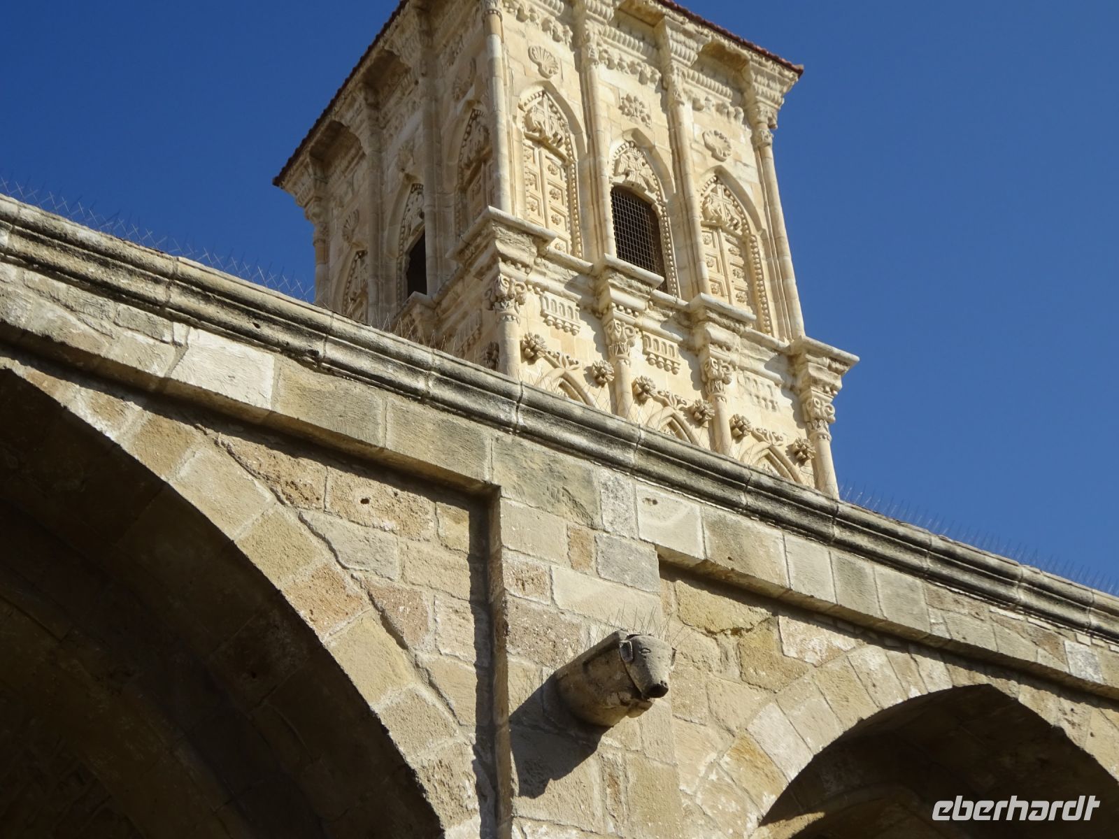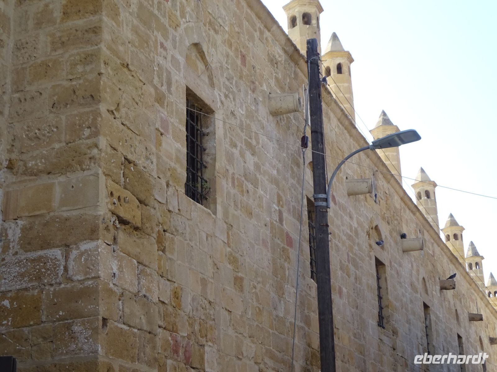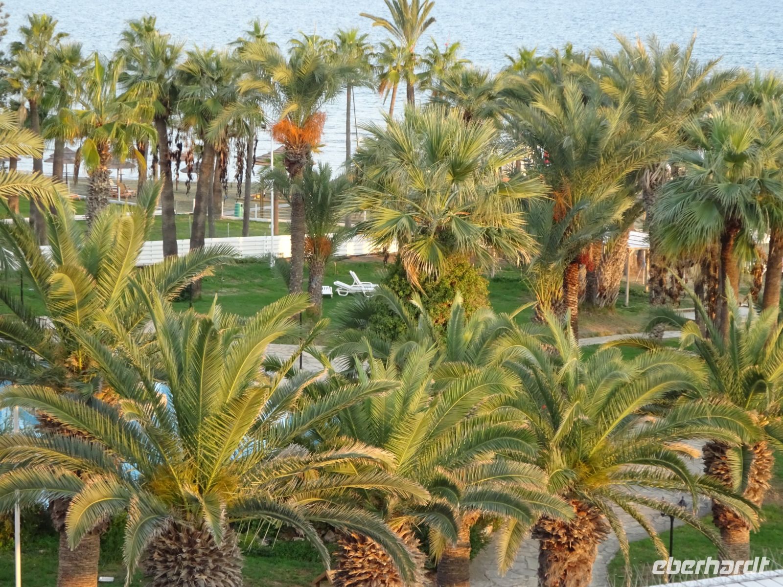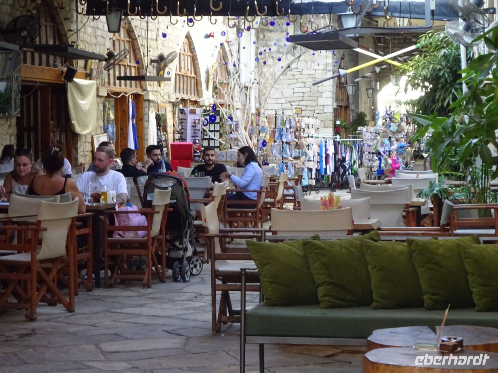 Schon zum Frühstück konnten wir uns ein herrliches Plätzchen auf der Terrasse des Hotels suchen. Da schmeckt alles gleich noch viel besser! Heute stand die Hauptstadt Zyperns auf dem Programm, Nikosia, die letzte geteilte Hauptstadt Europas. Unterwegs erfuhren wir von Antonis die wichtigsten Fakten, die im Jahre 1974 zur Teilung der Hauptstadt und auch der Insel geführt hatten. Nikosia zählt heute 280.000 Einwohner, verfügt über alle Institutionen, die zu einer Hauptstadt gehören. Unser erster Programmpunkt war das berühmte Archäologische Museum. Es beherbergt Ausstellungsstücke von unschätzbarem Wert, die uns Antonis vorstellte und erklärte. Schmuck, Münzen, Skulpturen, Gebrauchsgegenstände und vieles mehr kann man hier bestaunen. Anschließend brachte uns der Bus bis zum Freiheitsdenkmal. Erbaut im Jahre 1970, symbolisiert es das Ende der britischen Kolonialzeit. Nun gingen wir weiter, sahen den Palast des Erzbischofs, auch die gläserne Garage mit zwei Staatskarossen, die Makarios von Willy Brandt und John F. Kennedy geschenkt bekommen hatte. Gleich daneben ist die Johannes-Kathedrale, erbaut im Jahre 1662, die wir ebenfalls besichtigten. Auf dem Weg zum türkischen Teil der Stadt kamen wir vorbei am Neuen Rathaus, erbaut über antiken Ruinen, eine wirklich eindrucksvolle Lösung, Vergangenheit und Gegenwart so ansprechend zu verbinden. Wir gingen weiter in Richtung Grenze, vorbei an Wachposten, passierten an der Grenze die Passkontrolle. Hinter der Grenze erwartet uns unsere türkische Reisebegleitung. Gemeinsam gingen durch die malerischen Gassen, Einkaufsstraßen und historischen Viertel des türkischen Teils der Stadt. Wir sahen den Basar und dann die einzige erhaltene und fein restaurierte Karawansarai Büyük Han aus dem Jahre 1572. An diesem geschichtsträchtigen Ort erfahren wir auch allerhand über den Handel in dieser Region. An Fotomotiven mangelte es uns da wirklich nicht. Und Antonis „organisierte“ für uns Kostproben vom Börek, einer schmackhaften warmen Teigspeise mit Käsefüllung, die wir in ähnlicher Form schon aus anderen Ländern kennen. Zurück auf der griechischen Seite der Stadt, war noch Zeit für einen kleinen Bummel oder auch eine Erfrischung. Aber nun zog es uns ganz stark zurück in unsere herrliche Hotelanlage am Meer mit dem schönen Strand.