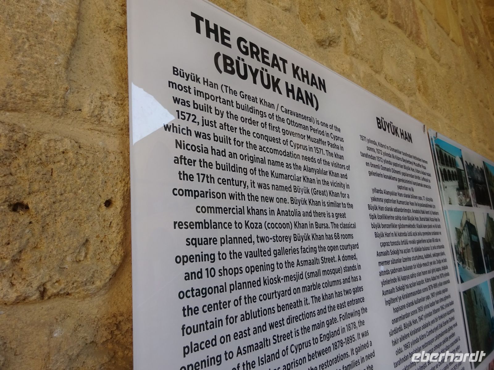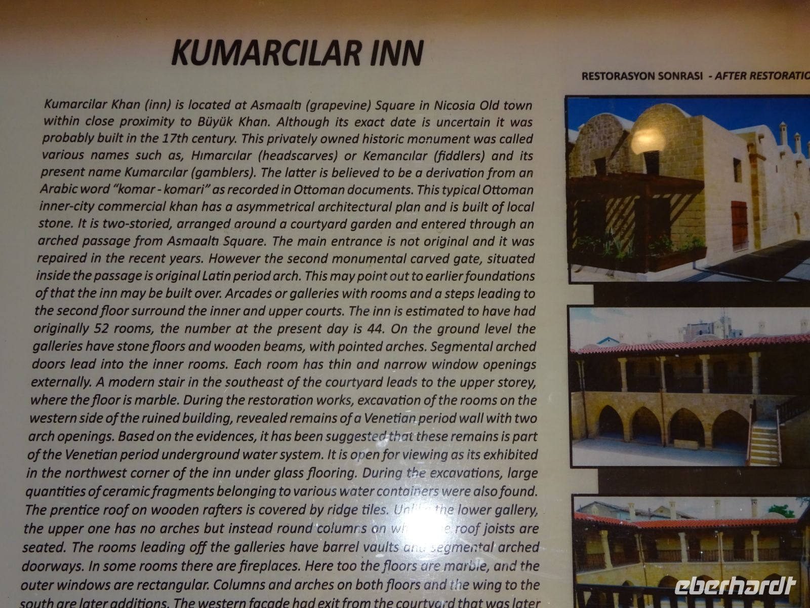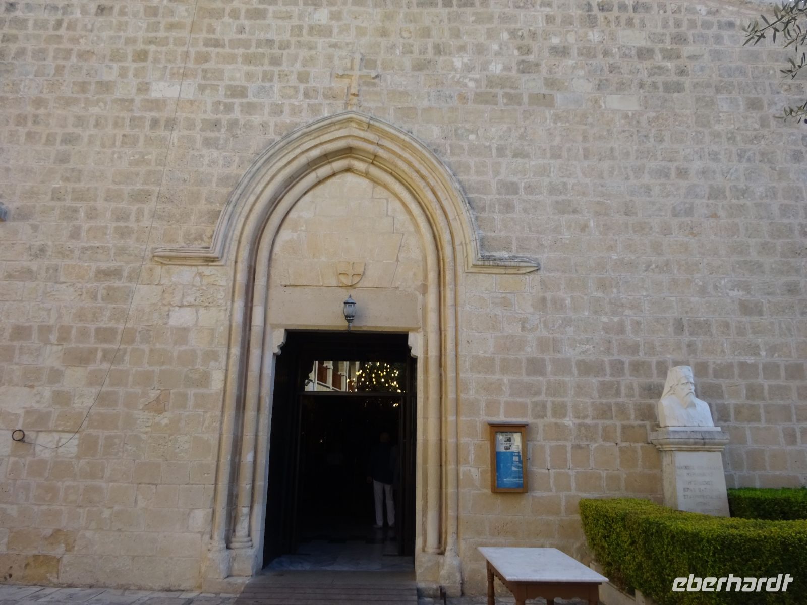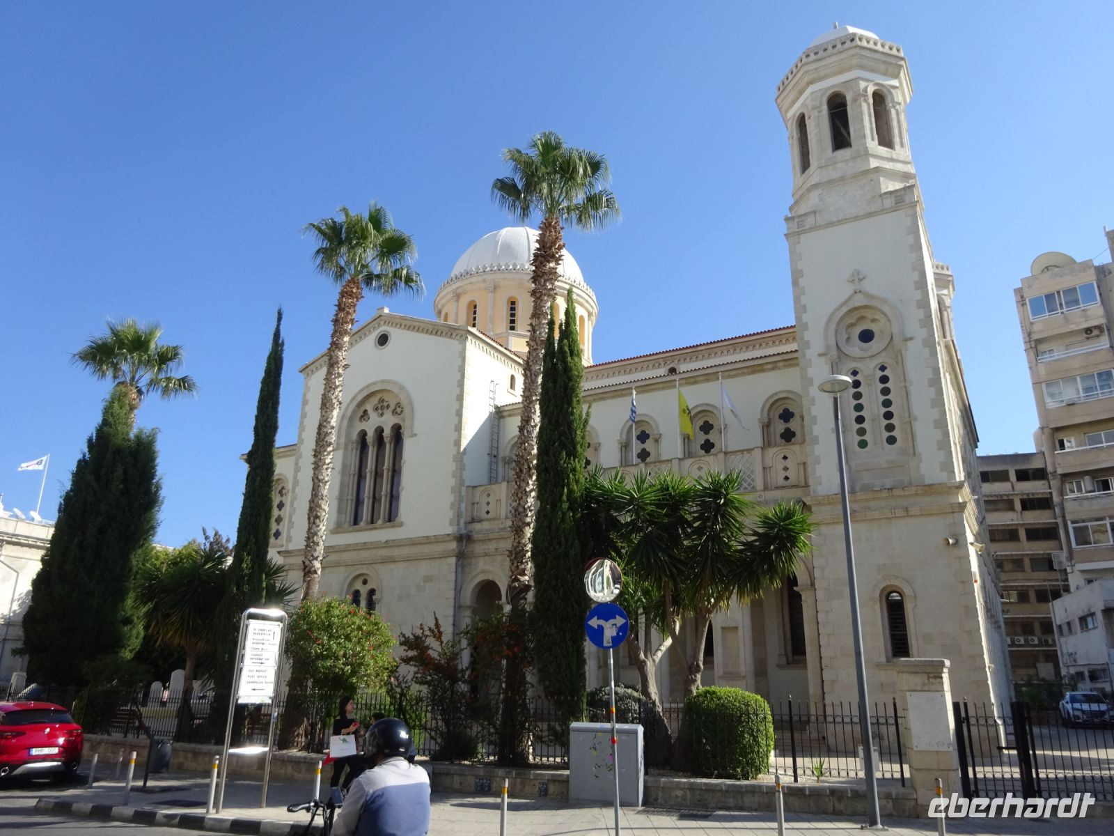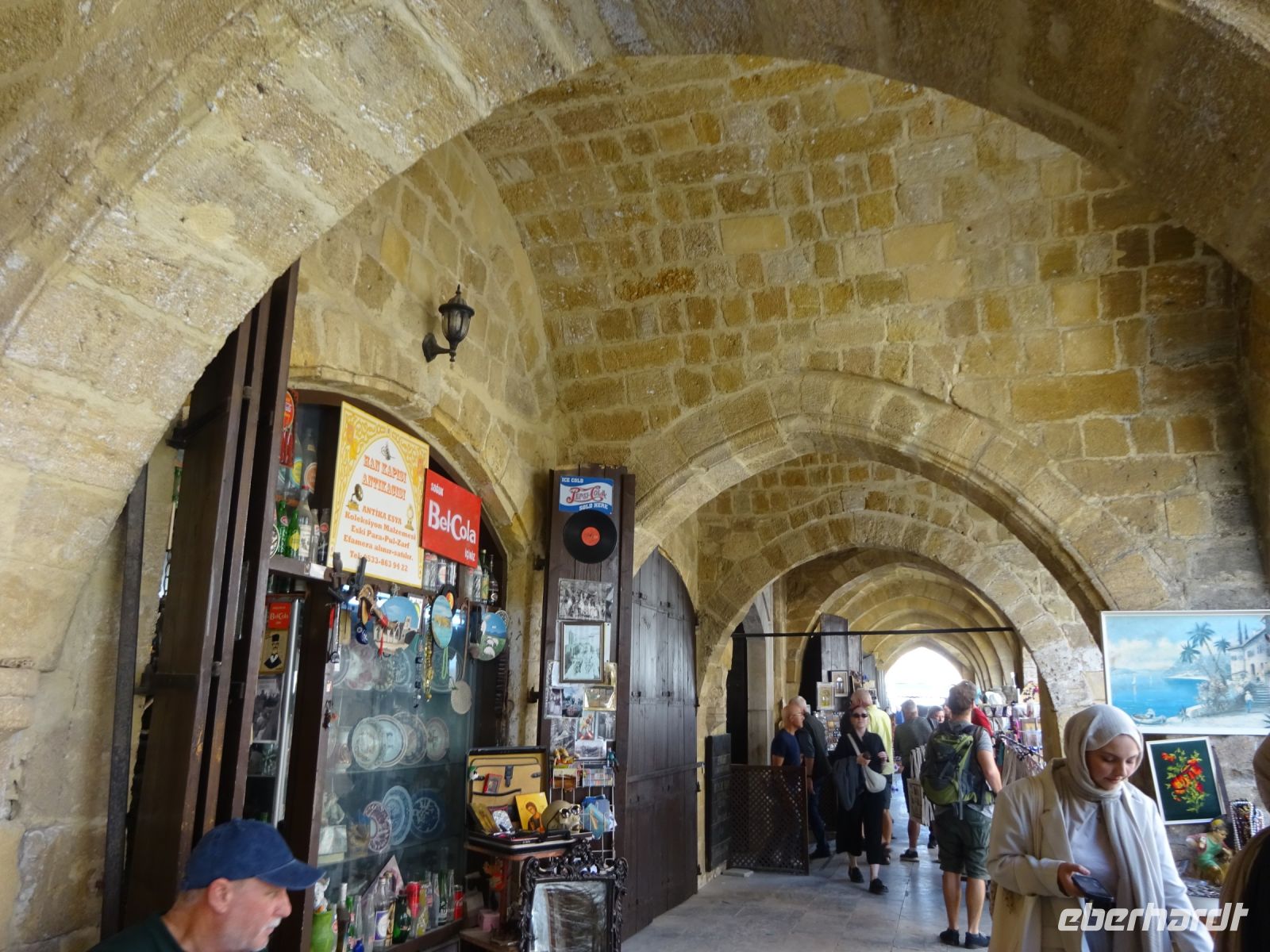 Schon zum Frühstück konnten wir uns ein herrliches Plätzchen auf der Terrasse des Hotels suchen. Da schmeckt alles gleich noch viel besser! Heute stand die Hauptstadt Zyperns auf dem Programm, Nikosia, die letzte geteilte Hauptstadt Europas. Unterwegs erfuhren wir von Antonis die wichtigsten Fakten, die im Jahre 1974 zur Teilung der Hauptstadt und auch der Insel geführt hatten. Nikosia zählt heute 280.000 Einwohner, verfügt über alle Institutionen, die zu einer Hauptstadt gehören. Unser erster Programmpunkt war das berühmte Archäologische Museum. Es beherbergt Ausstellungsstücke von unschätzbarem Wert, die uns Antonis vorstellte und erklärte. Schmuck, Münzen, Skulpturen, Gebrauchsgegenstände und vieles mehr kann man hier bestaunen. Anschließend brachte uns der Bus bis zum Freiheitsdenkmal. Erbaut im Jahre 1970, symbolisiert es das Ende der britischen Kolonialzeit. Nun gingen wir weiter, sahen den Palast des Erzbischofs, auch die gläserne Garage mit zwei Staatskarossen, die Makarios von Willy Brandt und John F. Kennedy geschenkt bekommen hatte. Gleich daneben ist die Johannes-Kathedrale, erbaut im Jahre 1662, die wir ebenfalls besichtigten. Auf dem Weg zum türkischen Teil der Stadt kamen wir vorbei am Neuen Rathaus, erbaut über antiken Ruinen, eine wirklich eindrucksvolle Lösung, Vergangenheit und Gegenwart so ansprechend zu verbinden. Wir gingen weiter in Richtung Grenze, vorbei an Wachposten, passierten an der Grenze die Passkontrolle. Hinter der Grenze erwartet uns unsere türkische Reisebegleitung. Gemeinsam gingen durch die malerischen Gassen, Einkaufsstraßen und historischen Viertel des türkischen Teils der Stadt. Wir sahen den Basar und dann die einzige erhaltene und fein restaurierte Karawansarai Büyük Han aus dem Jahre 1572. An diesem geschichtsträchtigen Ort erfahren wir auch allerhand über den Handel in dieser Region. An Fotomotiven mangelte es uns da wirklich nicht. Und Antonis „organisierte“ für uns Kostproben vom Börek, einer schmackhaften warmen Teigspeise mit Käsefüllung, die wir in ähnlicher Form schon aus anderen Ländern kennen. Zurück auf der griechischen Seite der Stadt, war noch Zeit für einen kleinen Bummel oder auch eine Erfrischung. Aber nun zog es uns ganz stark zurück in unsere herrliche Hotelanlage am Meer mit dem schönen Strand.
