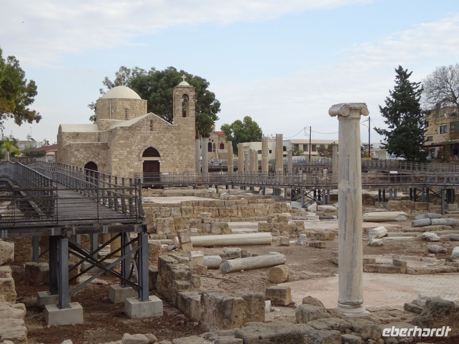 3. Tag: Sonnabend 09.11.2024 – Mosaike in Paphos – Bootsfahrt mit Badeaufenthalt und Mittagessen –Chrysopolitissa–Kirche – Erinnerungssäule für Paulus