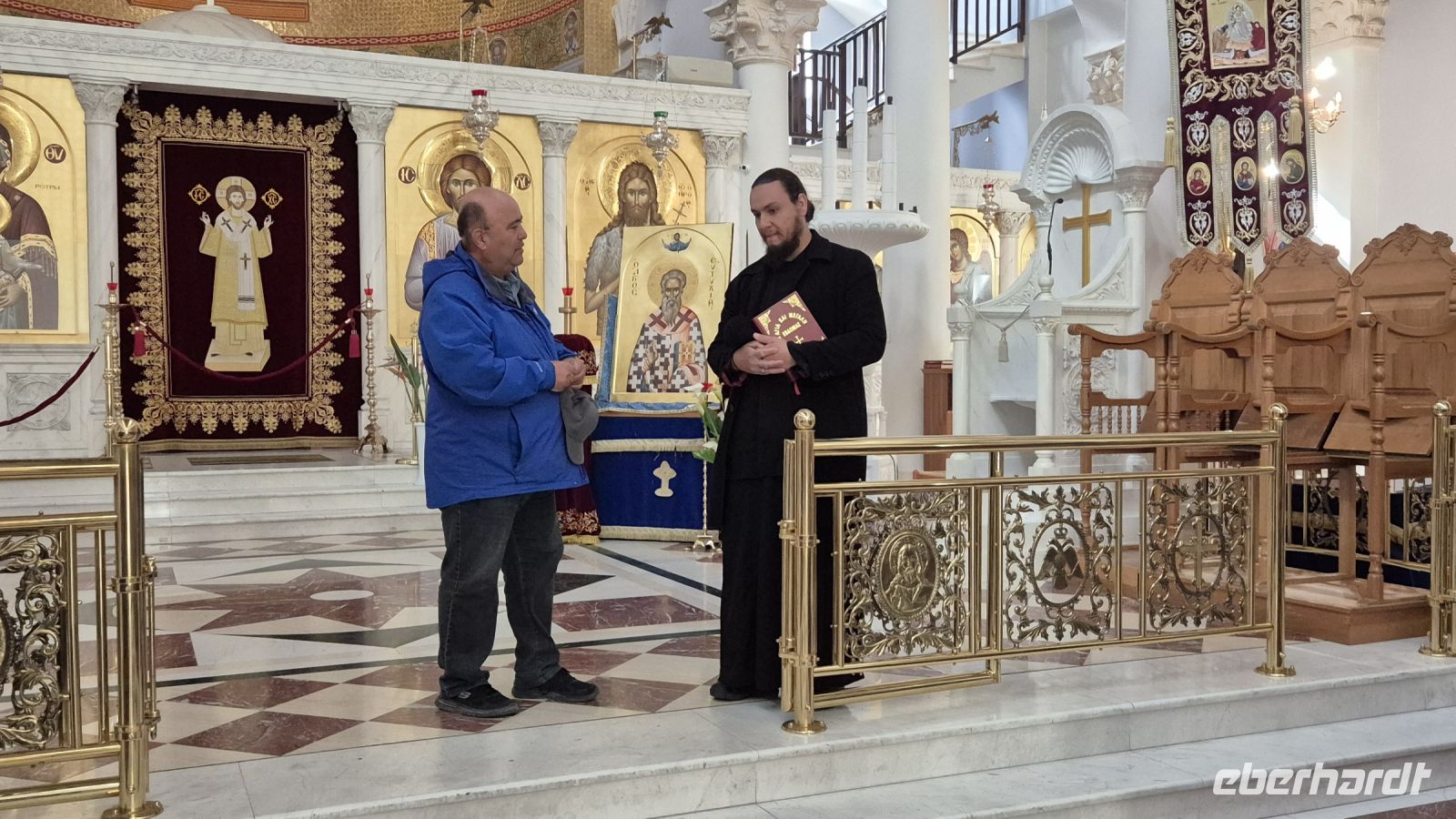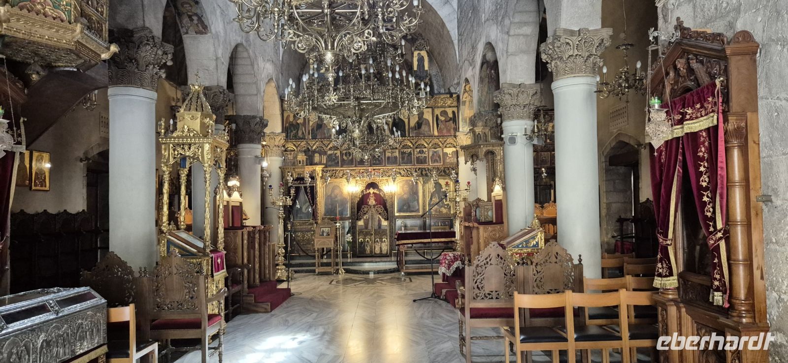 Nach einer gemütlichen Kaffeepause setzten wir unsere Erkundung fort und besichtigten die eindrucksvolle Agios-Arsenios-Kirche, die erst vor kurzem neu erbaut worden war und durch ihre moderne Bauweise beeindruckte.