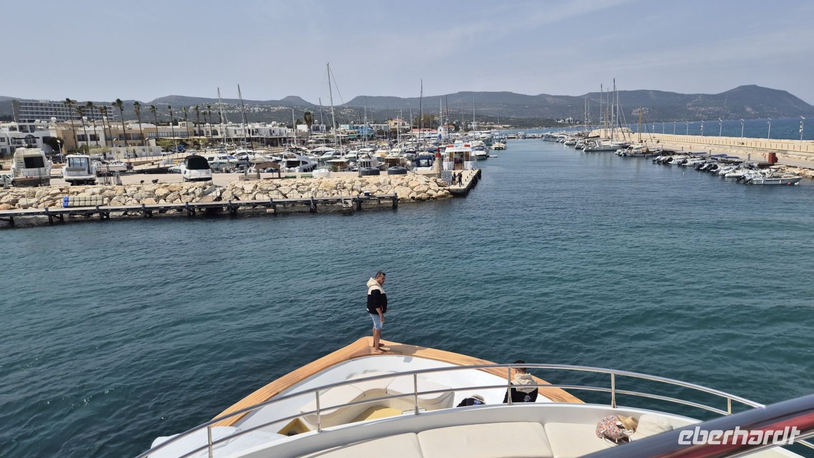 Im kleinen Hafenort Latchi wartete bereits unsere Jacht,, mit der wir zu einer exklusive Bootstour entlang der Küste des Naturschutzgebietes Akamas starteten. Bei herrlichem Wetter genossen wir die entspannte Fahrt auf dem Meer, bis wir nach etwa einer Stunde die atemberaubend schöne Blaue Lagune erreichten. Dort legten wir einen Badestopp ein, tauchten in das glasklare Wasser ein und ließen einfach die Seele baumeln.
