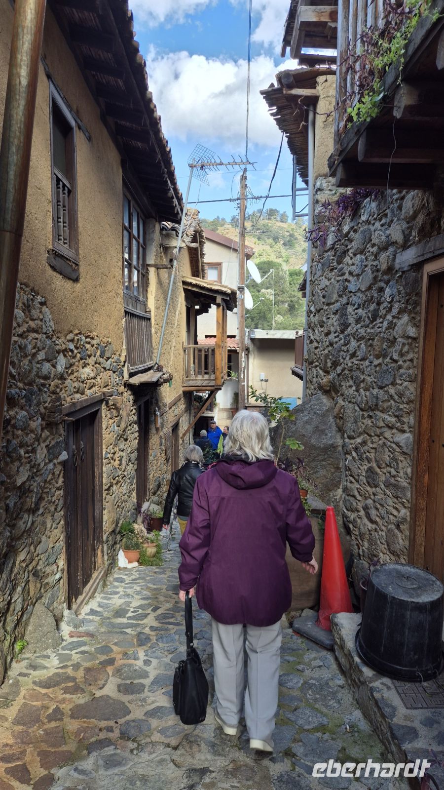 Nach einer entspannten Mittagsrast am Kloster setzten wir unsere Reise fort und fuhren in das charmante Dorf Kakopetria, dessen historischer Ortskern größtenteils unter Denkmalschutz steht. Bei einem Spaziergang durch die engen, kopfsteingepflasterten Gassen bewunderten wir die traditionellen Häuser und das besondere Flair des Dorfes.