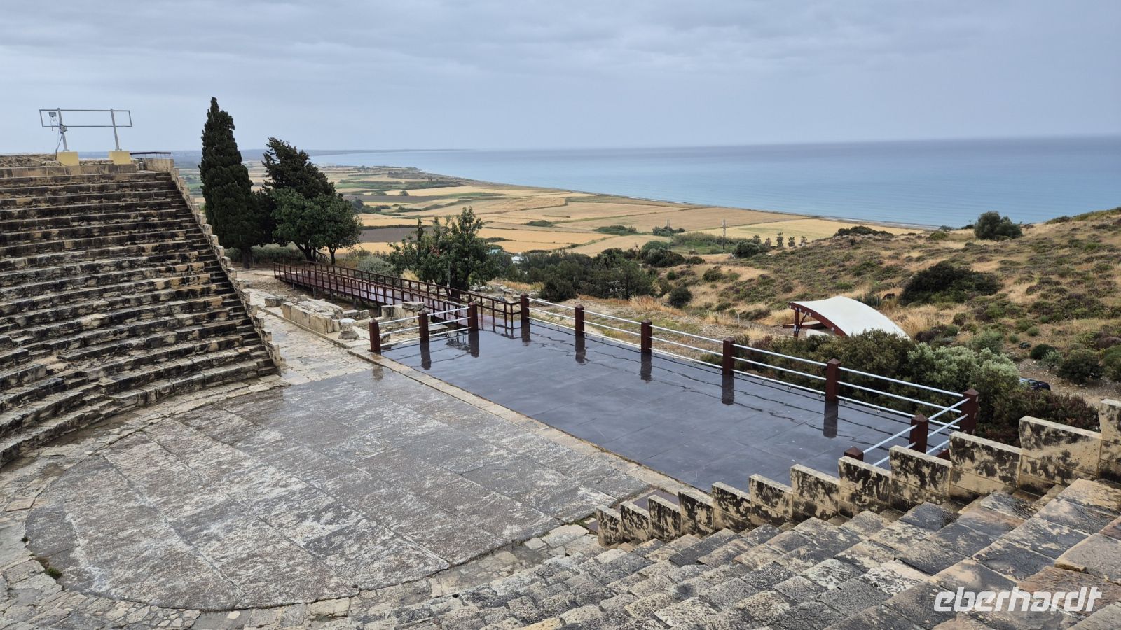 Anschließend erreichten wir die beeindruckende Ausgrabungsstätte von Kourion, einer ehemaligen antiken Stadt direkt am Mittelmeer. Während einer lebendigen Führung erzählte uns Antoni von der Geschichte und dem Alltagsleben der Menschen, die hier einst lebten, bevor ein schweres Erdbeben die Stadt zerstörte. Noch heute wird an vielen Stellen gegraben und geforscht. Besonders beeindruckten uns die gut erhaltenen Säulen, prachtvollen Bodenmosaike und vor allem der traumhafte Blick von der Ausgrabungsstätte hinab auf das glitzernde Mittelmeer. Das antike Theater mit seiner Öffnung zur See war ein Ort, an dem man einfach innehalten und den Moment genießen musste.