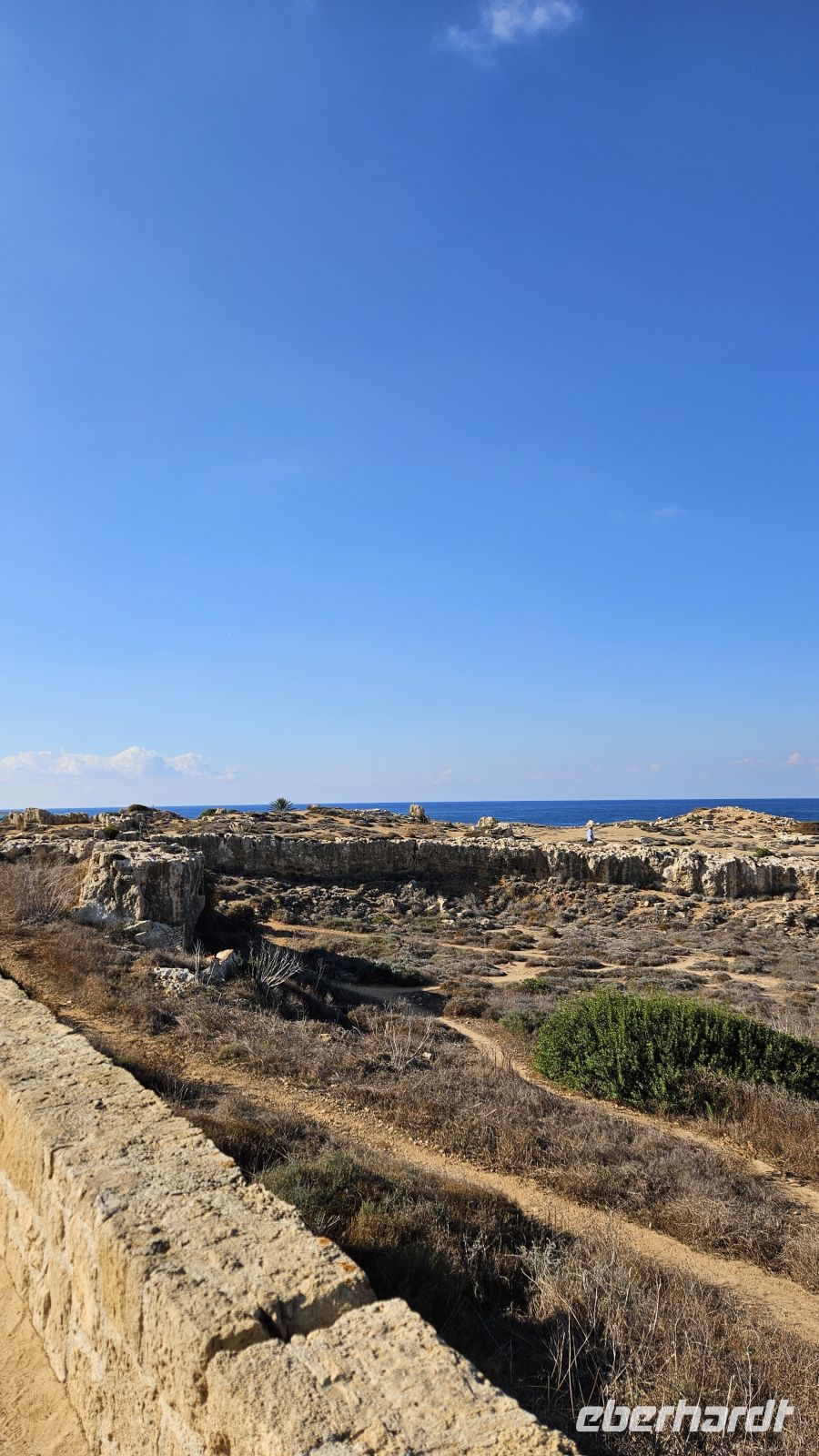 Bereits während der Fahrt erläuterte Antonis die mythologische Rolle Zyperns als Geburtsort der Göttin Aphrodite sowie die Bedeutung der Stadt als ehemaliger Sitz römischer Statthalter. Unser erster Besuch galt den Königsgräbern, die aus dem 3. Jahrhundert v. Chr. stammen und trotz ihres Namens nicht für Könige, sondern für wohlhabende Adlige genutzt wurden. Die in den Felsen gehauenen Grabkammern beeindruckten durch ihre monumentale Architektur und die Mischung aus hellenistischen und ägyptischen Einflüssen.