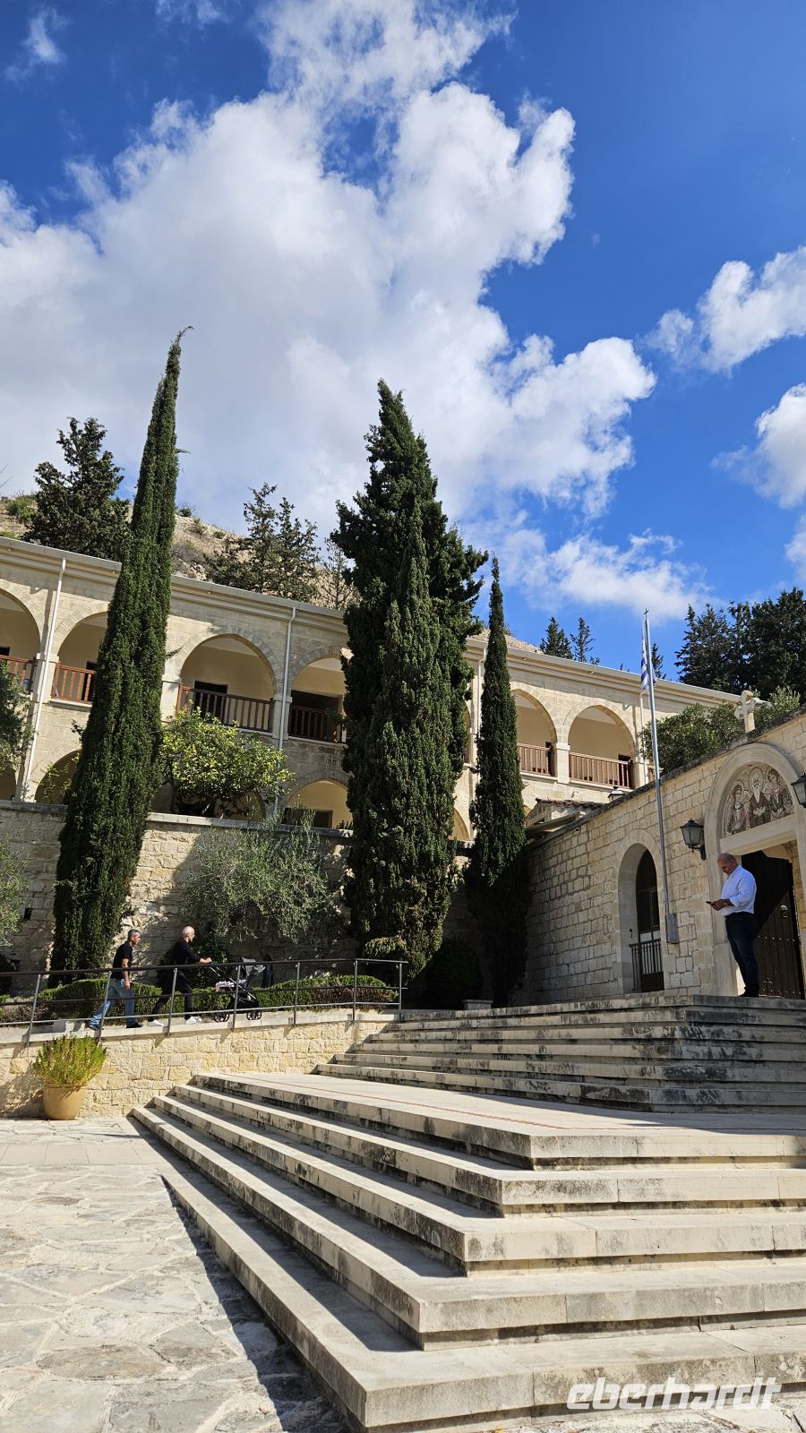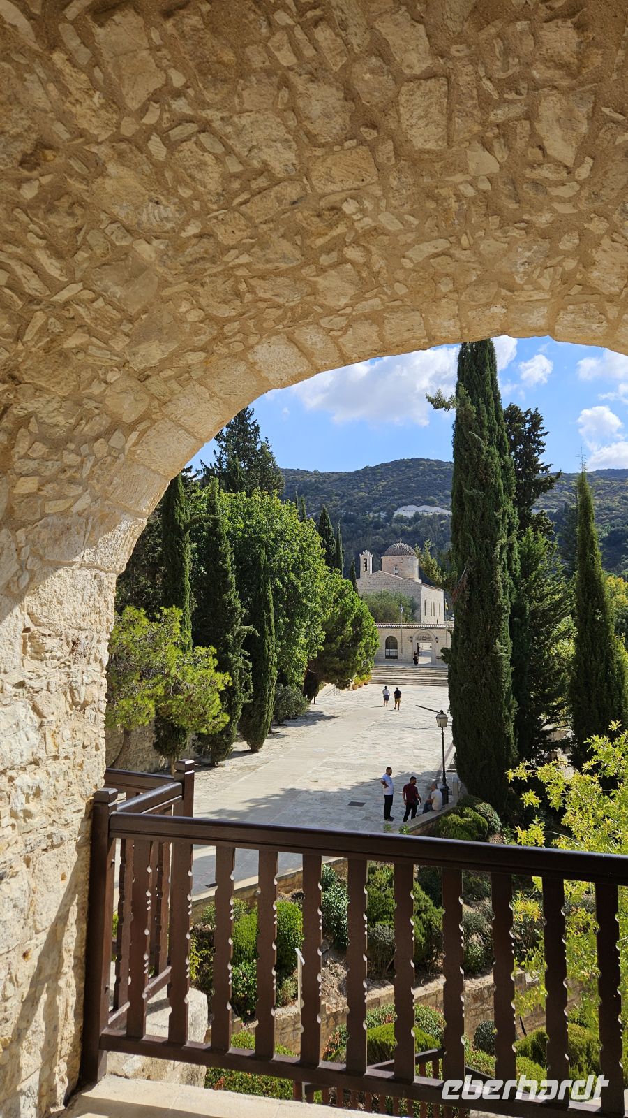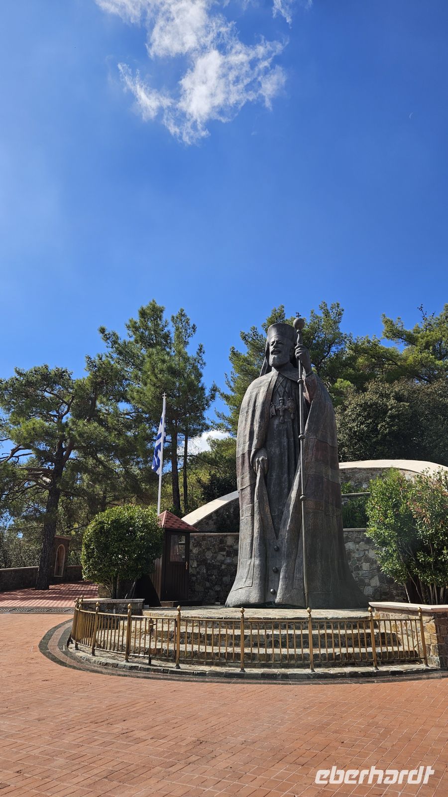 Nach einer kurzen Weiterfahrt legten wir eine kleine Pause ein, bei der Kaffee und Kuchen serviert wurden, um uns zu stärken. Anschließend erreichten wir das Grab von Makarios, ein historisches Grabmal, das durch seine ruhige Lage und die umgebende Natur einen Ort der Besinnung darstellte. Unsere Reise setzte sich mit dem Besuch eines bedeutenden Klosters fort, dessen spirituelle und kulturelle Bedeutung in der Region hochgeschätzt wird. Nach einer Stunde Freizeit hatten die wir die Gelegenheit, die Umgebung zu erkunden und die Atmosphäre des Klosters auf sich wirken zu lassen.