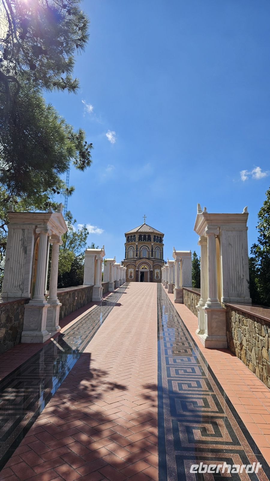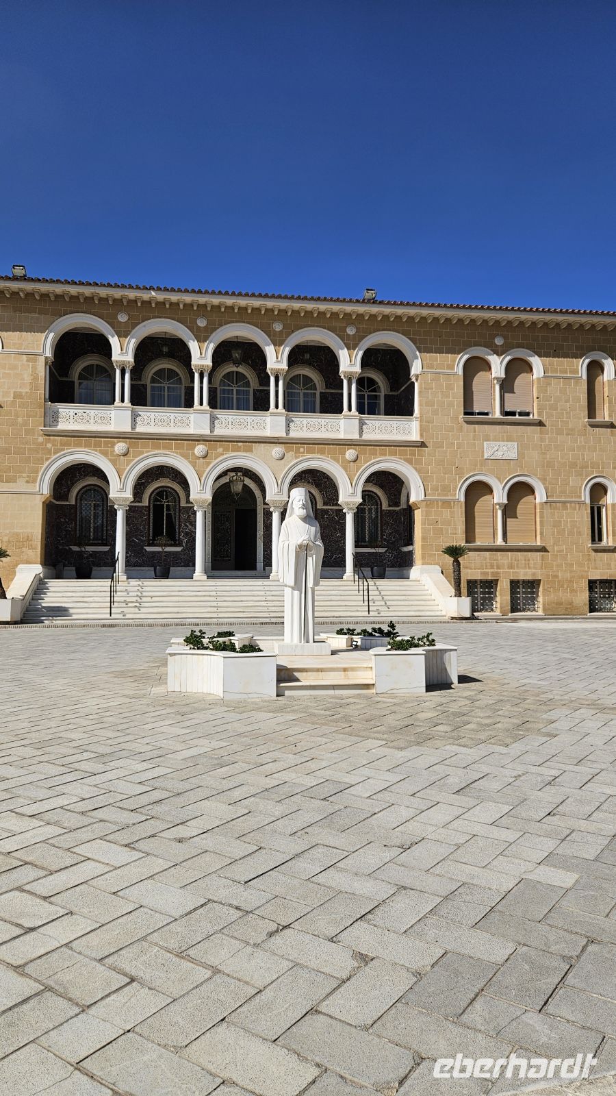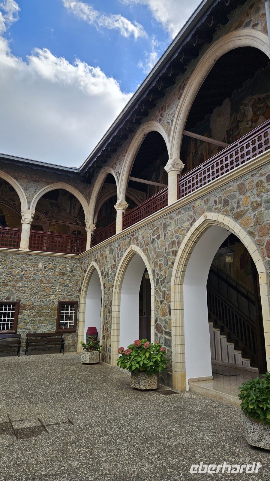 Nach einer kurzen Weiterfahrt legten wir eine kleine Pause ein, bei der Kaffee und Kuchen serviert wurden, um uns zu stärken. Anschließend erreichten wir das Grab von Makarios, ein historisches Grabmal, das durch seine ruhige Lage und die umgebende Natur einen Ort der Besinnung darstellte. Unsere Reise setzte sich mit dem Besuch eines bedeutenden Klosters fort, dessen spirituelle und kulturelle Bedeutung in der Region hochgeschätzt wird. Nach einer Stunde Freizeit hatten die wir die Gelegenheit, die Umgebung zu erkunden und die Atmosphäre des Klosters auf sich wirken zu lassen.