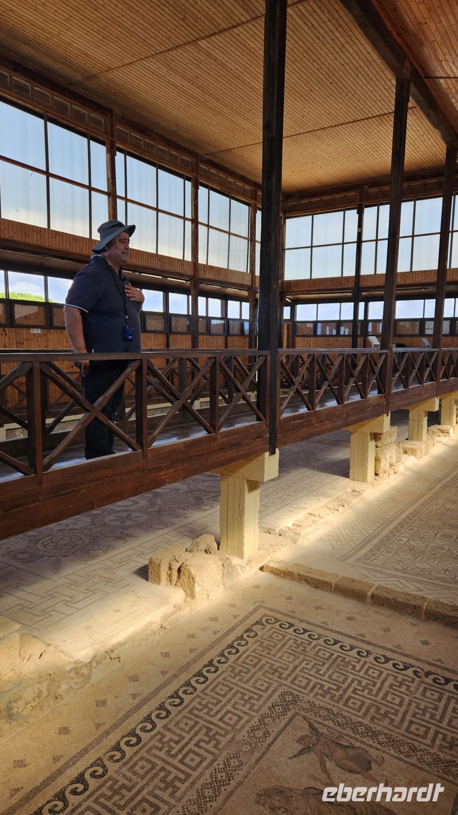 Bei Ankunft im archäologischen Park bewunderten wir anschließend die berühmten Mosaike, deren detailreiche Darstellungen unter anderem Szenen aus dem Leben des Dionysos zeigen und zu den besterhaltenen des östlichen Mittelmeerraums gehören. Durch die Ausführlichen Erzählungen über die Mythen und Geschichten der Insel in zuvor besuchten Kirchen, hat Antonis hier seine geplante 1-stündige Führung auf eine halbe gekürzt um noch Informationsmaterial für kommende Tage zu lassen.