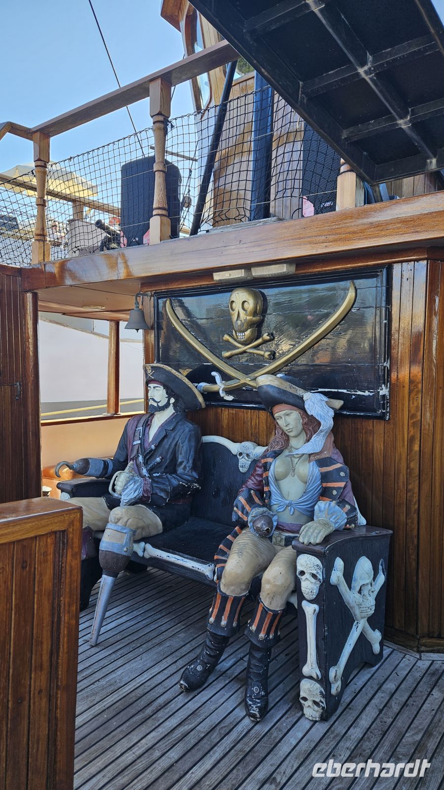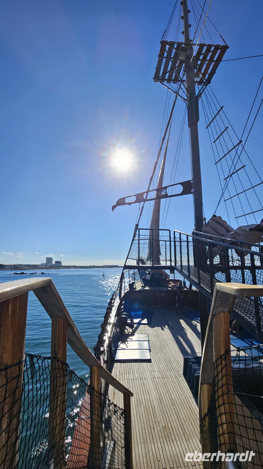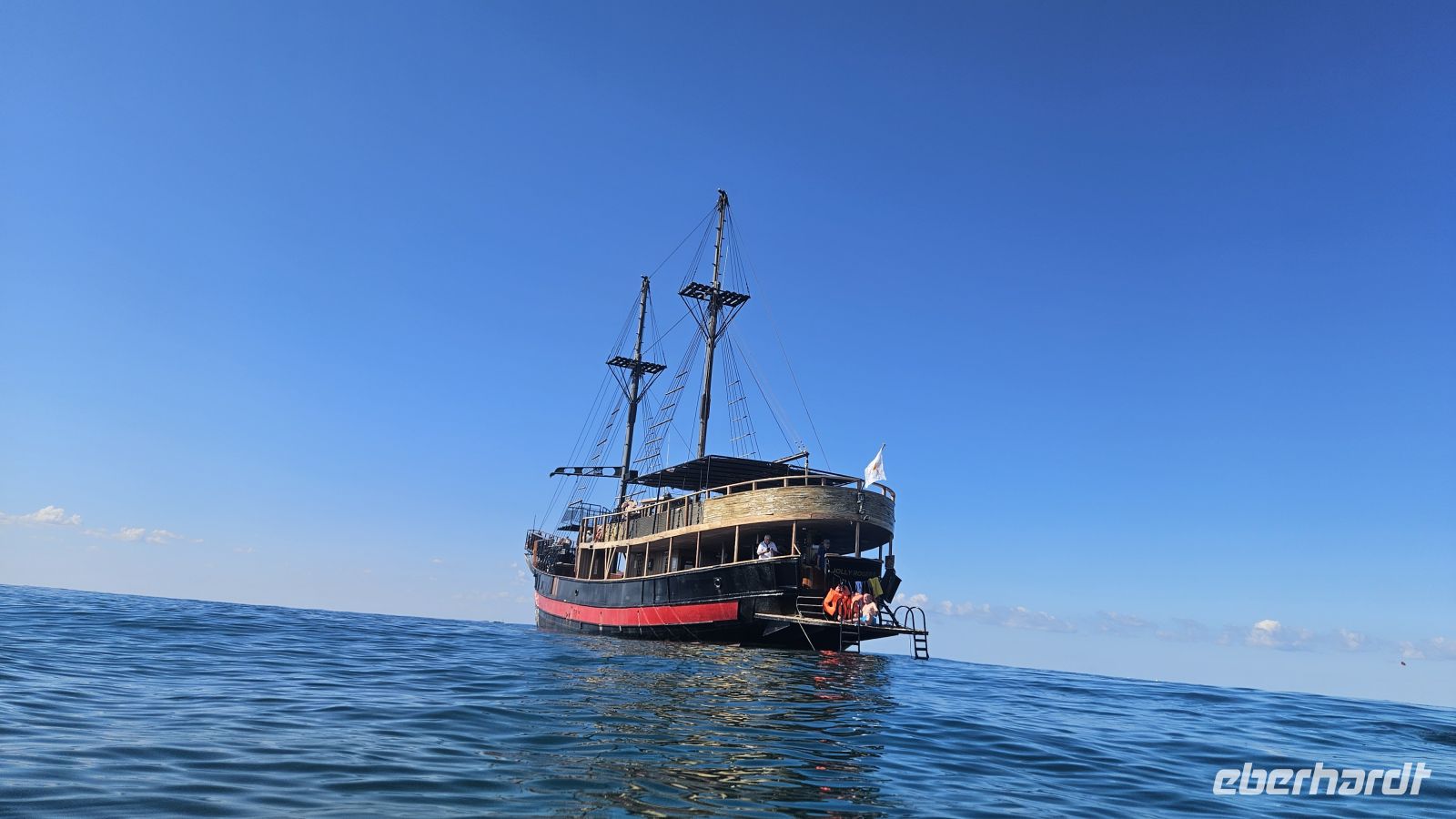 Anschließend begann unsere Bootsfahrt vom Hafen aus. Trotz der geänderten Pläne herrschte an Bord ausgelassene Stimmung. Das Piratenboot bot eine besondere Atmosphäre, und wir genossen die frische Meeresbrise, den Blick auf die Küstenlandschaft und das Spiel der Wellen. Während der rund zweieinhalbstündigen Fahrt war reichlich Gelegenheit für Gespräche, Fotos und gemeinsames Lachen – die Unternehmung wurde zu einem der unterhaltsamsten Momente der bisherigen Reise.