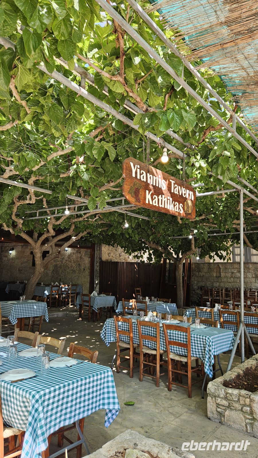Nach der Rückkehr fuhren wir in das Bergdorf Kathikas, wo uns in der Taverne von Yannis ein umfangreiches Meze erwartete. Das Essen, bestehend aus einer Vielzahl lokaler Spezialitäten, wurde von allen als ausgesprochen schmackhaft, wenn auch reichhaltig empfunden. Bei angenehmer Atmosphäre und traditioneller Musik tauschten wir unsere bisherigen Eindrücke der Reise aus.