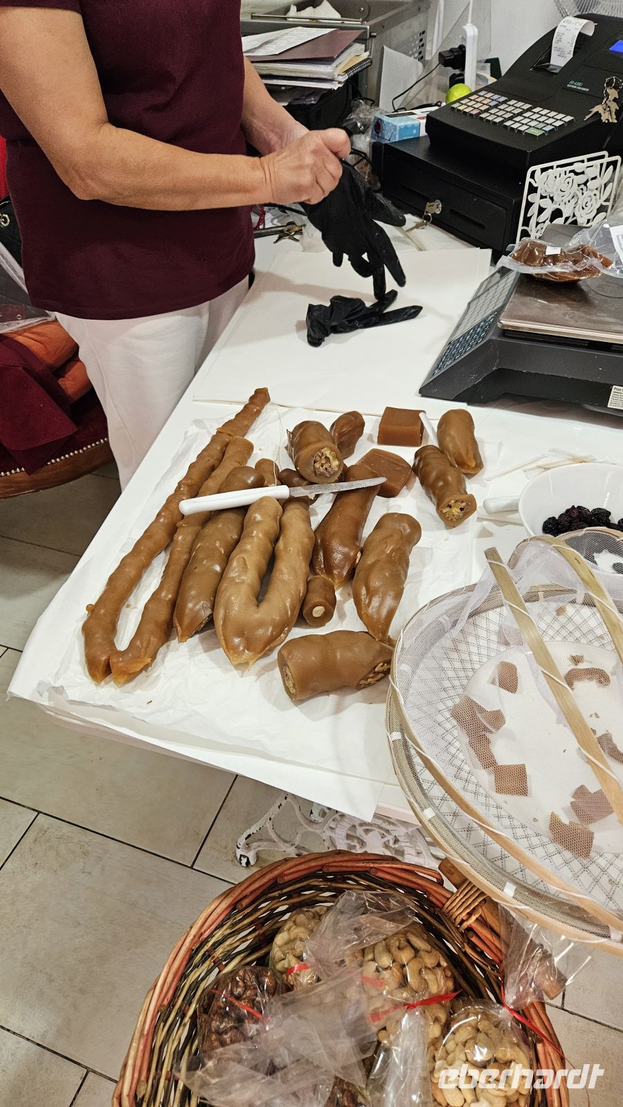 Nach einer Weiterfahrt standen Besuche mehrerer Familienbetriebe auf dem Programm. Wir begannen mit einem Betrieb namens Nikis bei dem wir Marmeladen in sämtlichen Variationen probieren konnten, anschließend besuchten wir eine Fleischerei, bevor ein gemeinsames Meze-Essen in einer Taverne folgte. Dieses sorgte wegen dem vielen Essen für viel Freude, Gelächter und eine ausgelassene Stimmung unter allen.
