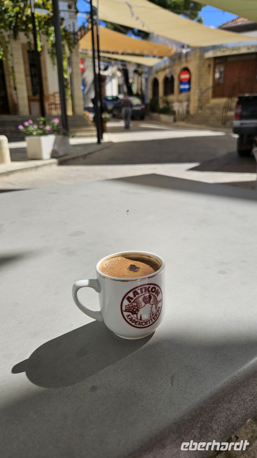 Unsere Weiterfahrt führte uns in das traditionelle Bergdorf Arsos, wo wir zunächst einen kleinen Laden besuchten, um geröstete Mandeln mit lokalem Wein zu verkosten – eine Kombination, die von allen sehr positiv aufgenommen wurde. Im Anschluss kehrten wir in ein authentisches Cafénion ein, wo wir zypriotischen Mokka probieren konnten. Besonders hervorzuheben war der Besuch einer kleinen Dorfbäckerei, die eigens für unsere Gruppe geöffnet hatte und einen Einblick in die handwerkliche Herstellung traditioneller Backwaren vermittelte.