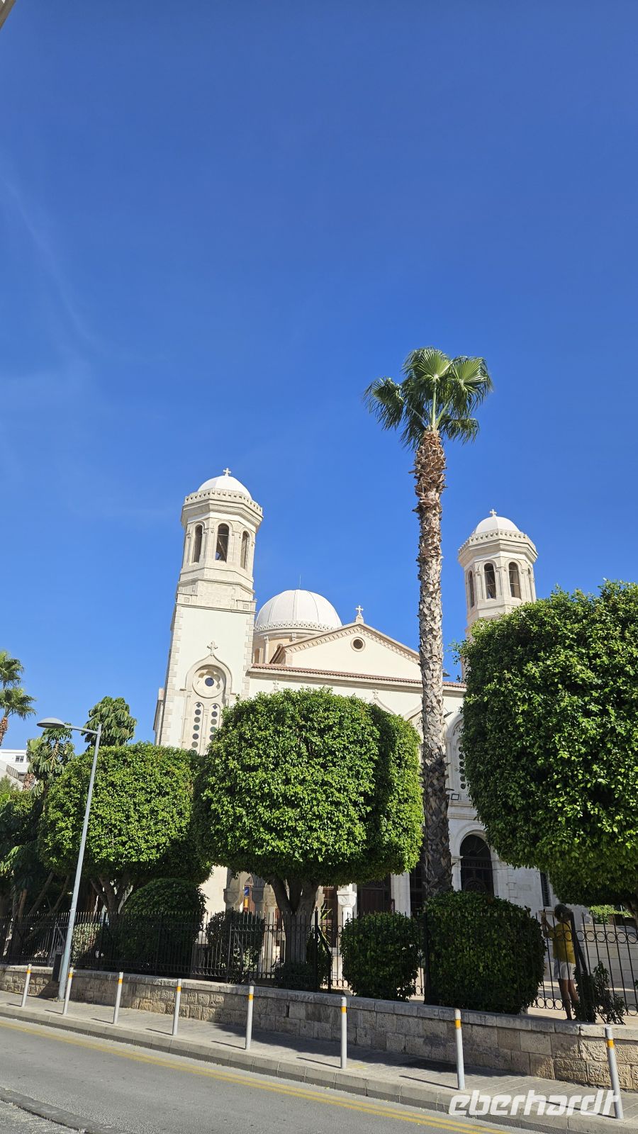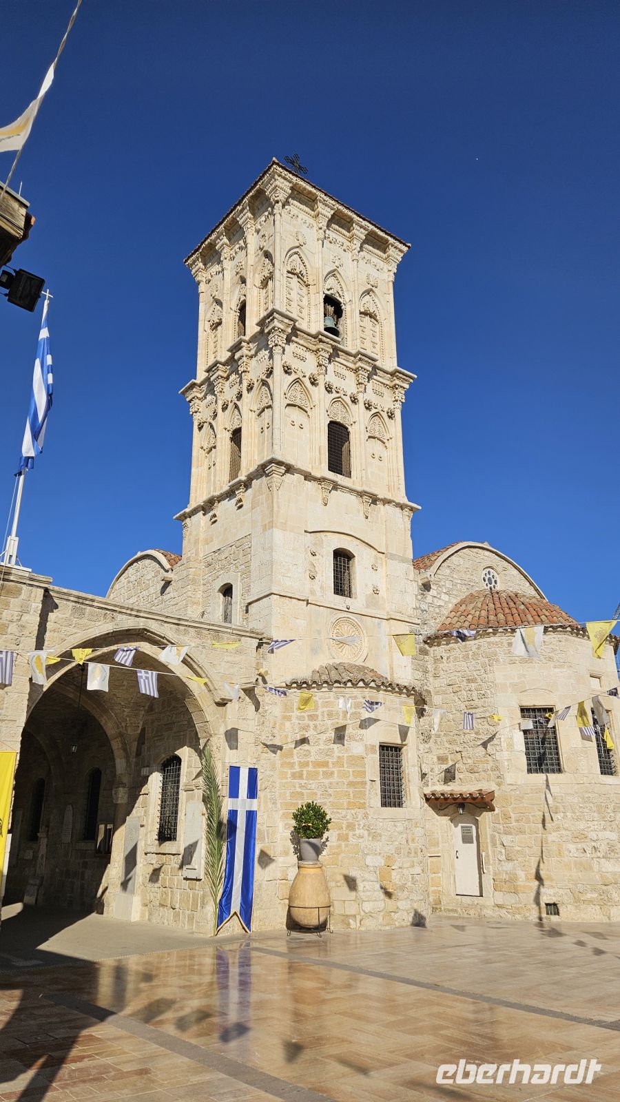 Nach der Abfahrt nach Larnaca besichtigten wir zunächst eine bedeutende Kathedrale, die sowohl architektonisch als auch historisch beeindruckend ist und die kulturelle Vielfalt Zyperns widerspiegelt.